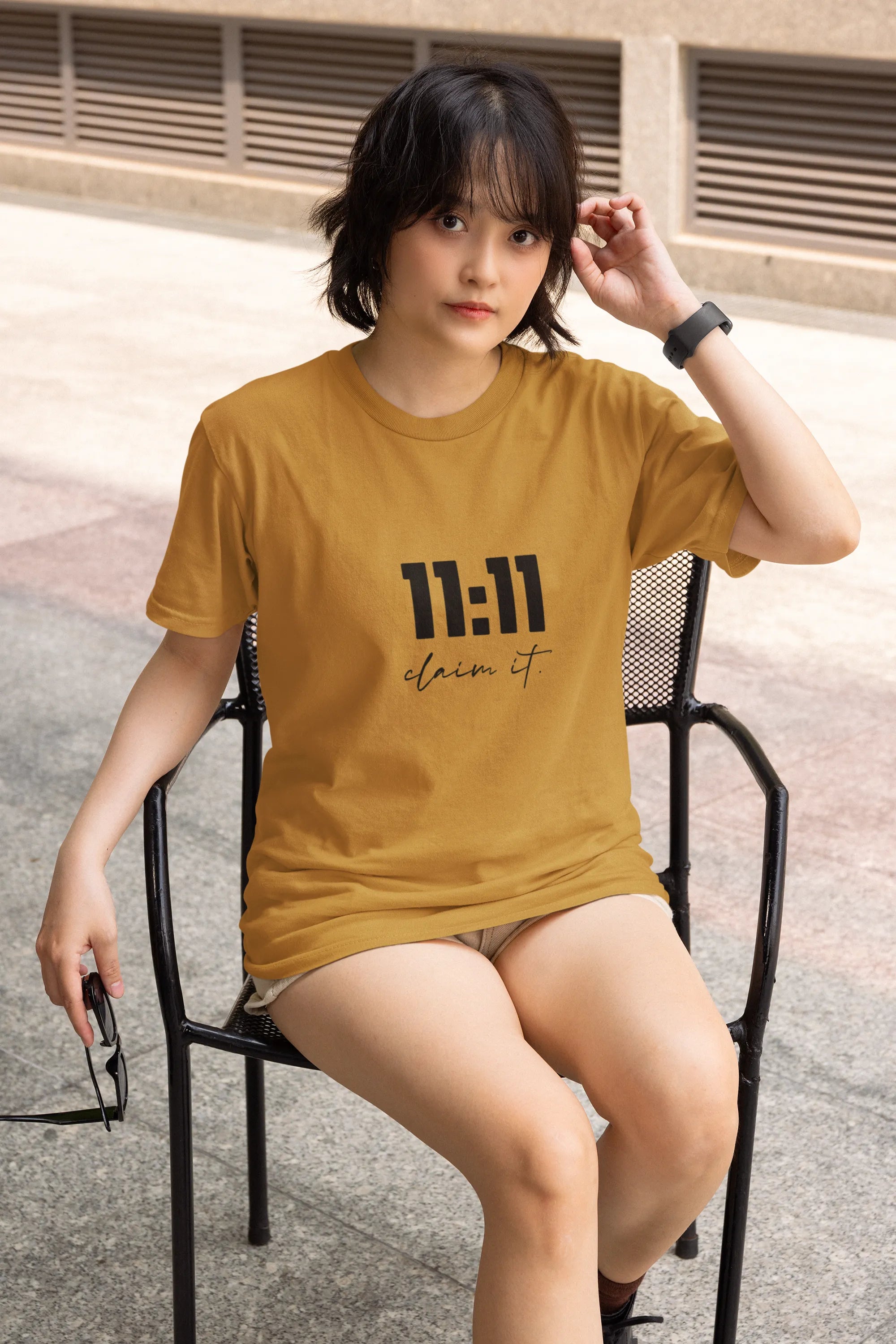 This T-shirt design channels the magic of 11:11 — claim it. A symbol of alignment, manifestation, and belief, it inspires you to trust the timing and own your dreams. Bold yet mystical, it's made for those who believe in signs.