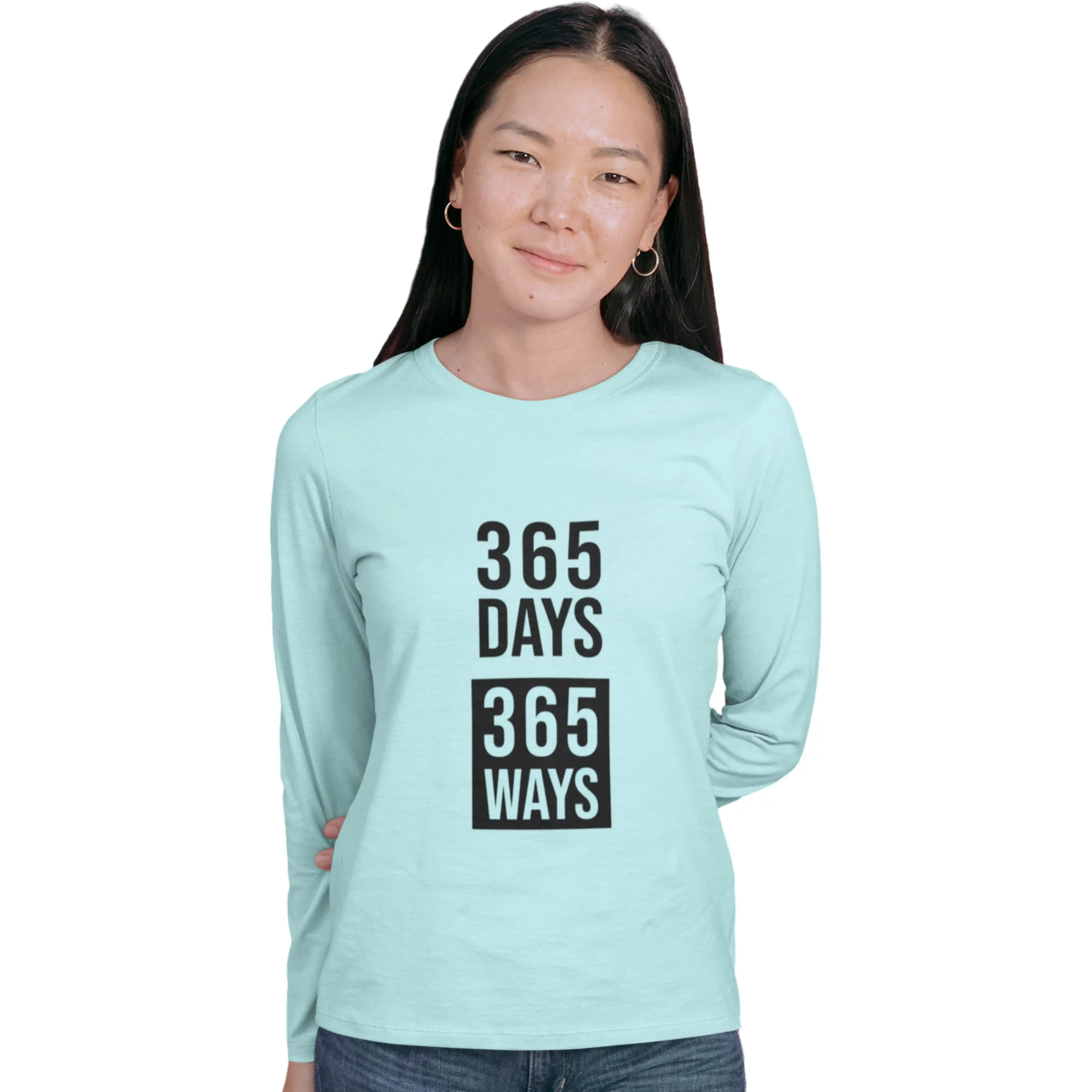 Stay inspired year-round with this mint full-sleeve T-shirt featuring a meaningful “365 Days” motivational print. Designed with a round neck and regular fit, it encourages dedication and positivity while offering a fresh, stylish look.