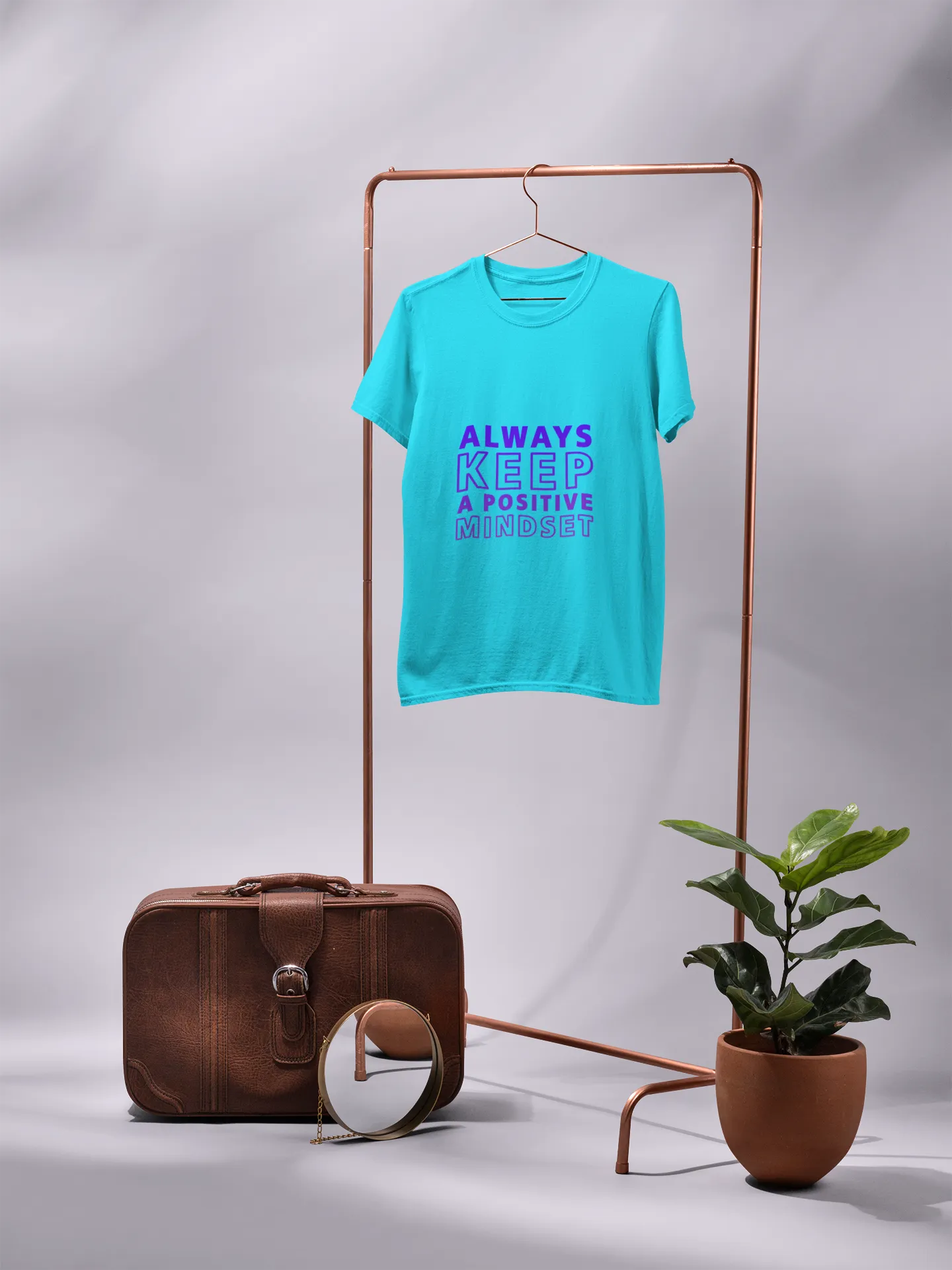 This t-shirt design features the uplifting phrase "Always Keep a Positive Mindset" in bold, modern typography. Accented with vibrant colors and a minimal sun or smiley icon, it radiates motivation and encourages optimism in everyday life.
