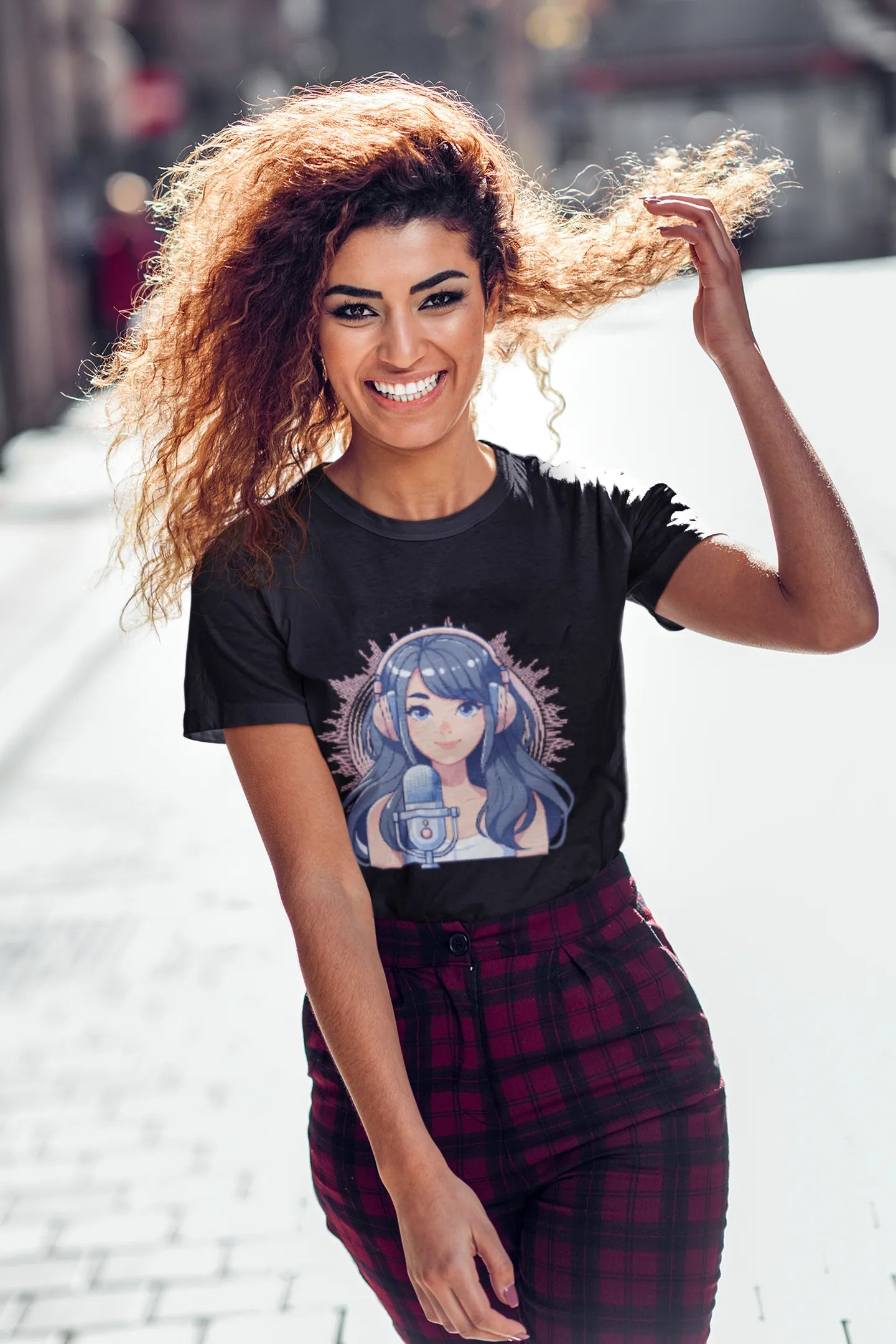 A vibrant and dynamic T-shirt design featuring anime-inspired characters, with bold, colorful graphics and expressive eyes. Incorporating elements like Japanese text, action scenes, or iconic motifs, it celebrates the energetic and imaginative world of anime — perfect for fans who embrace this art form and its culture.
