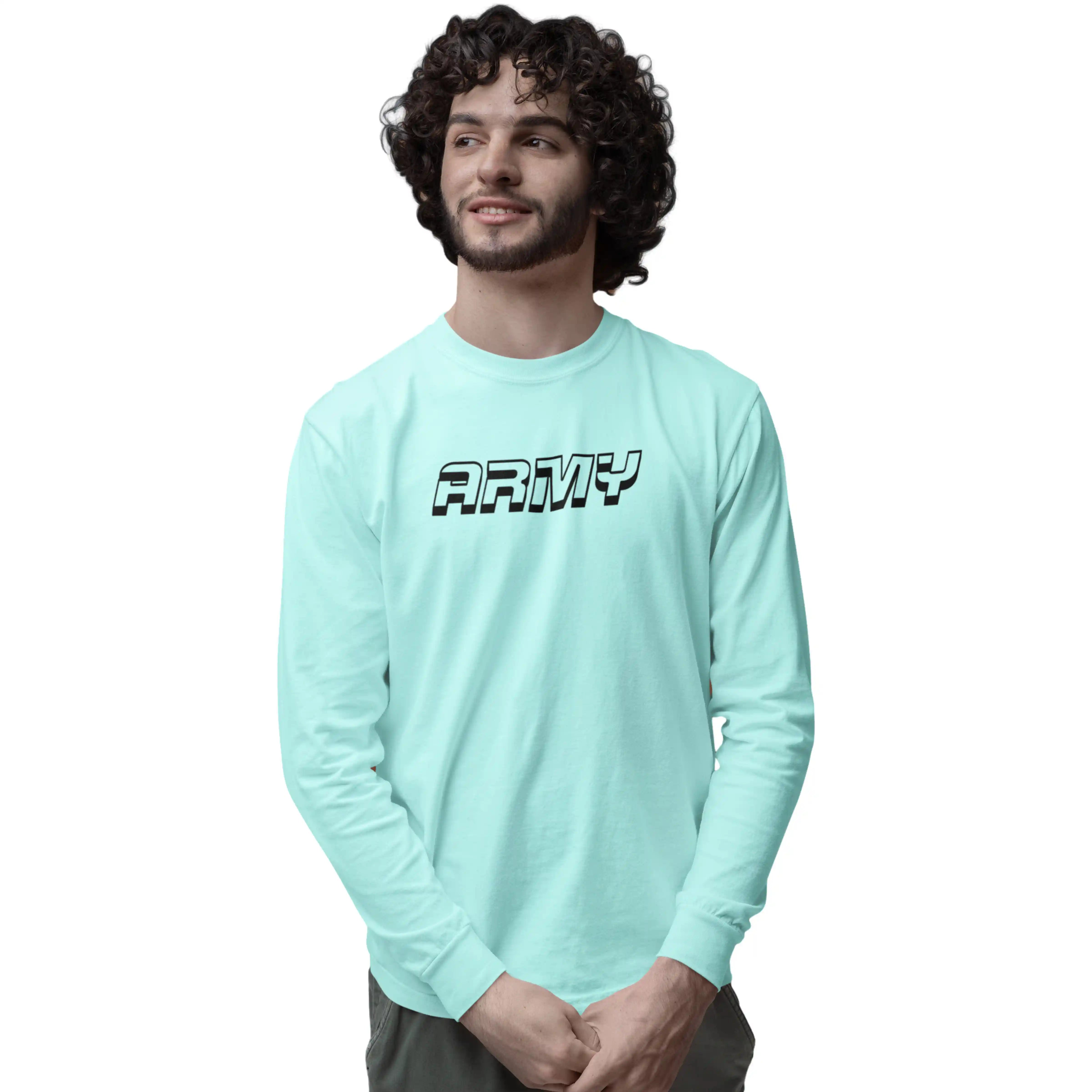 Show your bold spirit with this mint full-sleeve T-shirt featuring an “Army” design. Made with a round neck and regular fit, it blends confidence and comfort—perfect for strong, determined personalities who lead with courage.