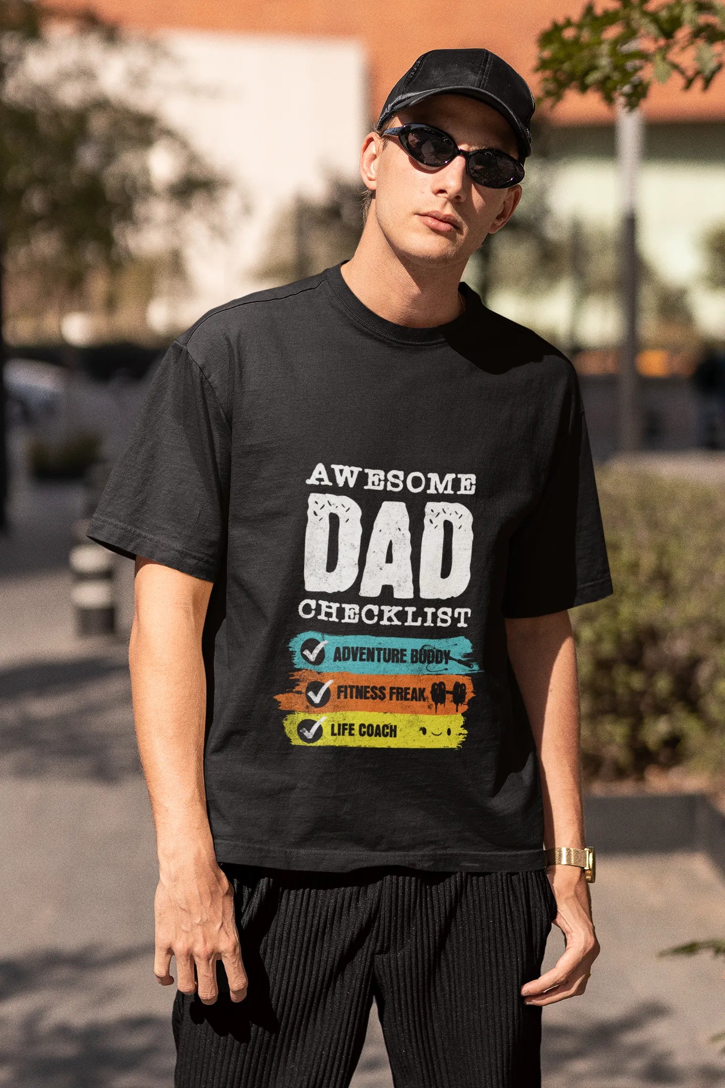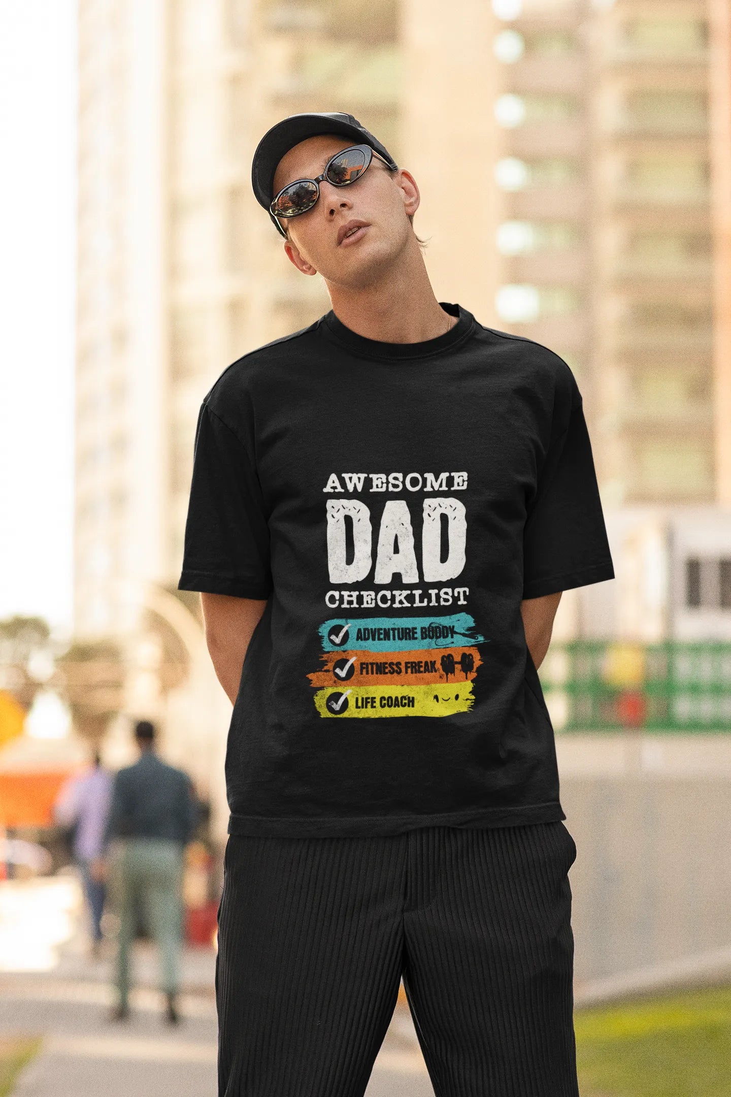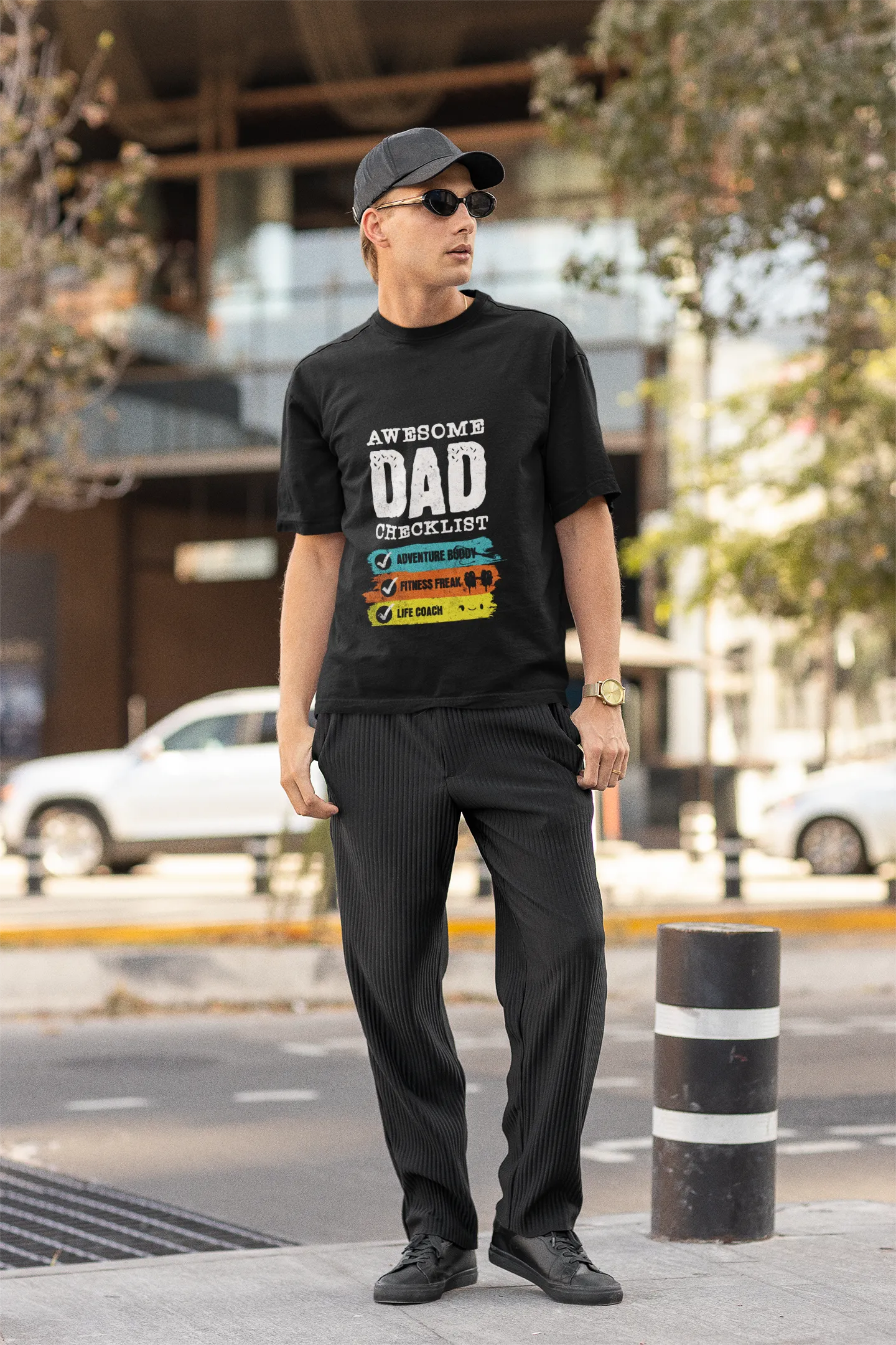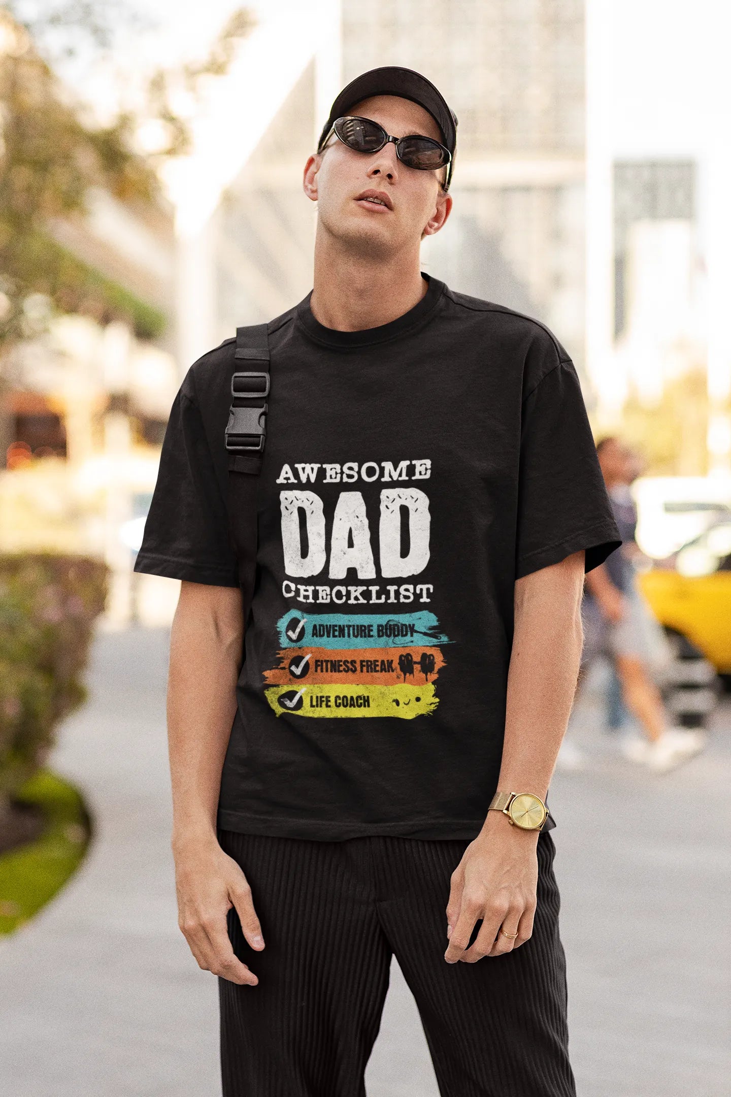 A bold "Awesome Dad" T-shirt featuring a modern, stylish font with a vintage distressed effect. Accented with a crown or lightning bolts for a powerful look. Available in classic colors like black, navy, or gray—perfect for proud, legendary dads everywhere!