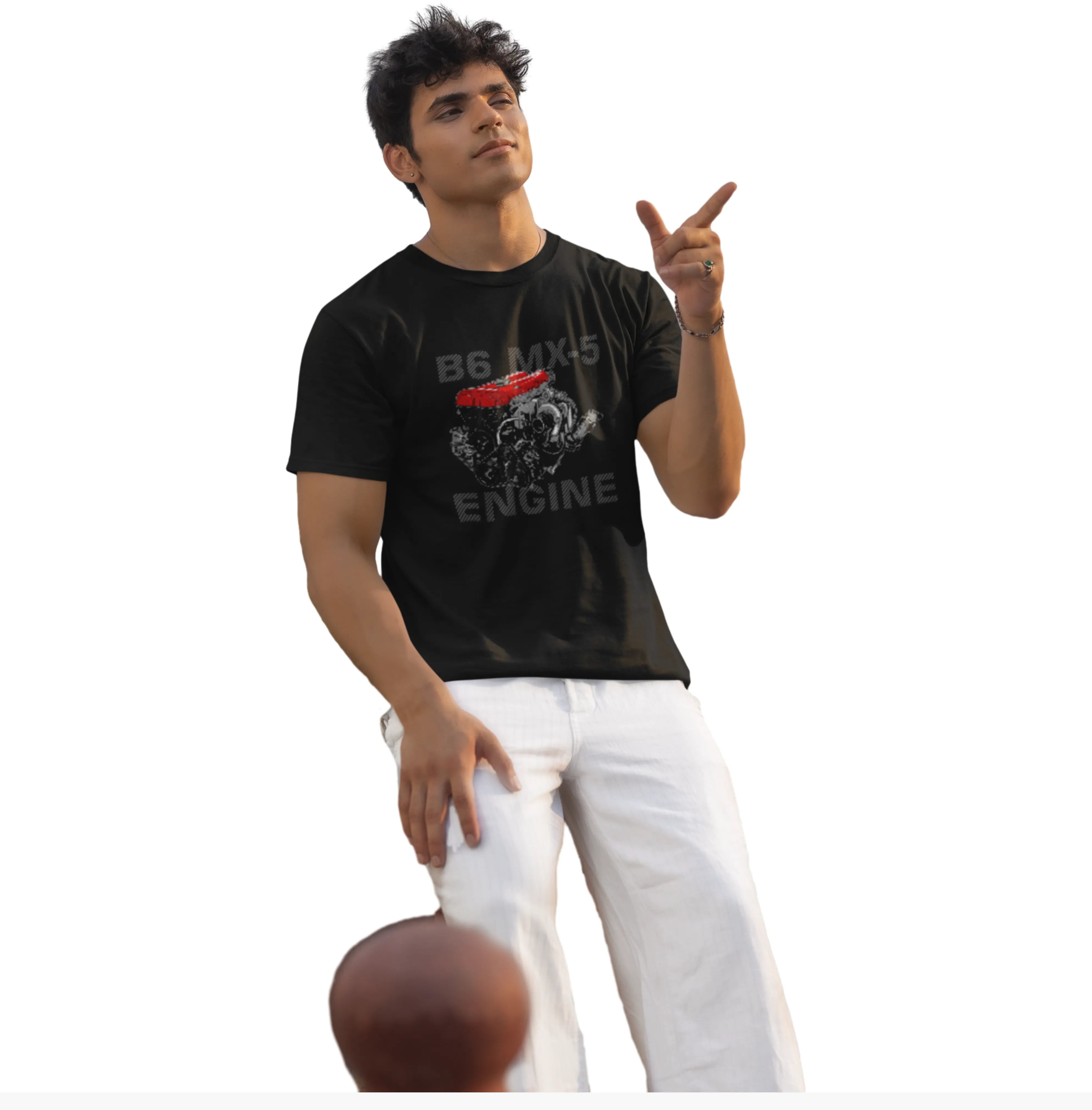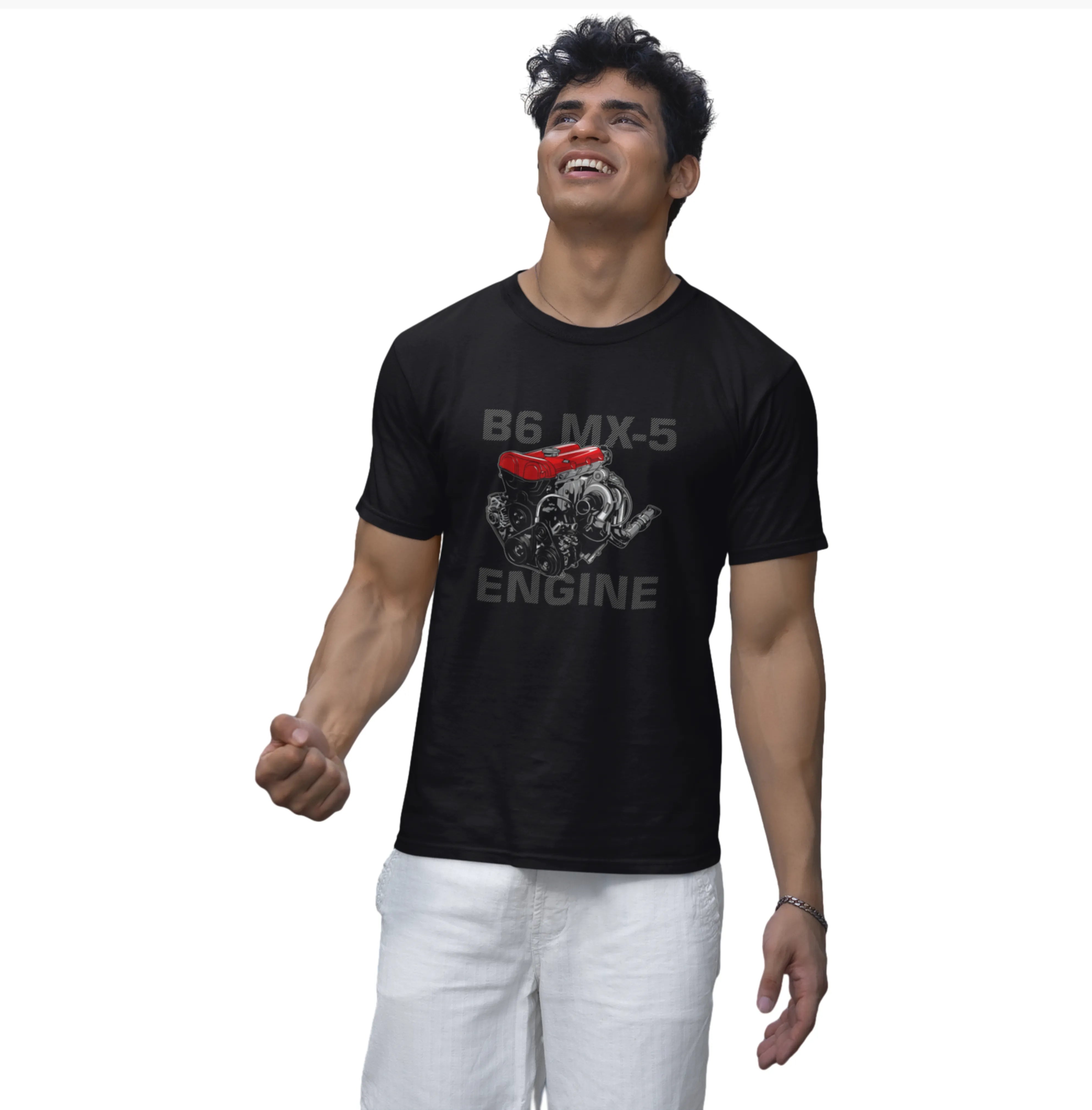 Celebrate lightweight fun with the classic “B6 MX5” tee. Inspired by the legendary roadster’s nimble handling and open-top freedom, this design is for true driving purists and weekend cruisers.
