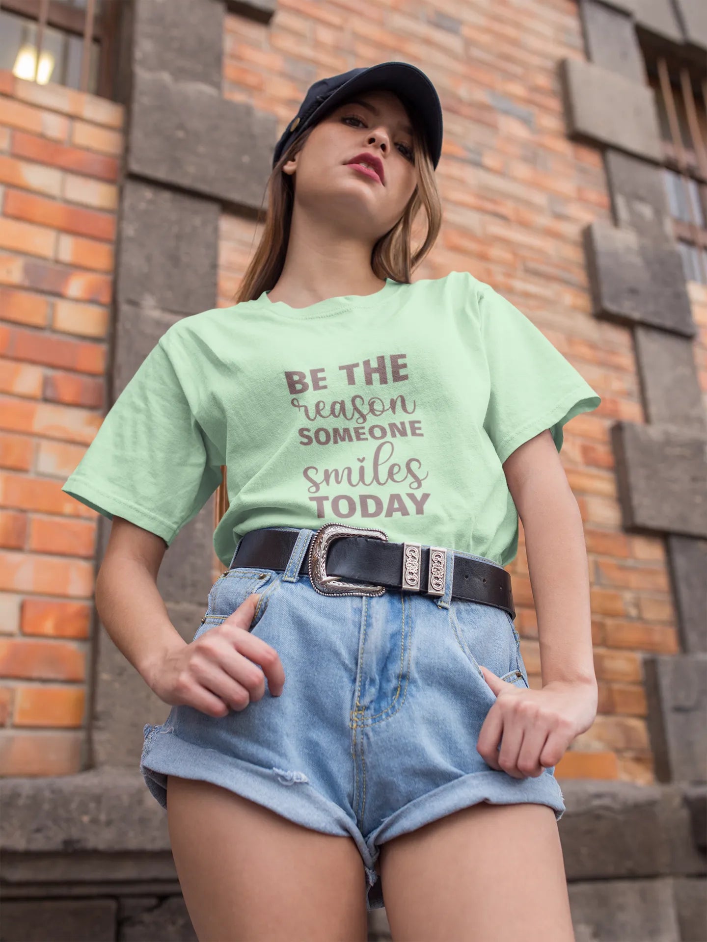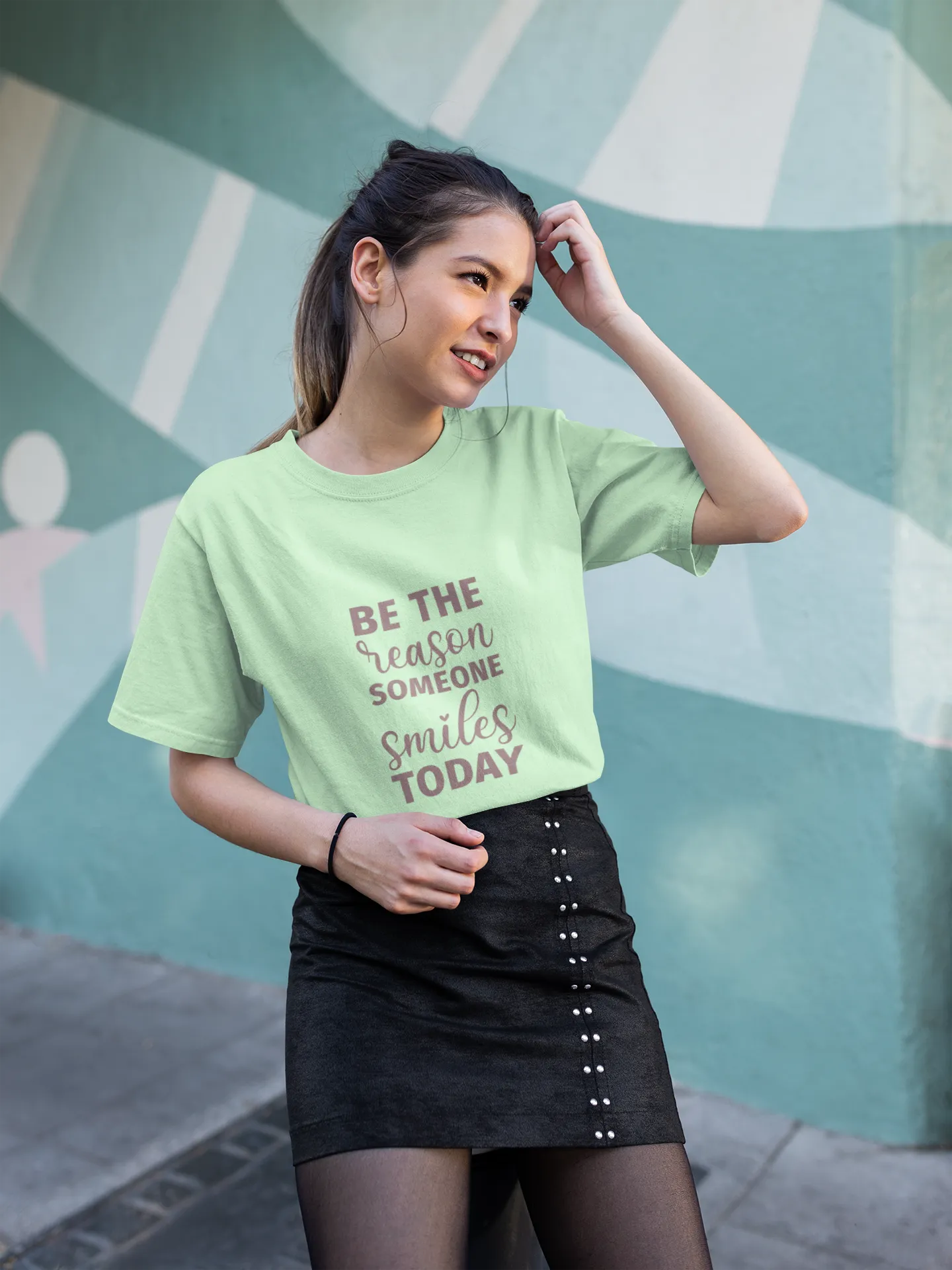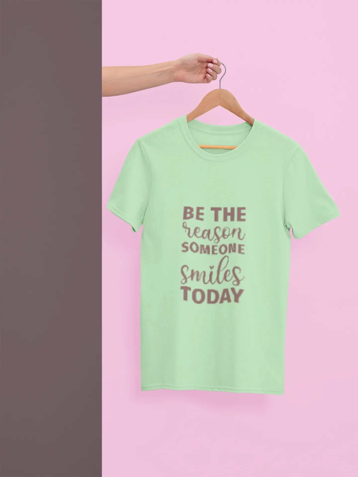 A minimal yet uplifting t-shirt design featuring the quote “Be the reason someone smiles today” in elegant typography. Soft, pastel colors and a subtle smiley icon add warmth, spreading positivity and encouraging kindness with every wear.