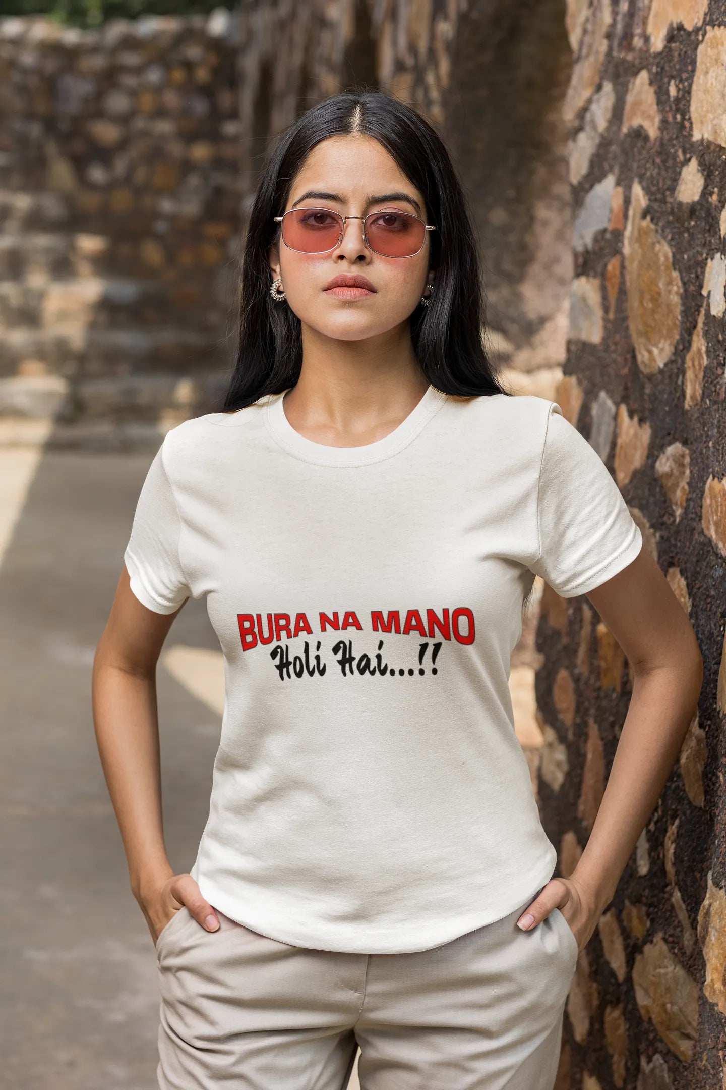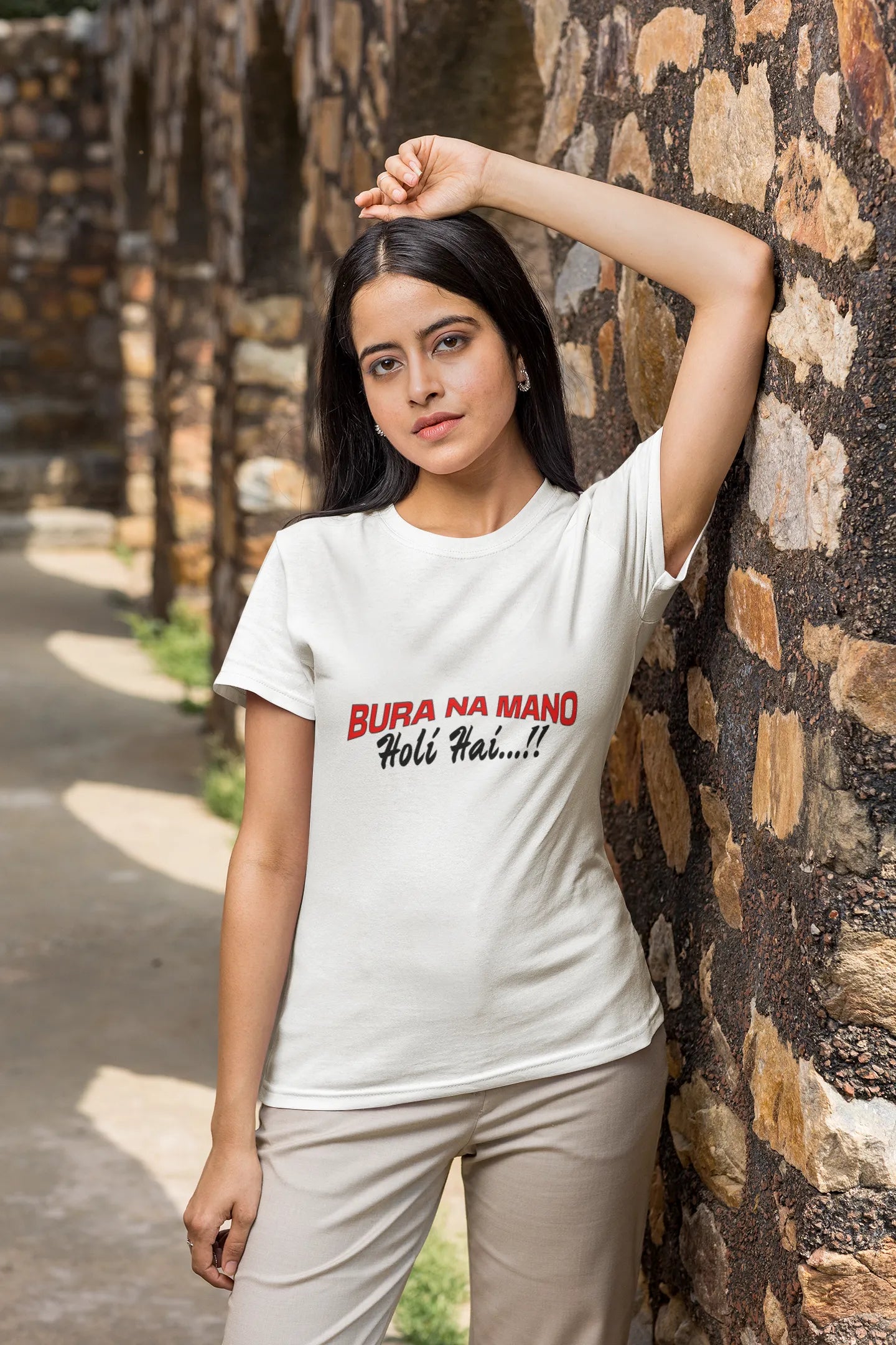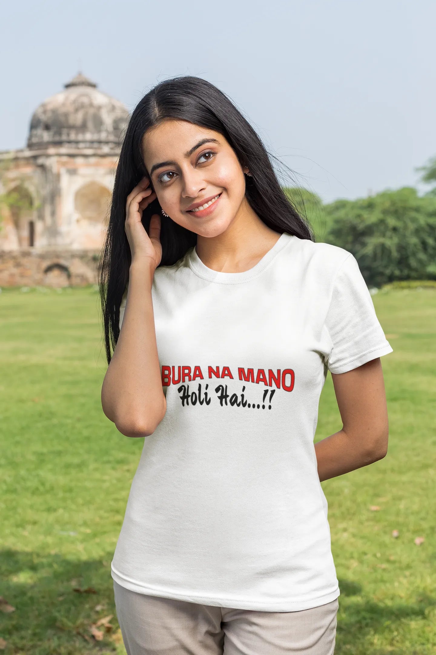 The "Bura Na Mano Holi Hai" T-shirt design bursts with vibrant splashes of color, playful typography, and festive elements like gulal, water balloons, and pichkaris. Celebrating the joy of Holi, this energetic design spreads fun, positivity, and the true spirit of the festival.
