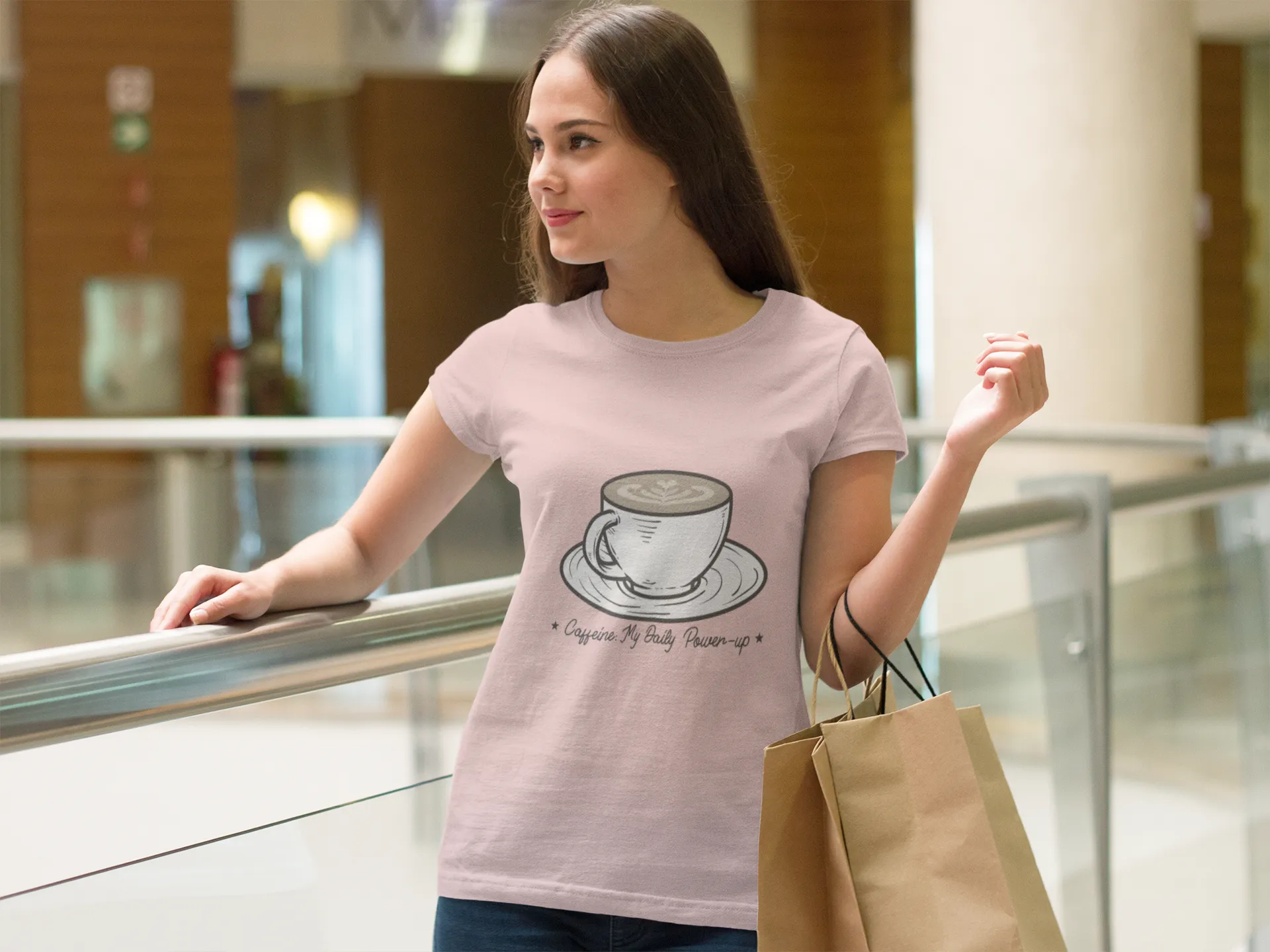 A lively and energetic T-shirt design featuring the phrase “Caffeine: My Daily Power-Up” in bold, dynamic typography. Accented with coffee cups, energy icons, or pixel-style power-up symbols, it humorously highlights coffee as the essential fuel — perfect for caffeine lovers who start their day with a boost.