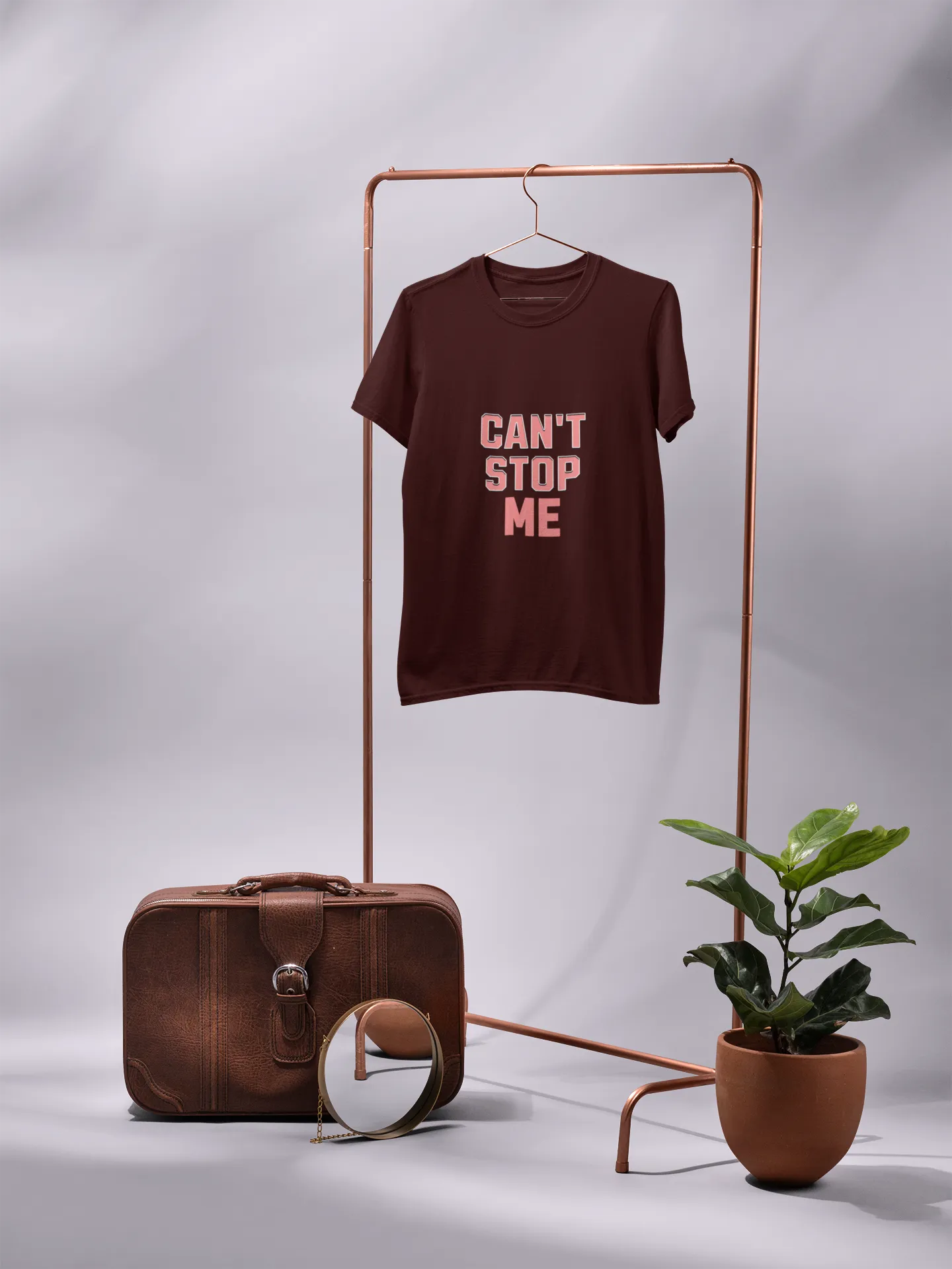 A bold t-shirt design with the phrase "Can’t Stop Me" in dynamic, edgy typography. Vibrant colors or metallic accents amplify the fearless vibe. Perfect for go-getters, the design radiates confidence, energy, and a no-limits attitude with every wear.