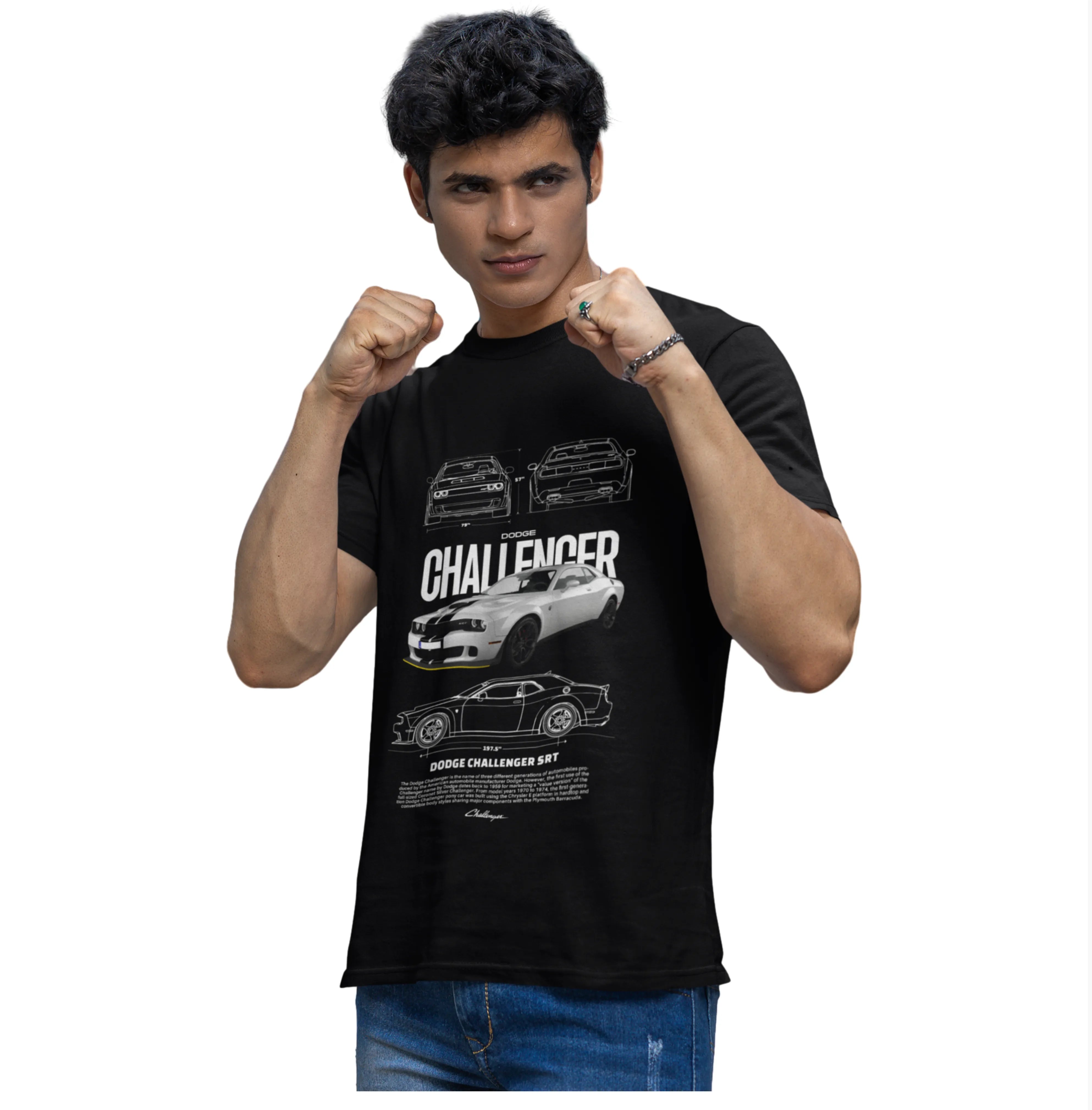 Show your muscle with the powerful “Challenger” tee. A bold design for American performance lovers, this piece captures the raw aggression and street presence of a true V8 beast.