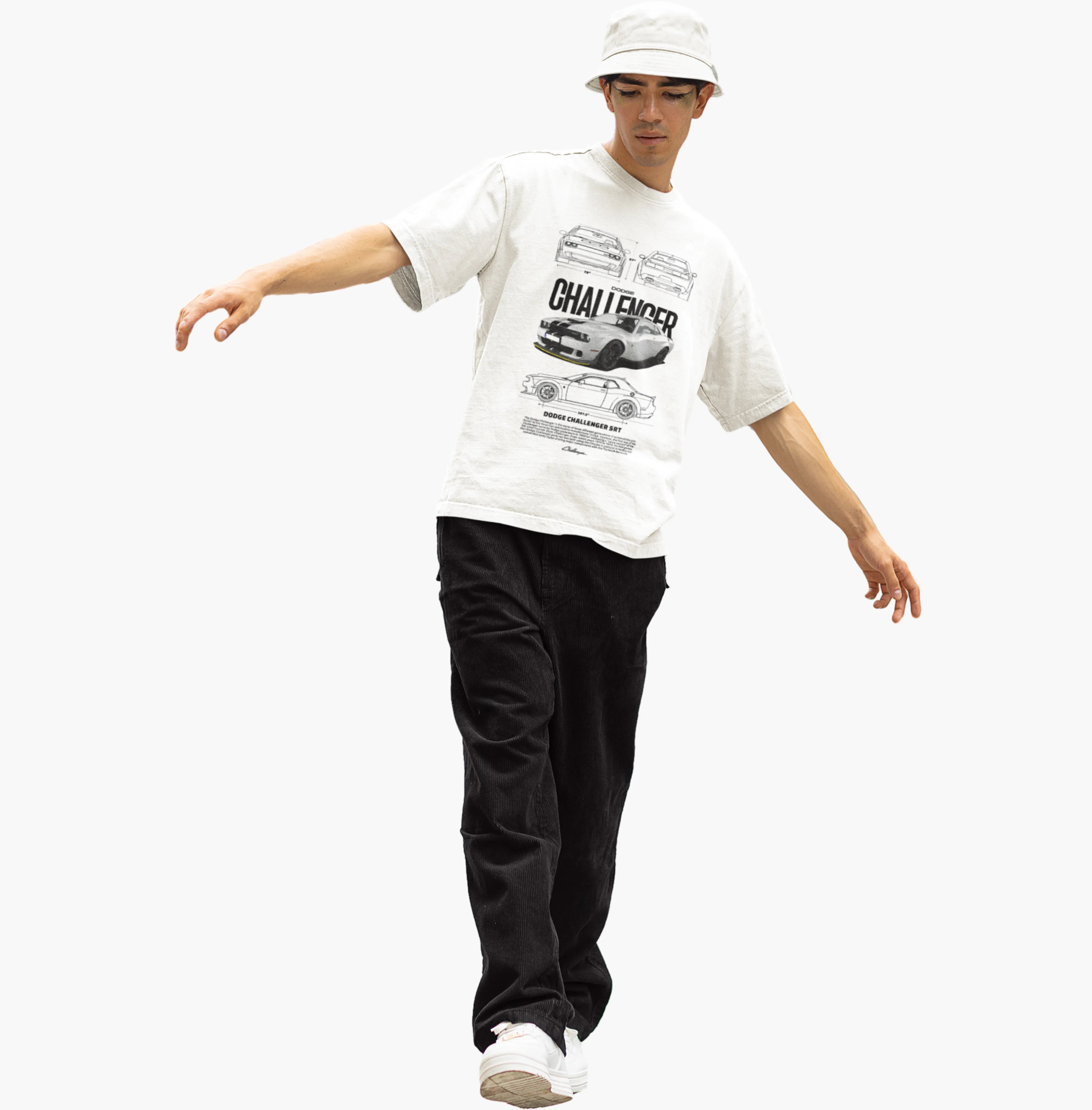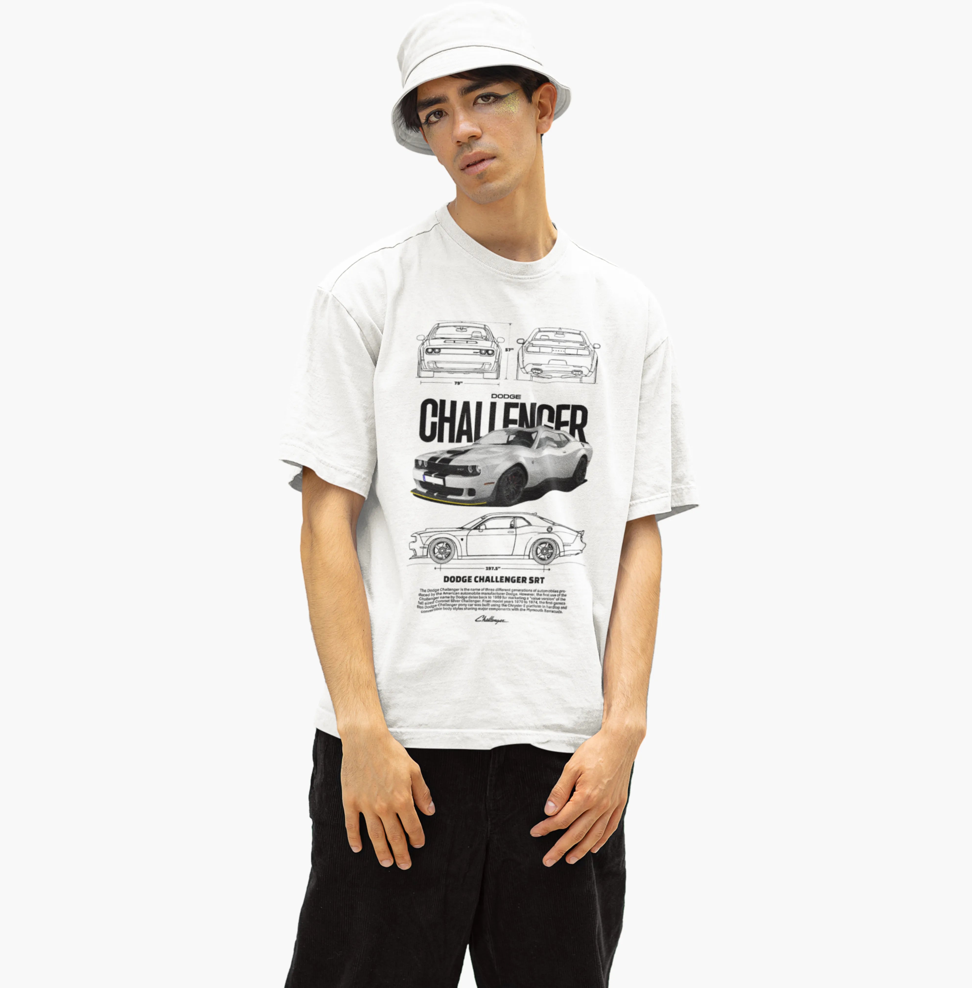 Show your muscle with the powerful “Challenger” tee. A bold design for American performance lovers, this piece captures the raw aggression and street presence of a true V8 beast.