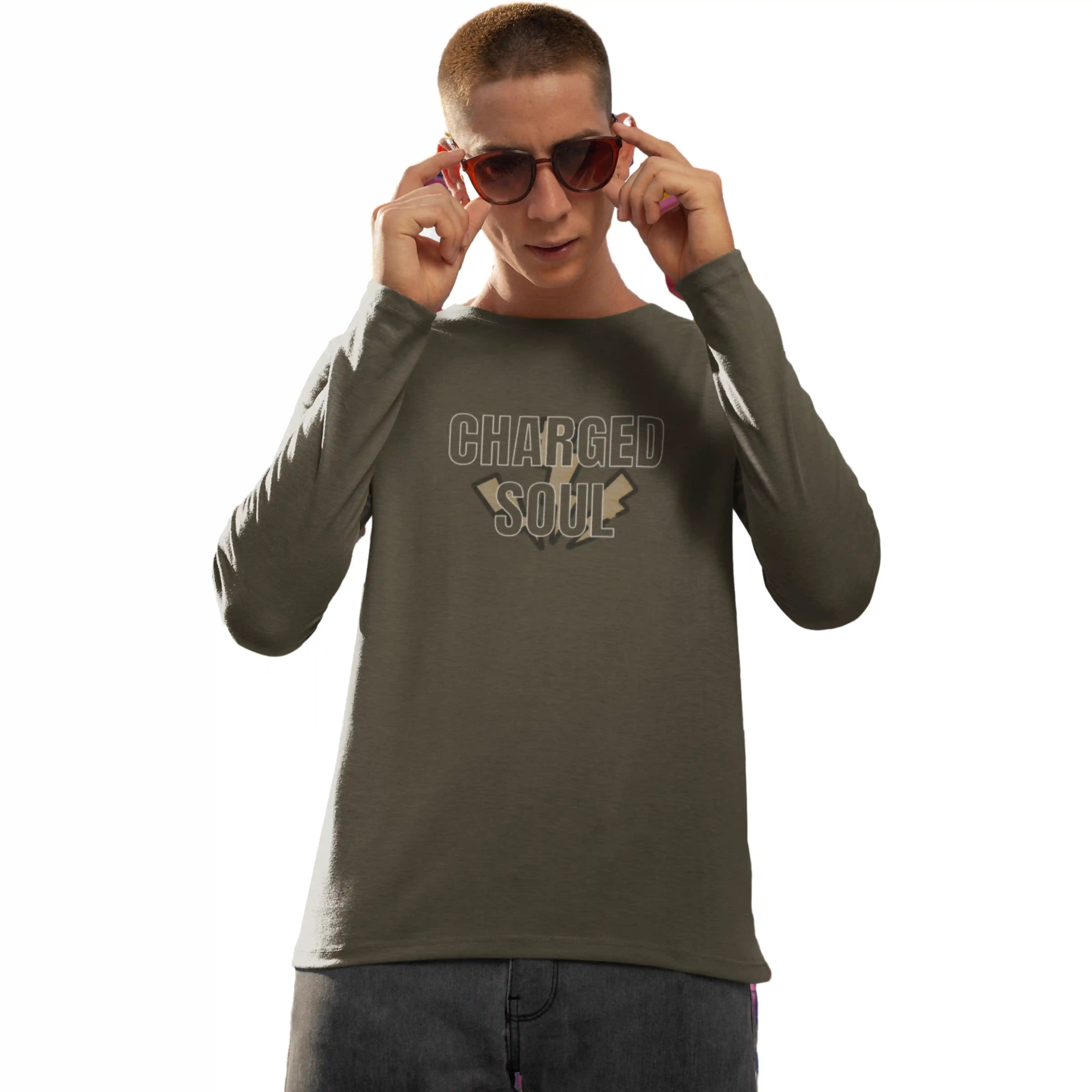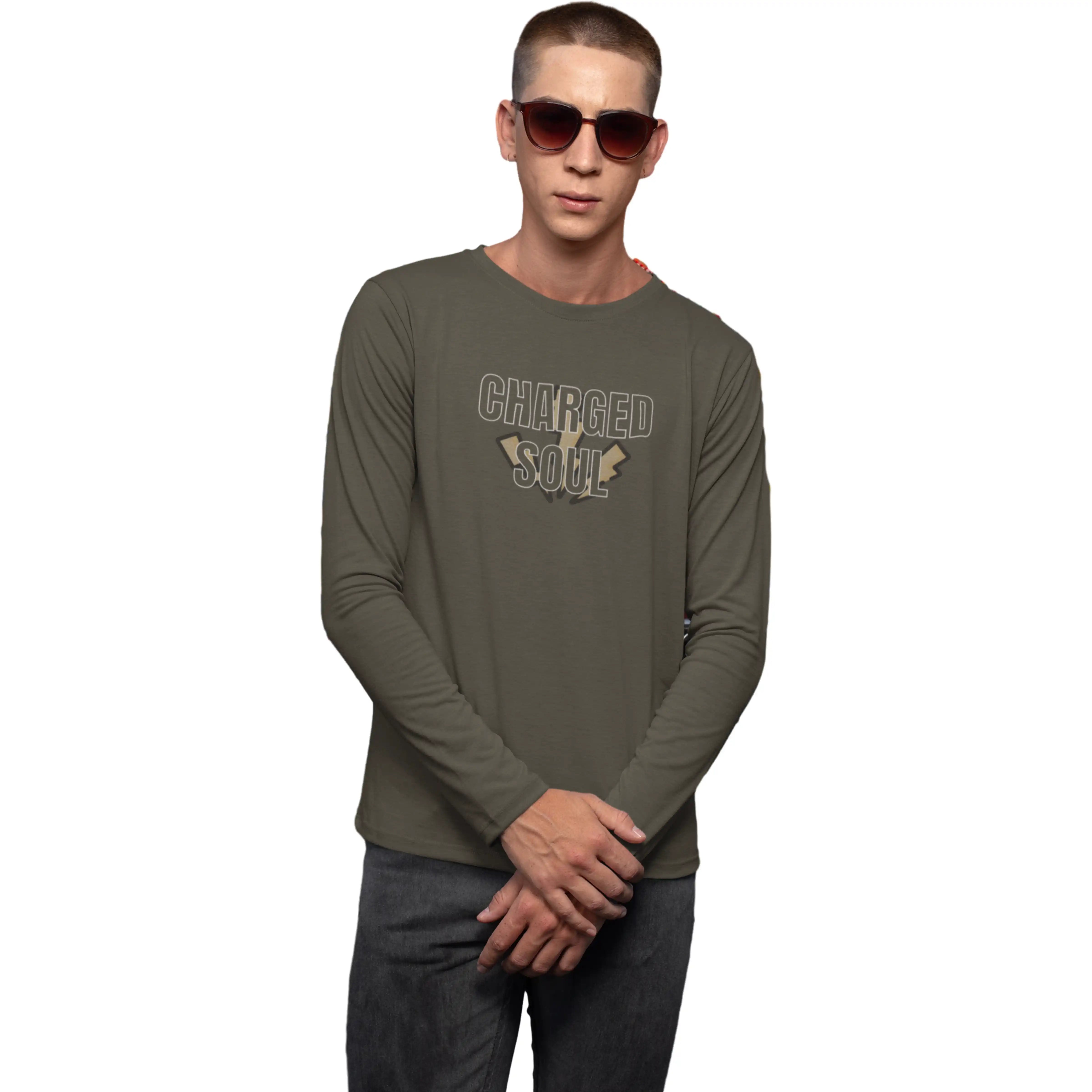 Energize your style with this olive green “Charged Soul” t-shirt. Full sleeves and a soft regular fit make it perfect for driven spirits with unstoppable energy.