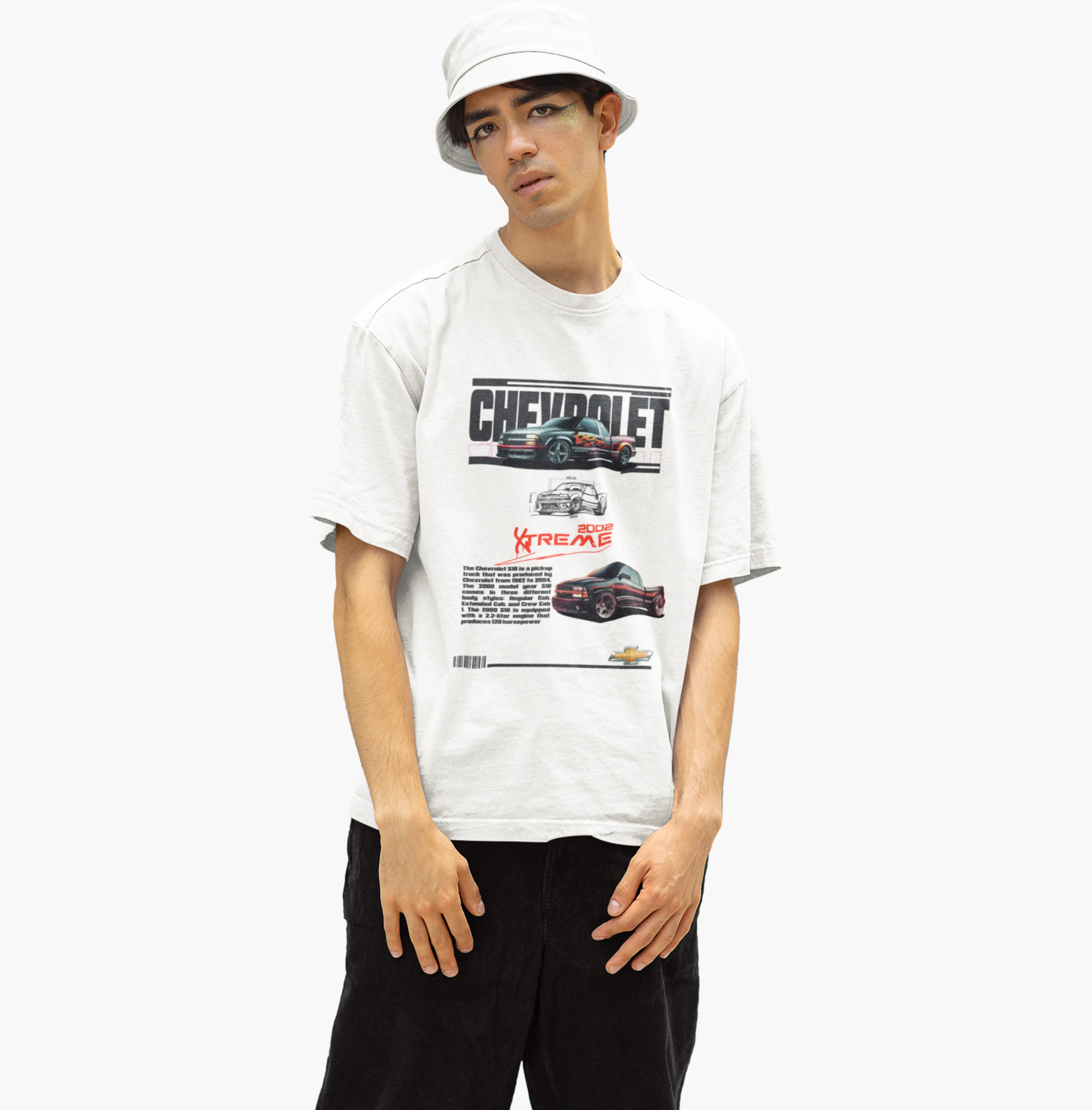 White t-shirt with Toyota Corolla AE86 design on a black background
