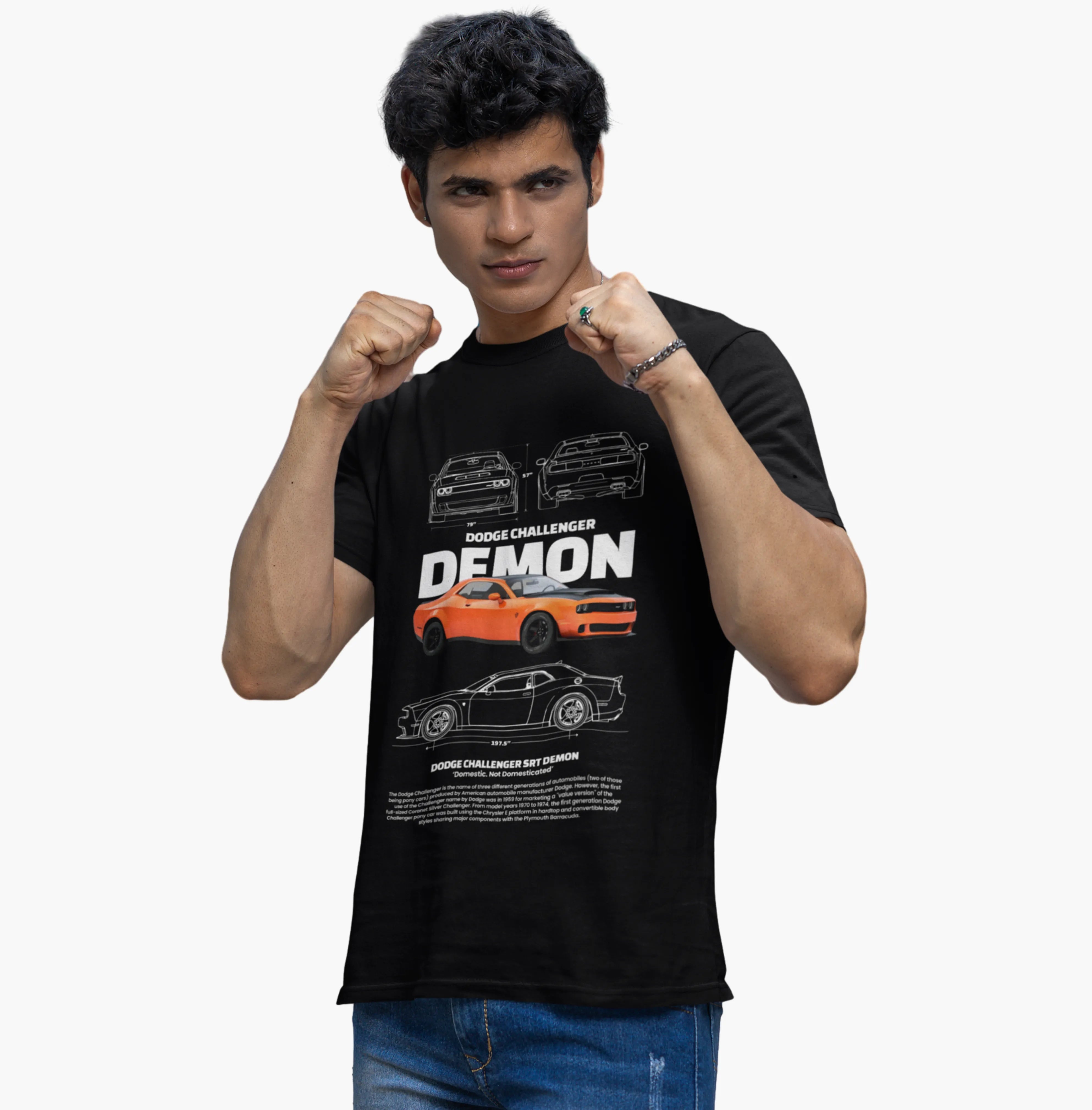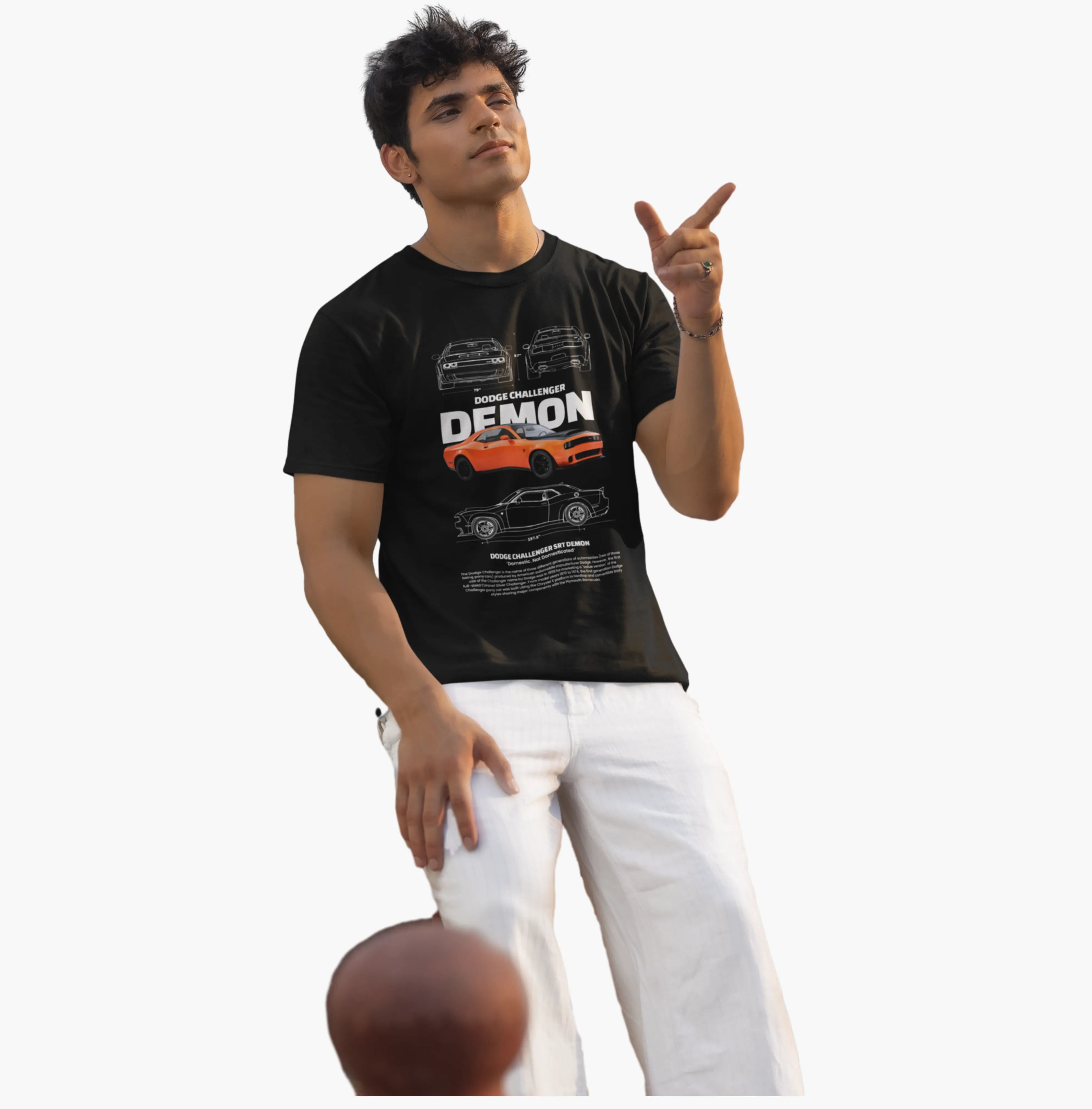 Unleash raw chaos with the “Demon” tee. Born for the drag strip and built to dominate, this design is perfect for adrenaline junkies who crave speed, power, and pure muscle car energy.