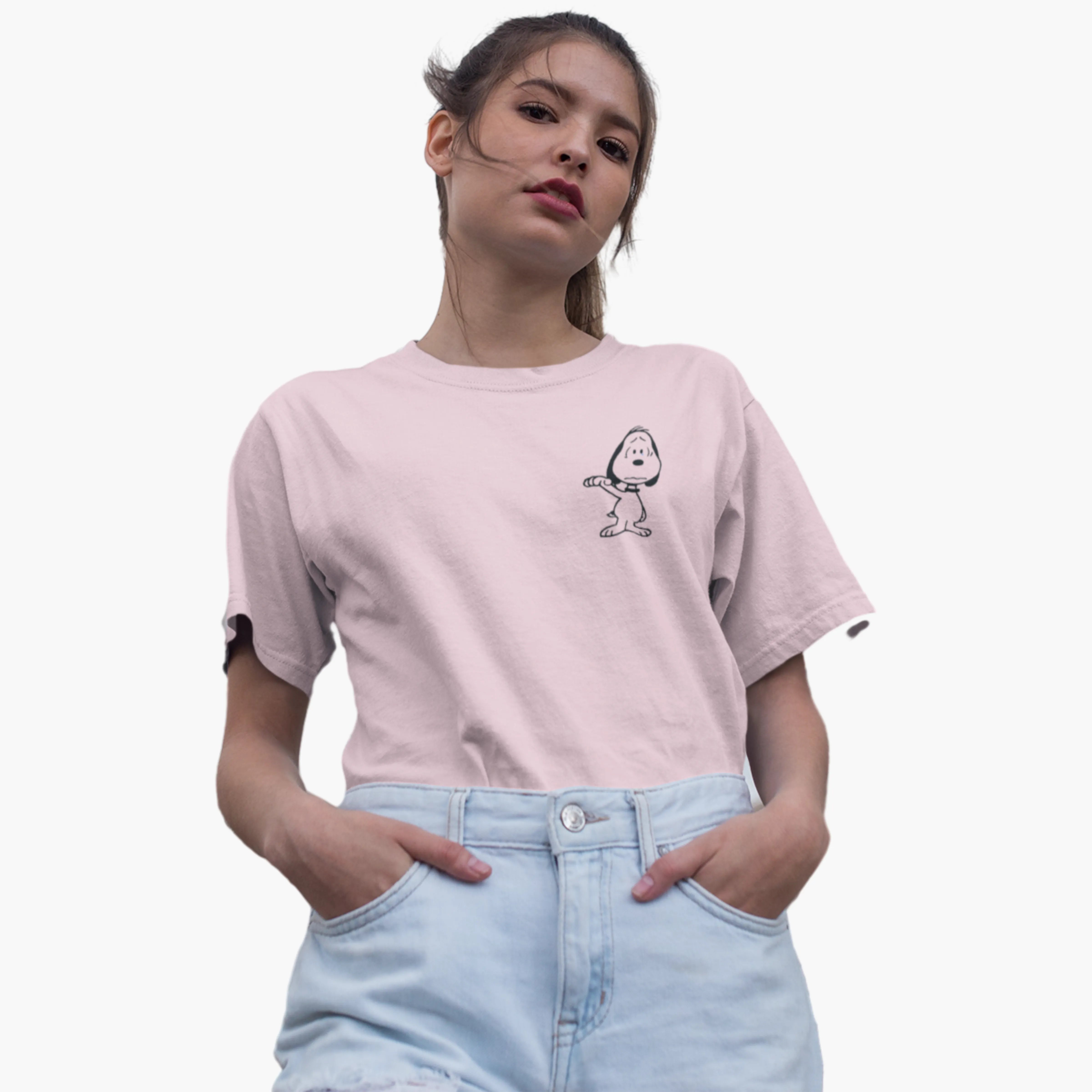 Add a touch of sweetness to your wardrobe with this light pink dog-themed T-shirt. Featuring a flattering regular fit and soft texture, it’s ideal for casual outings, cozy weekends, or simply showing your affection for adorable furry companions.