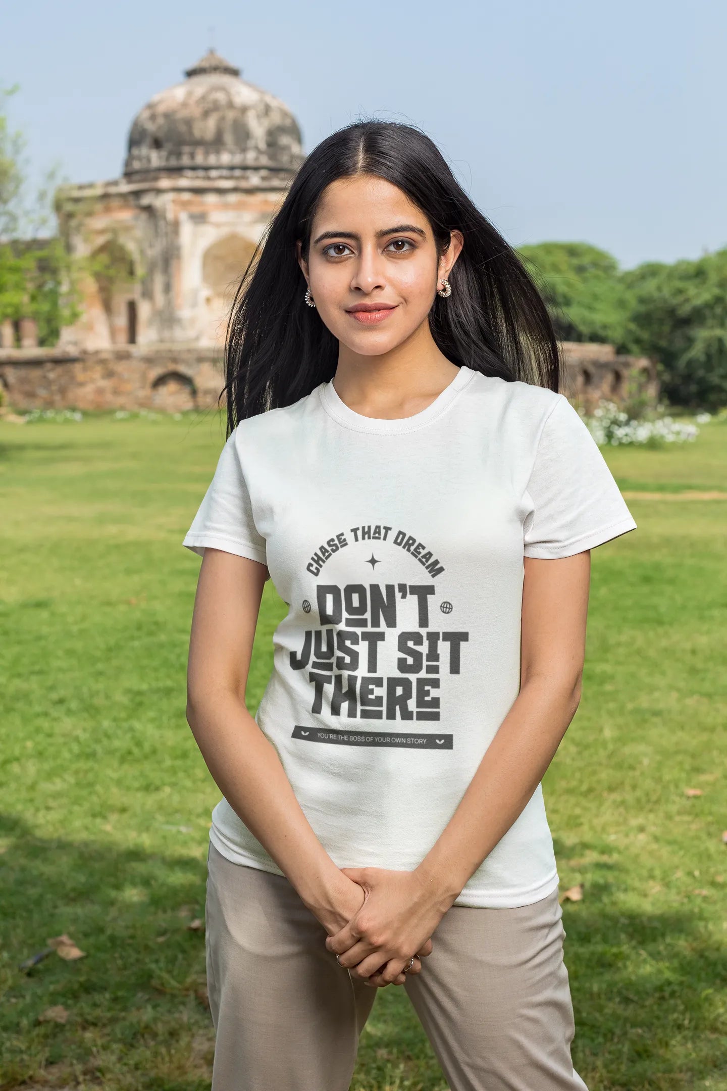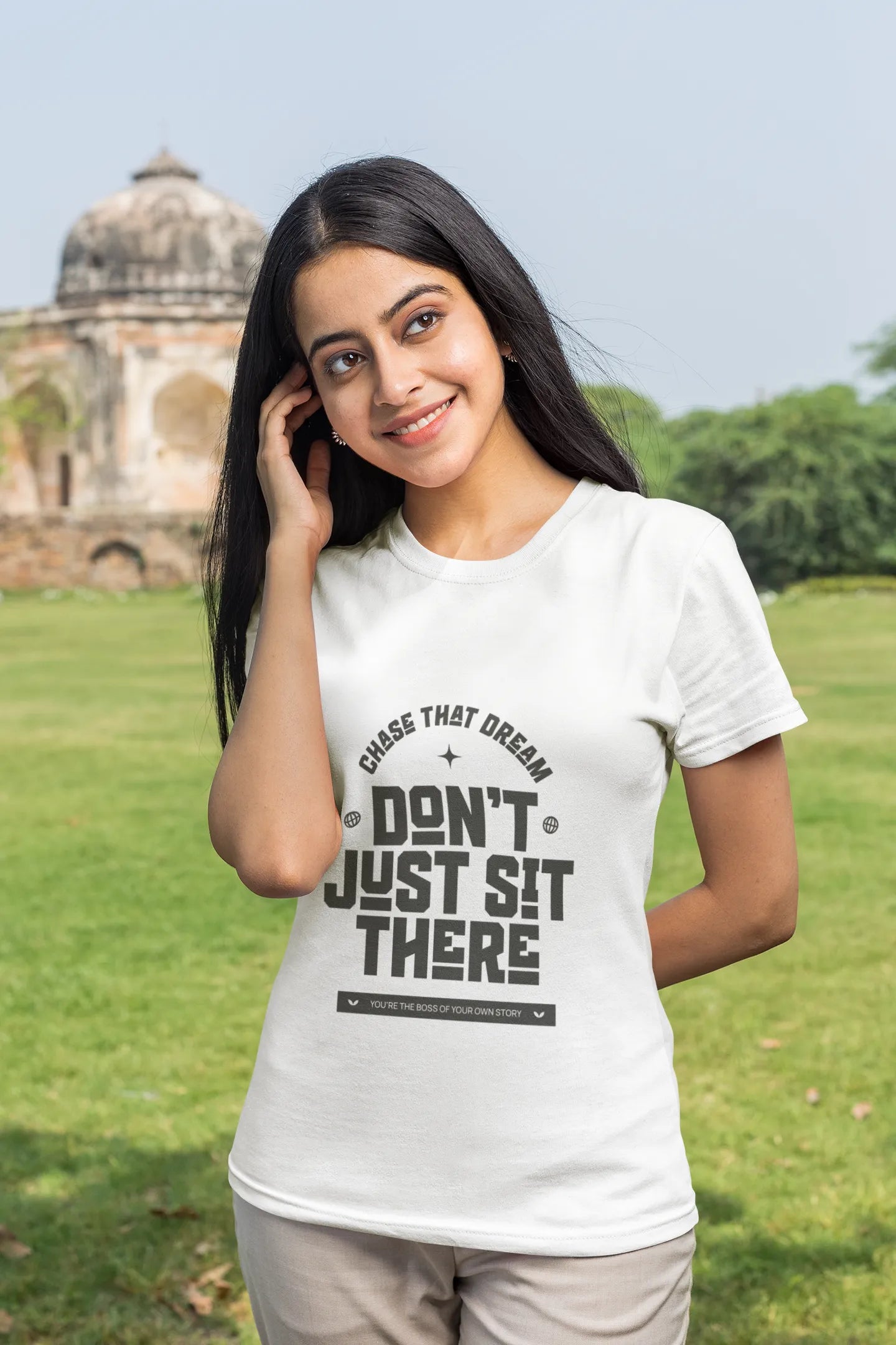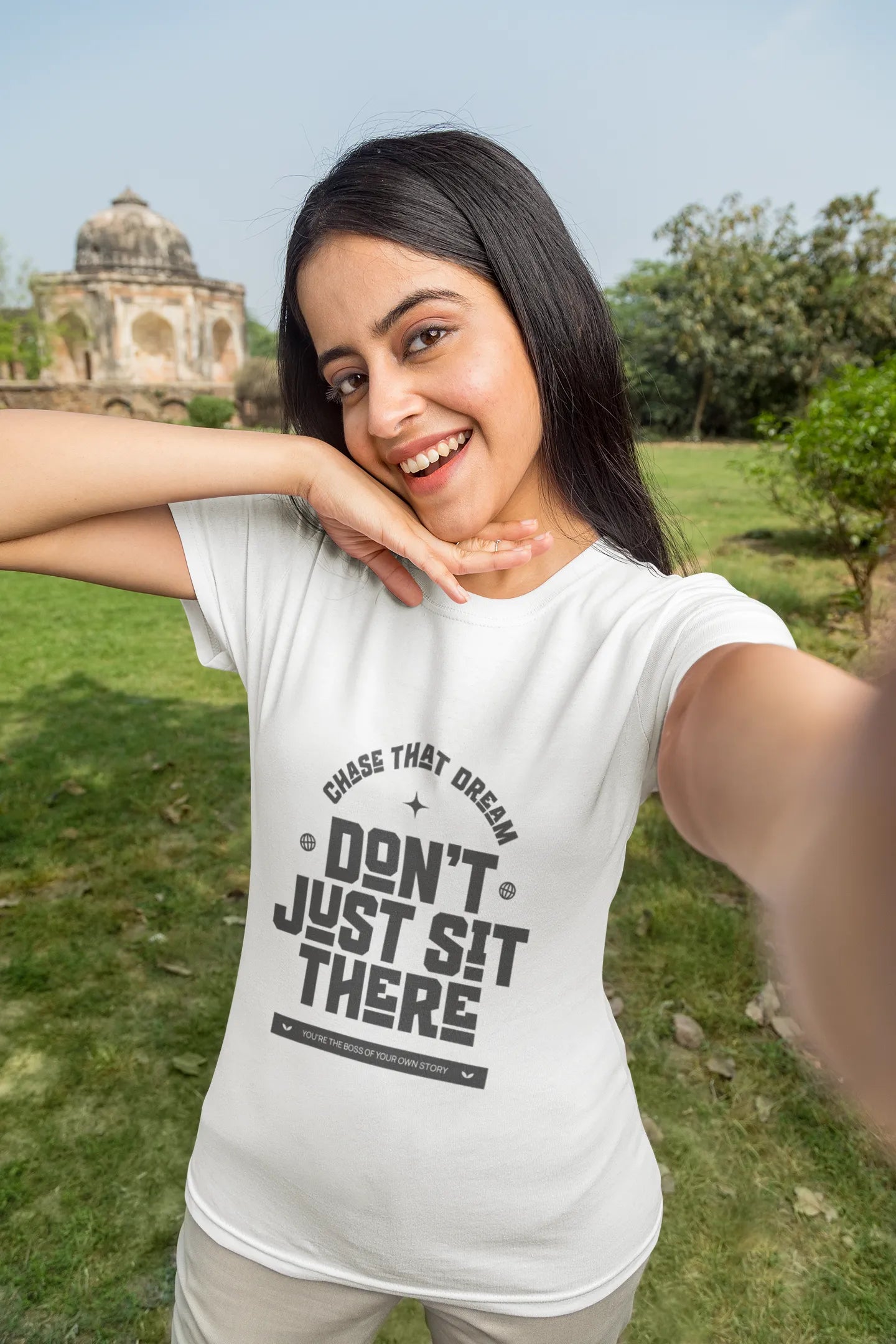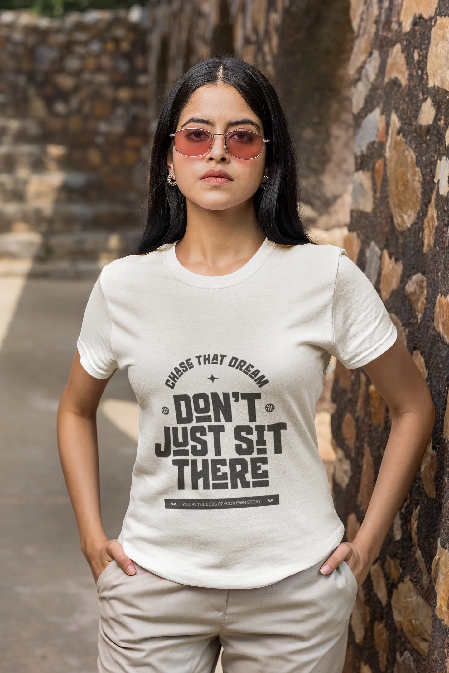 A bold and motivating T-shirt design featuring the phrase “Don’t Just Sit There” in dynamic, action-oriented typography. Accented with motion lines, arrows, or energetic graphics, it inspires movement, ambition, and action — perfect for go-getters and anyone ready to make things happen.