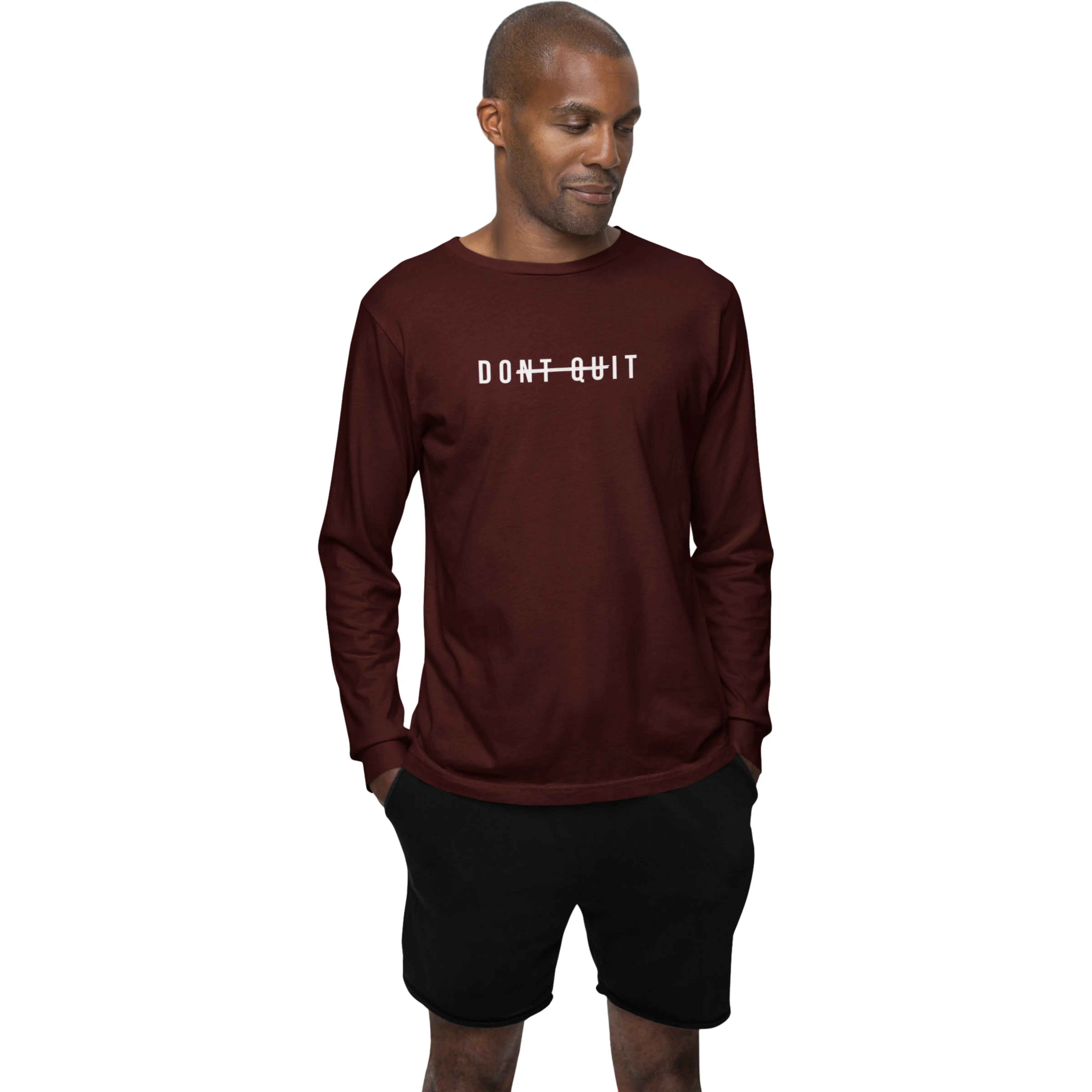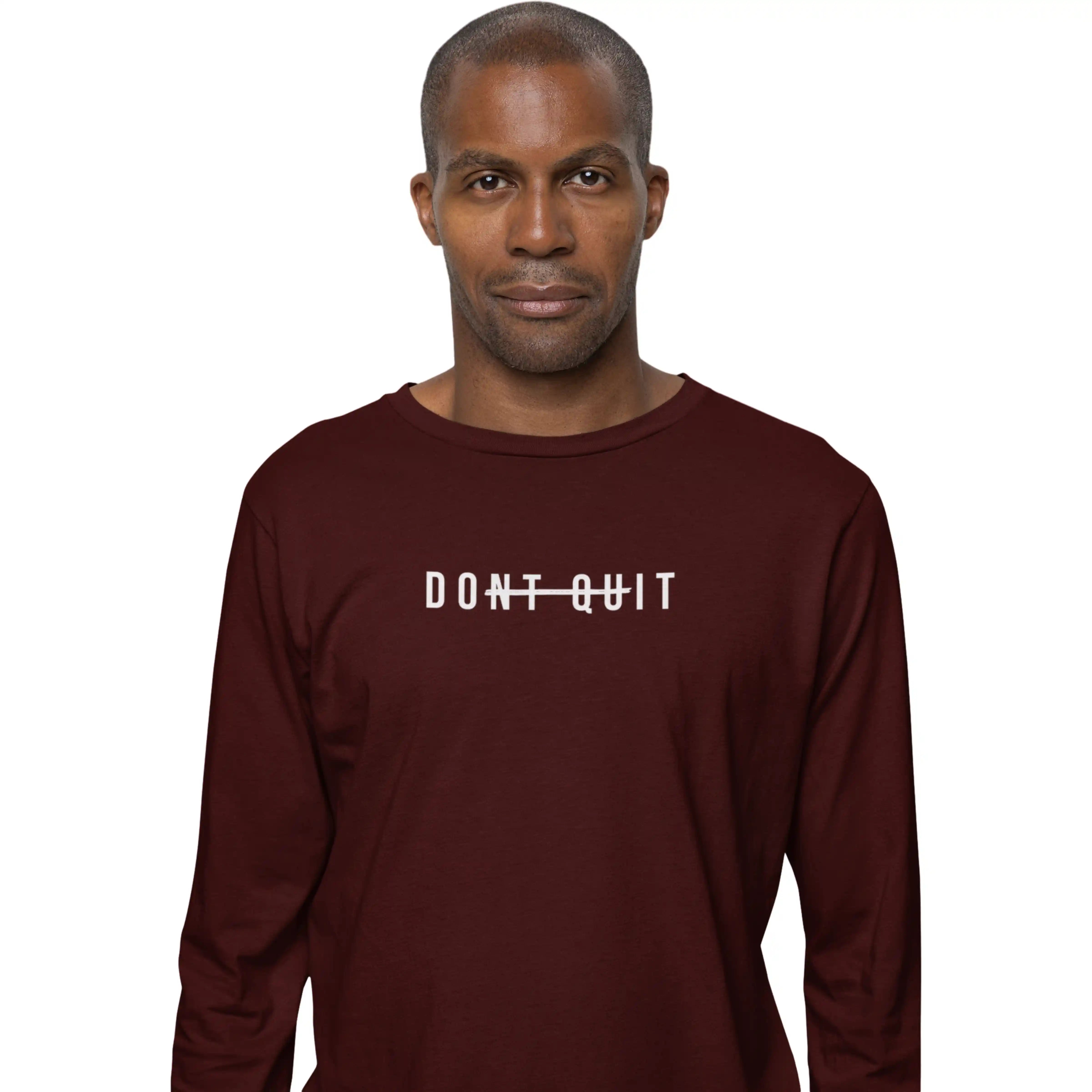 Fuel your motivation with this maroon “Don’t Quit” t-shirt. Designed for go-getters, it offers comfort and confidence with every wear — a true reminder to never give up.