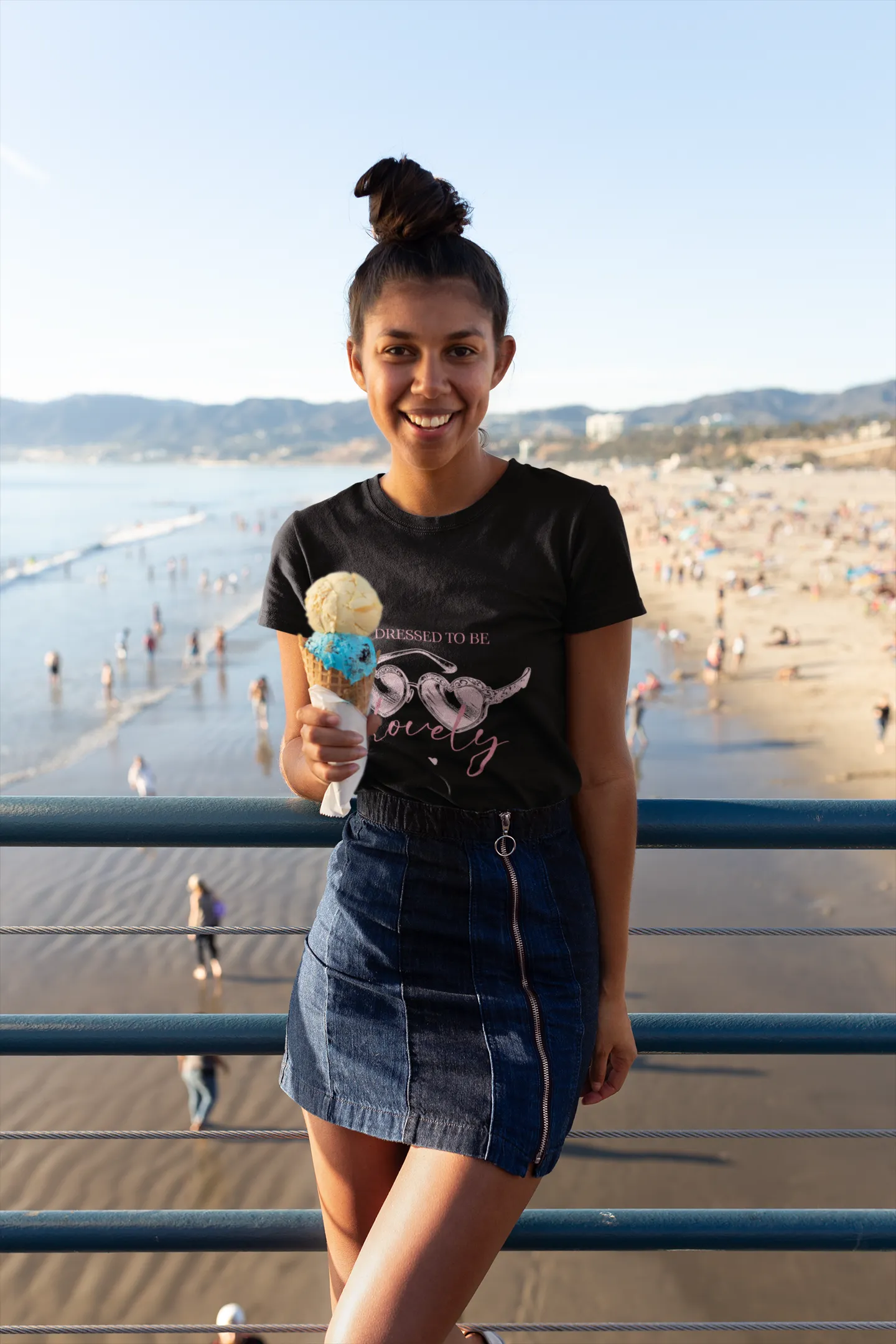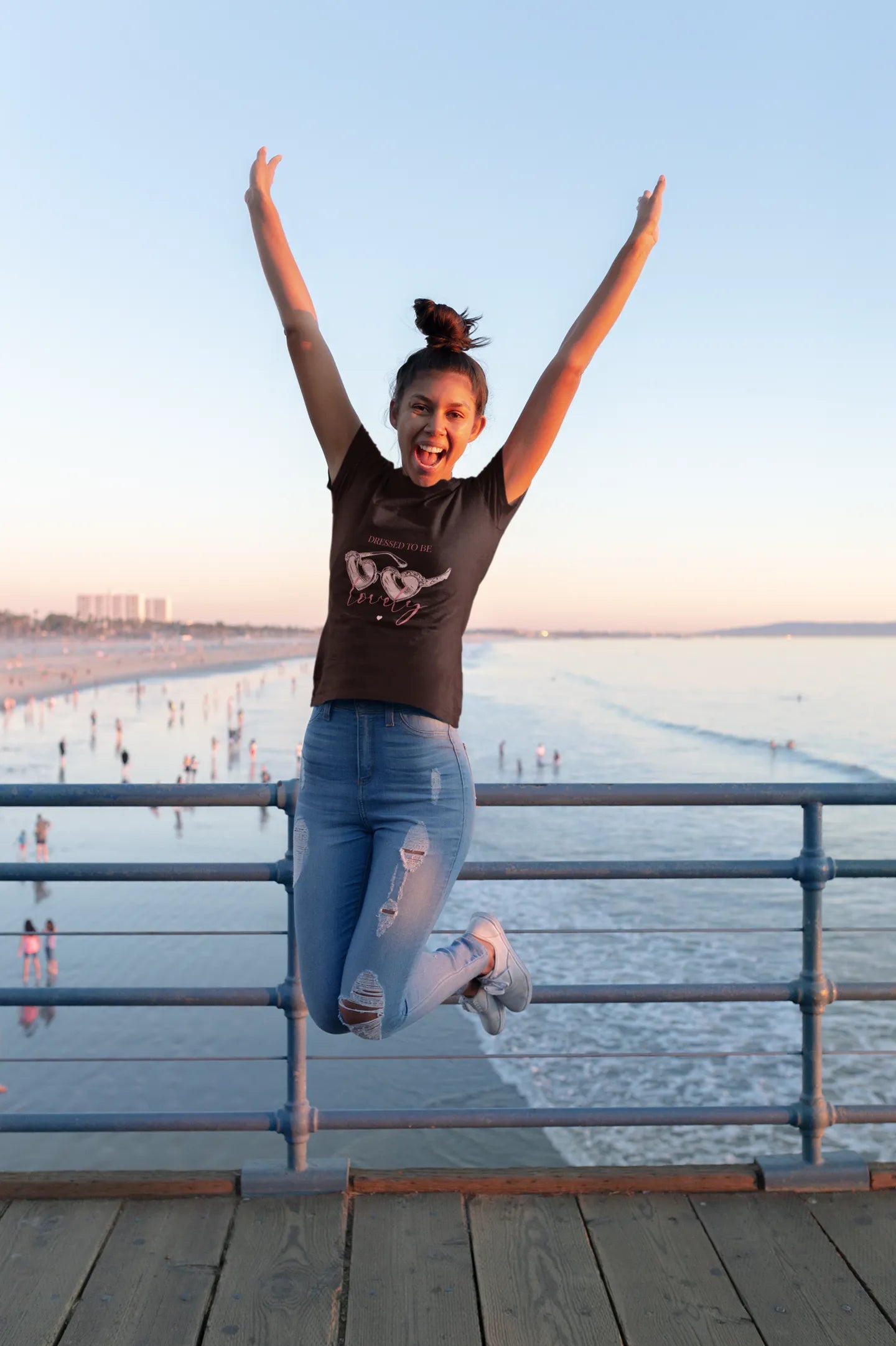 A charming and stylish T-shirt design featuring the phrase “Dressed to Be Lovely” in graceful, fashion-forward typography. Accented with soft floral motifs, hearts, or subtle sparkles, it radiates elegance and confidence — perfect for those who dress with charm, positivity, and self-love.