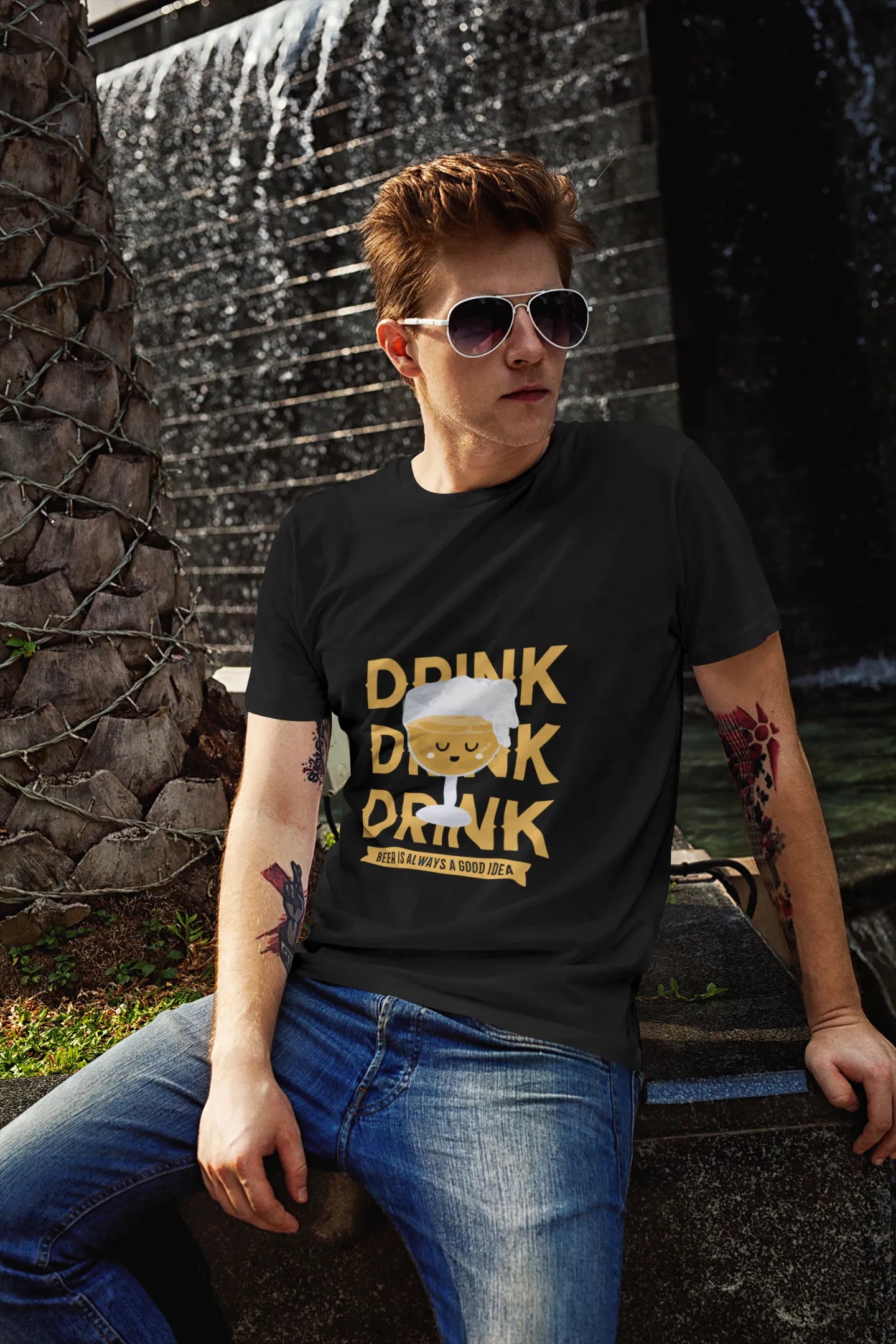 A bold and playful T-shirt design featuring the word “Drink” in eye-catching, dynamic typography. Accented with fun elements like clinking glasses, bottles, or colorful beverages, it gives off party, chill, or summer vibes — perfect for casual outings, festivals, or nightlife fun.