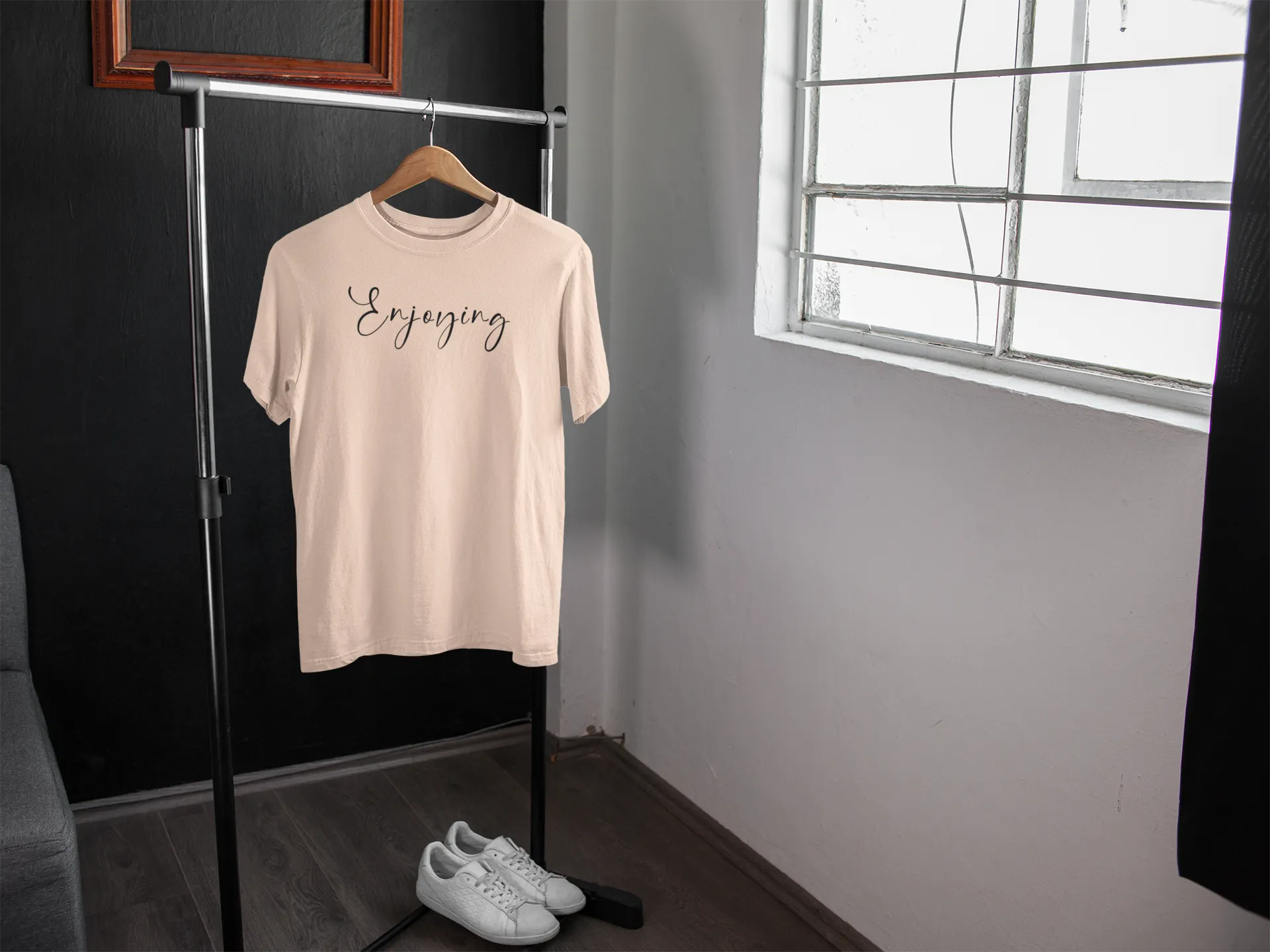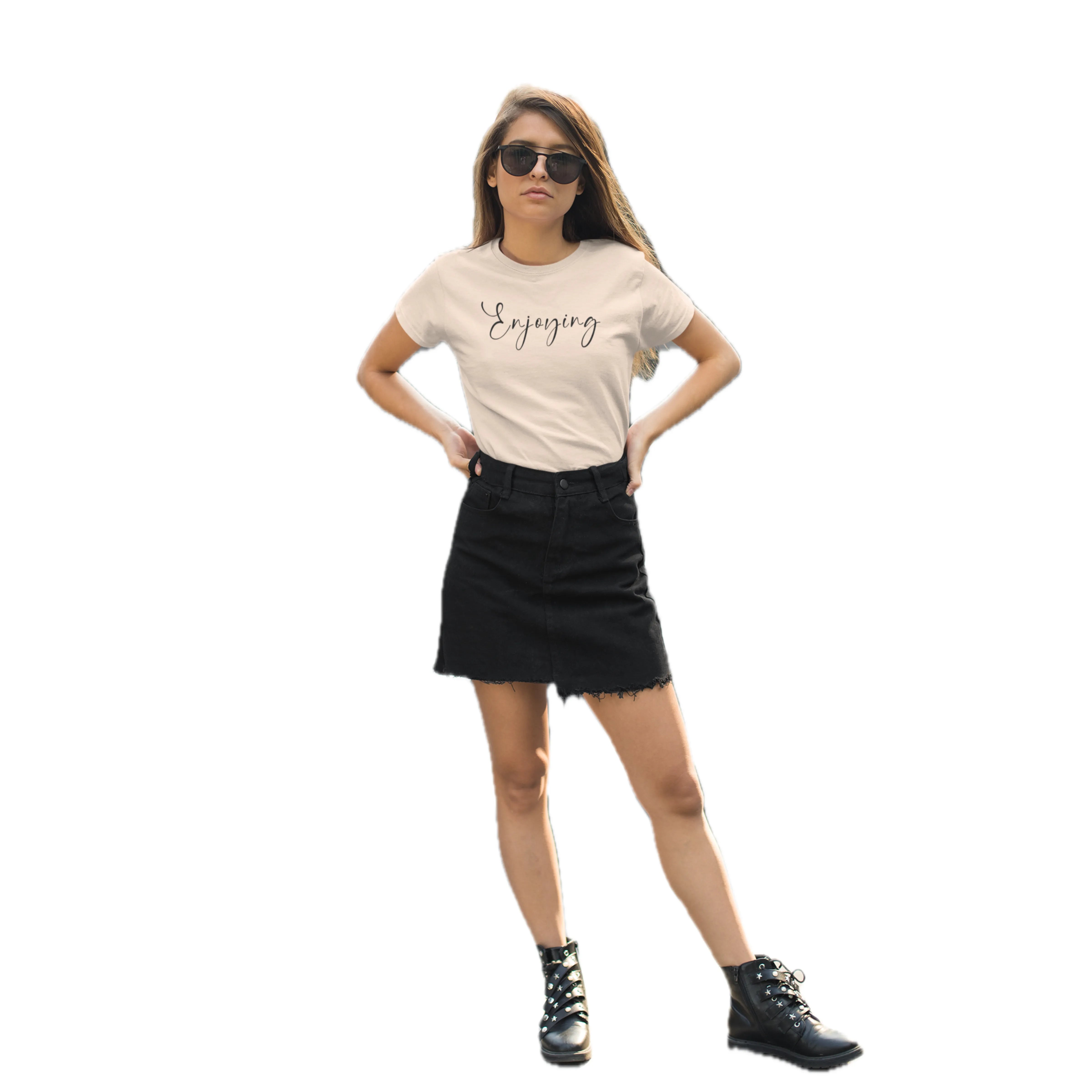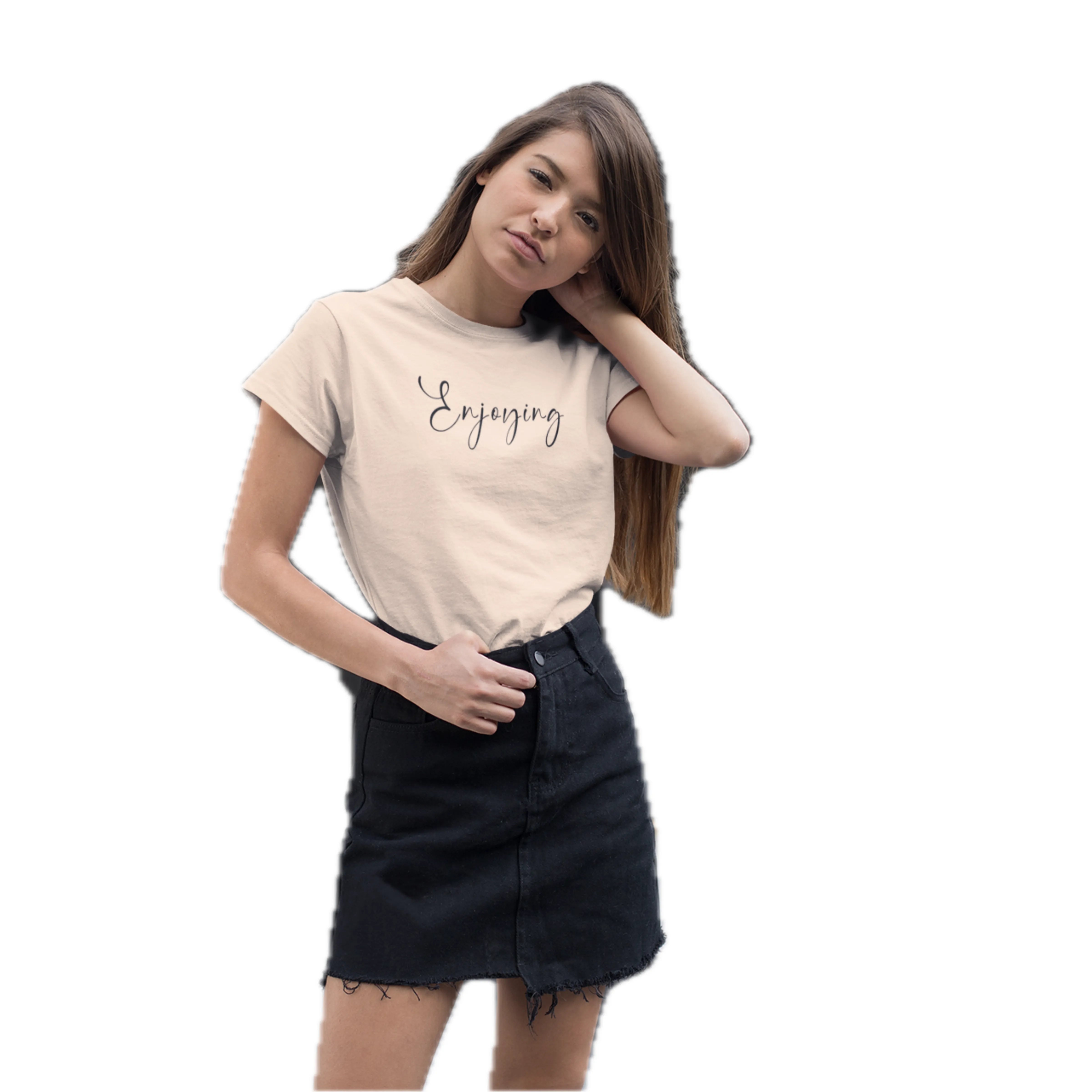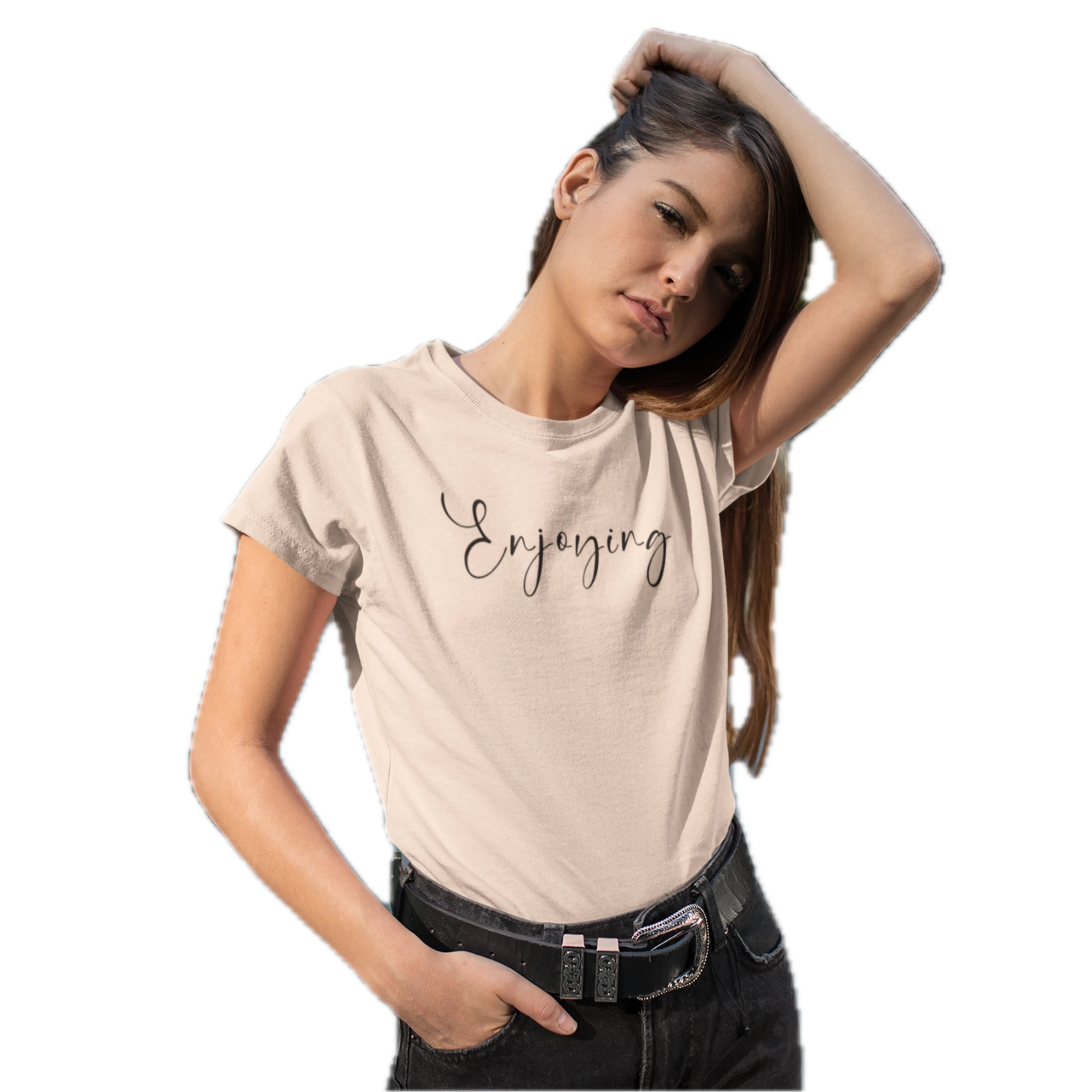 Slow down and soak it in. The “Enjoying” tee is a soft reminder to embrace the moment. With its soothing peach tone, this shirt radiates calm, chill, and contentment all at once.