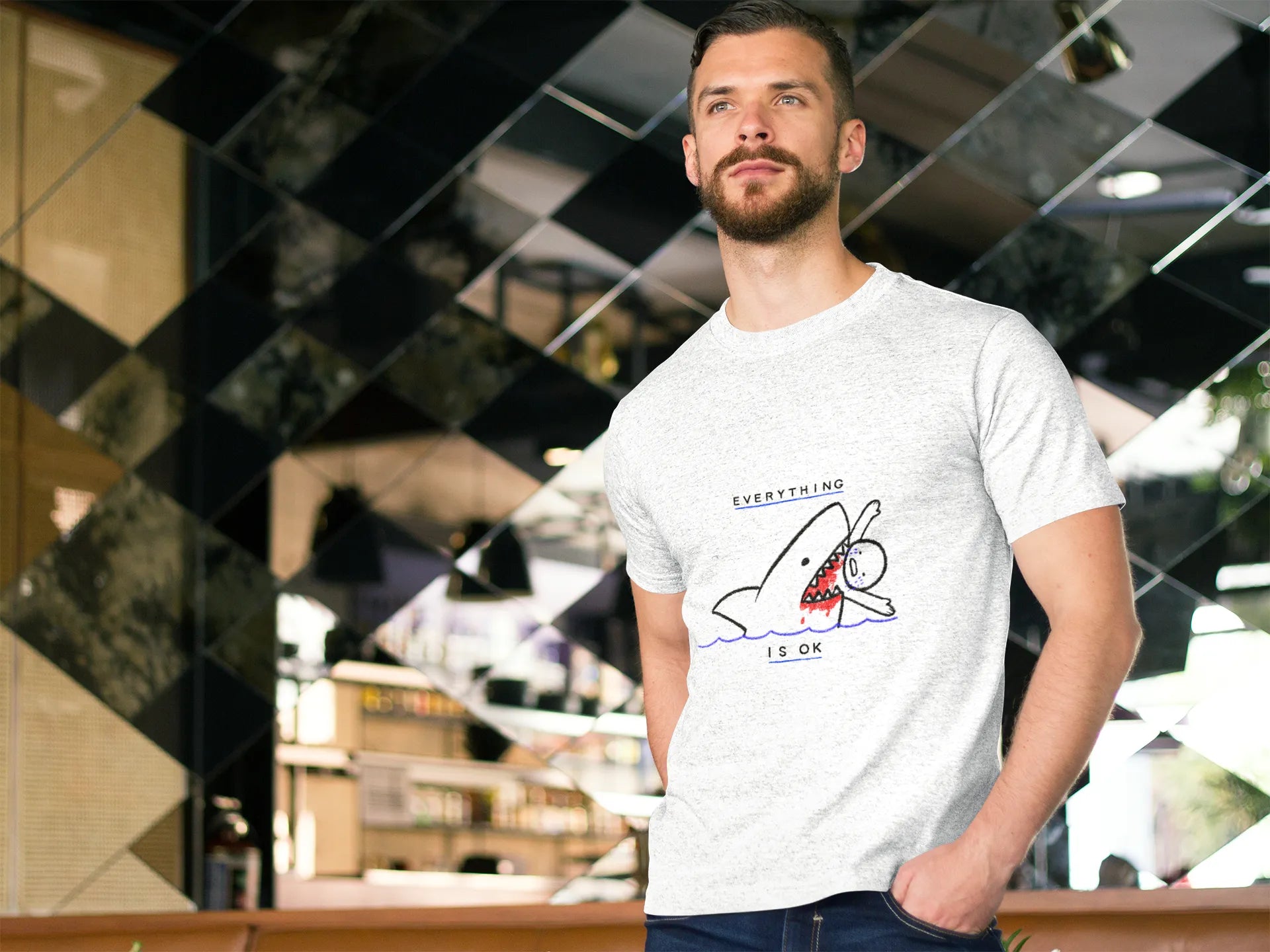 The "Everything is OK" T-shirt design features a bold, uplifting message in stylish typography. It may include a minimalist, modern font or playful, hand-drawn lettering. Bright, calming colors or a monochrome aesthetic enhance its versatility. Perfect for spreading positivity, motivation, and a carefree attitude effortlessly!