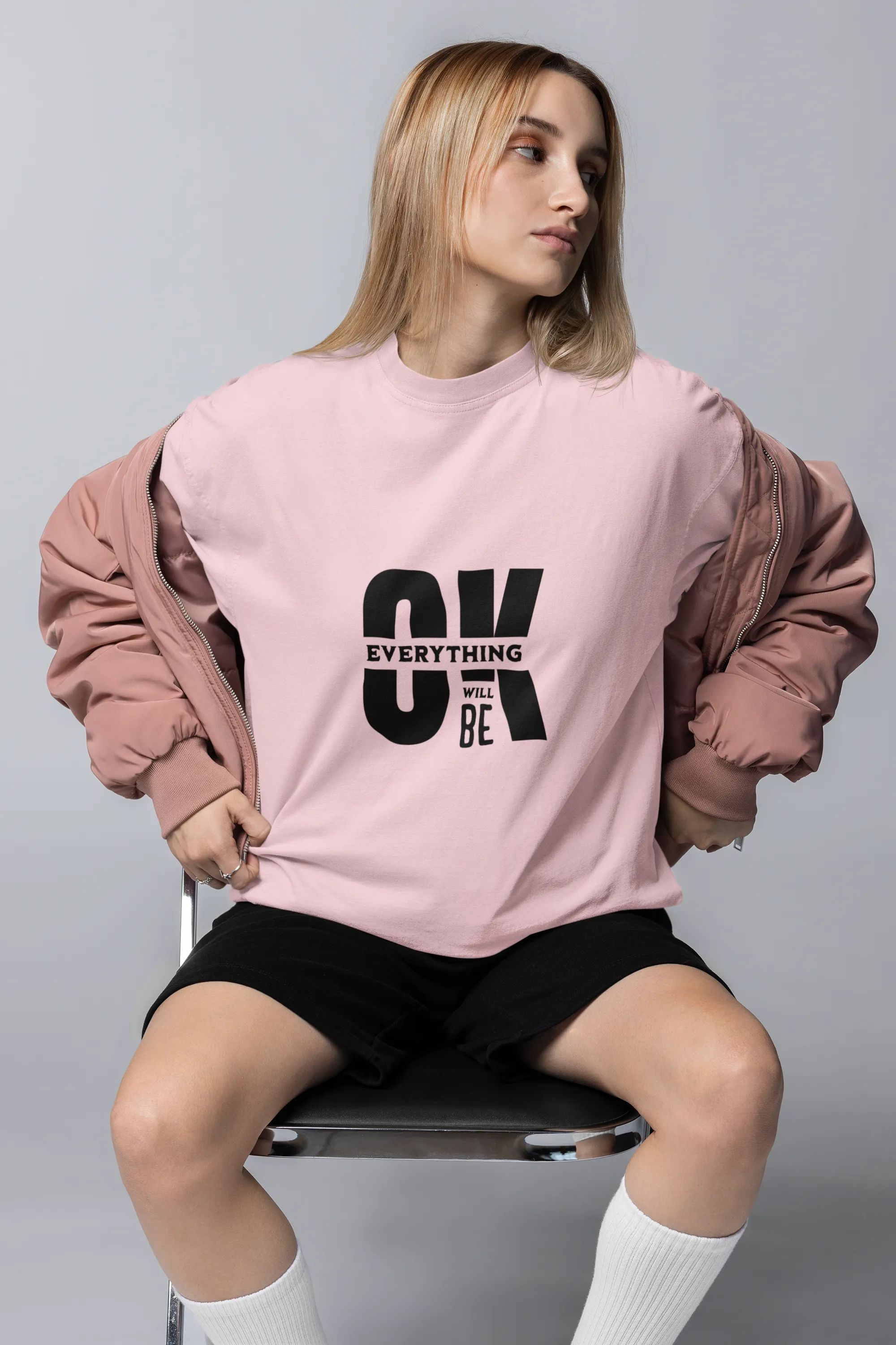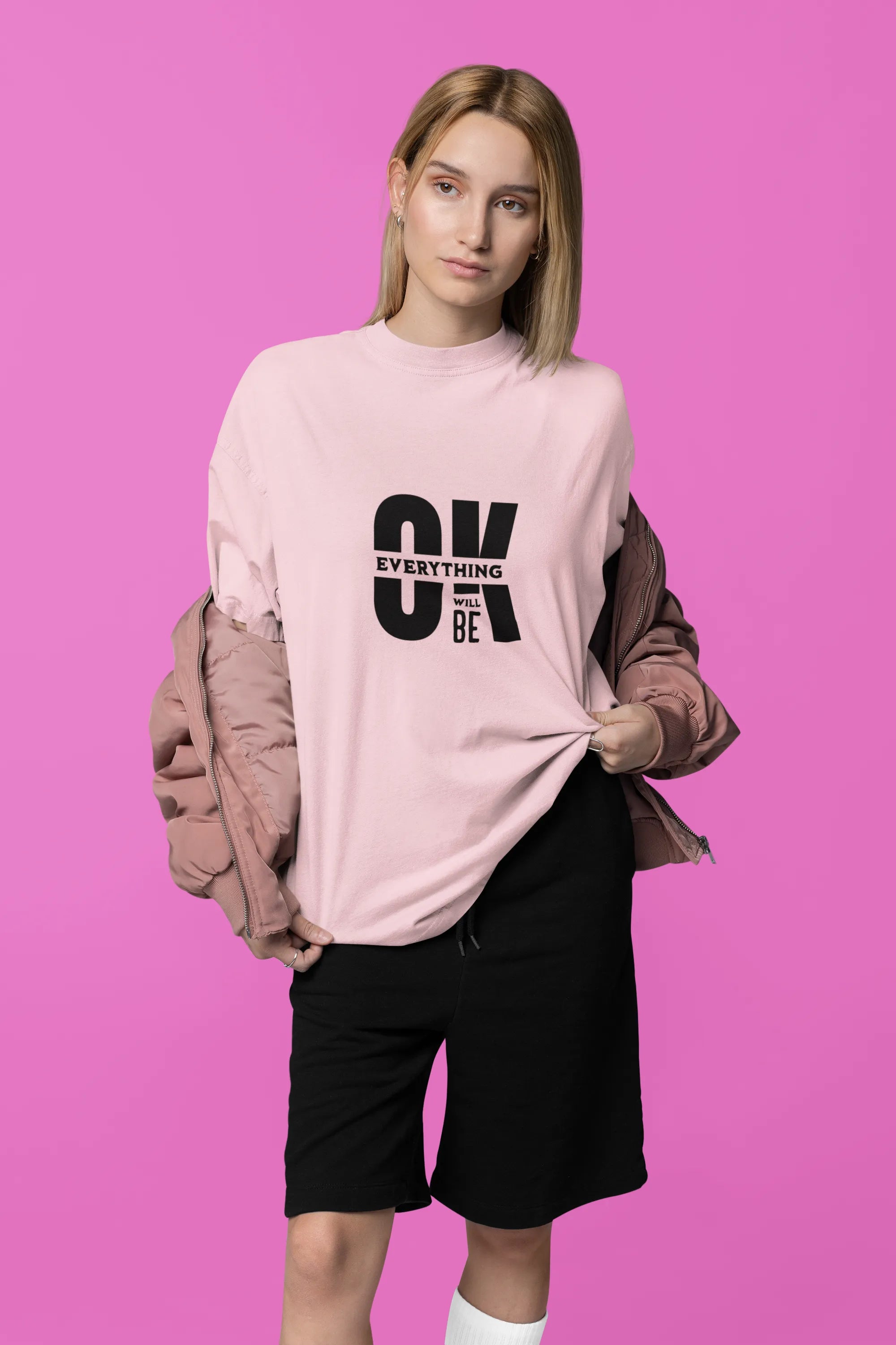 This T-shirt design features the uplifting phrase "Everything Will Be OK" in a bold, handwritten font. Surrounded by soft, calming colors and subtle doodles, it radiates positivity and comfort, making it perfect for spreading hope and good vibes.
