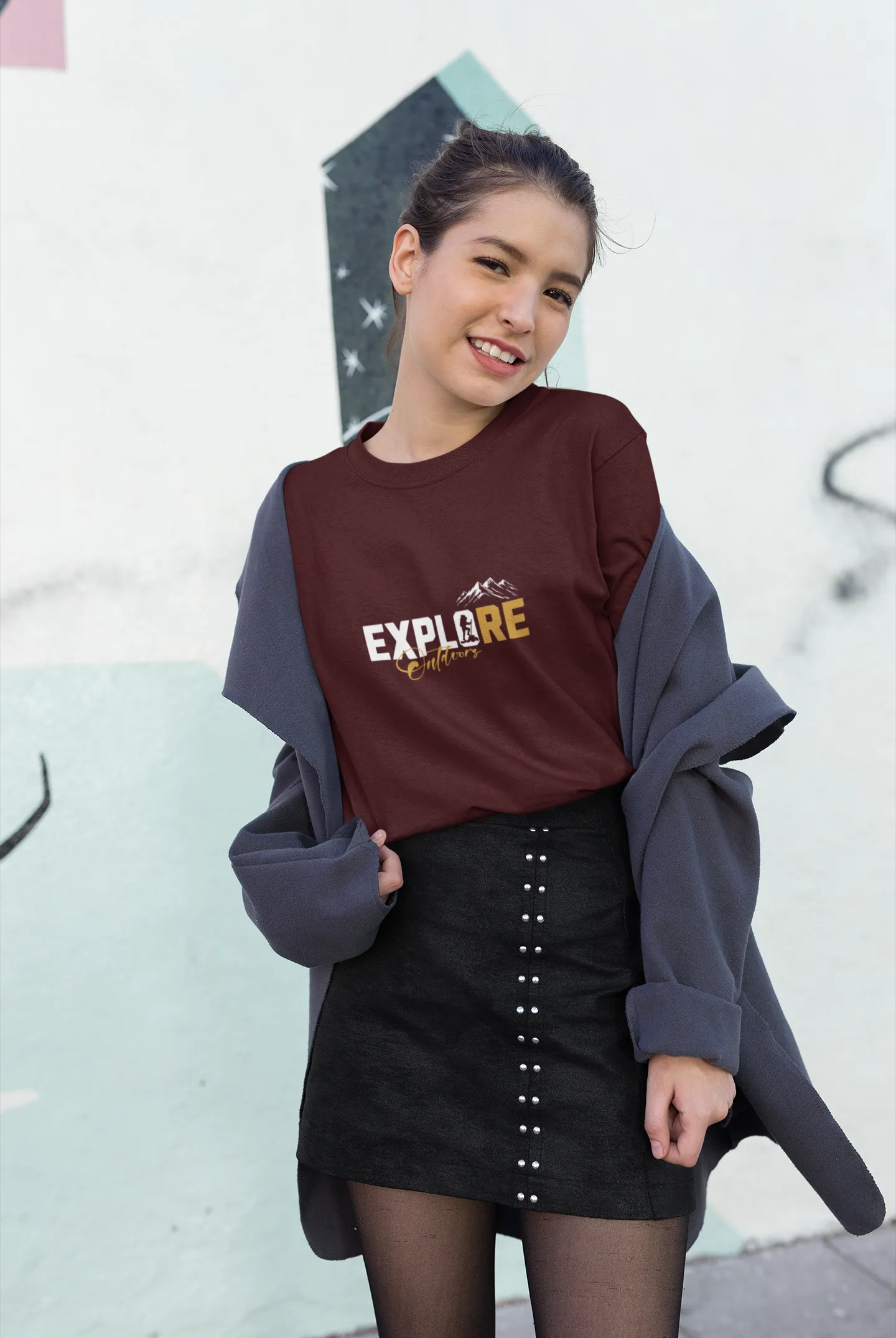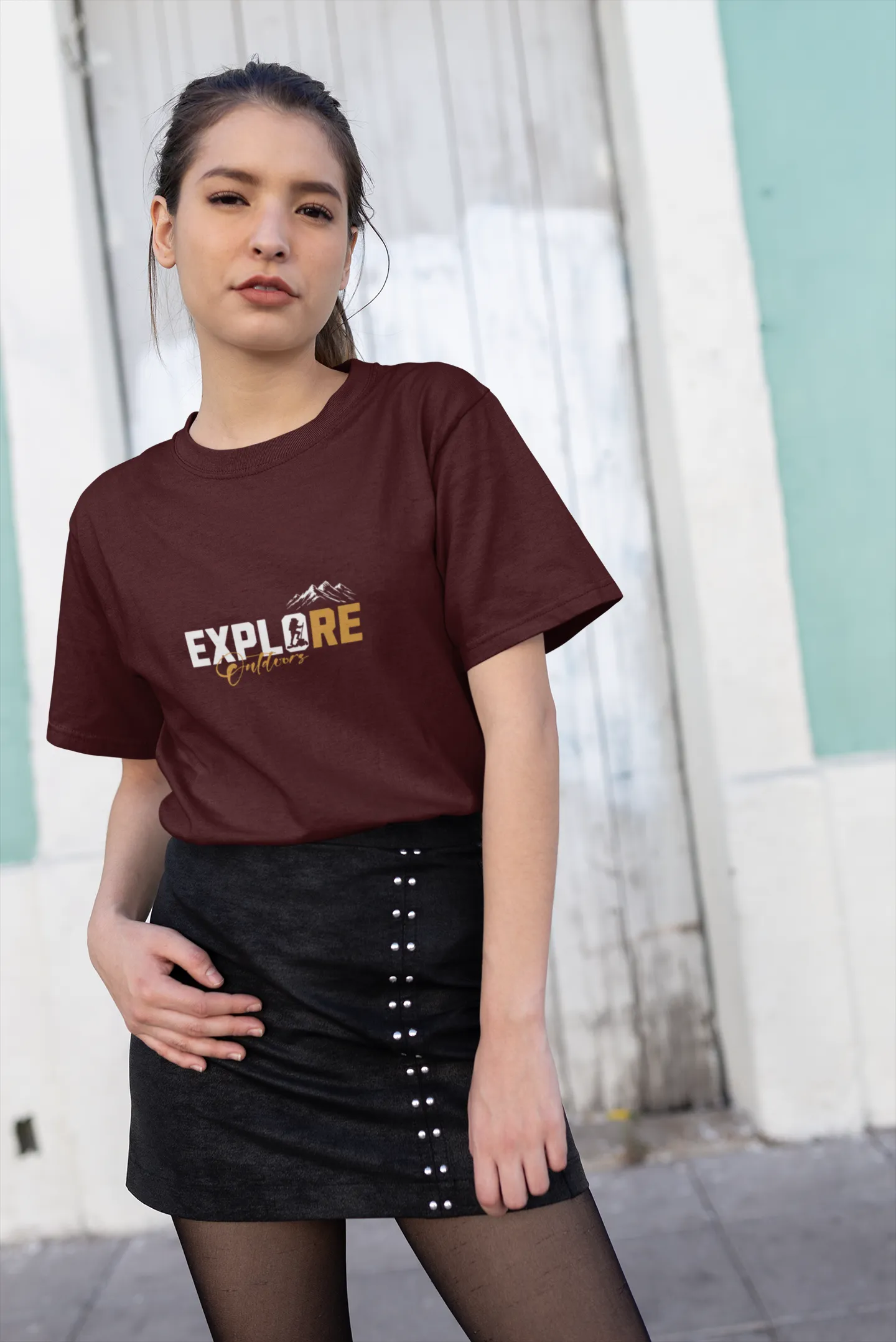 Embrace adventure with this bold 'Explore Outdoors' t-shirt design, perfect for nature lovers and wanderers. Featuring scenic elements and a rugged vibe, it's ideal for hikes, camping trips, or everyday exploration spirit.