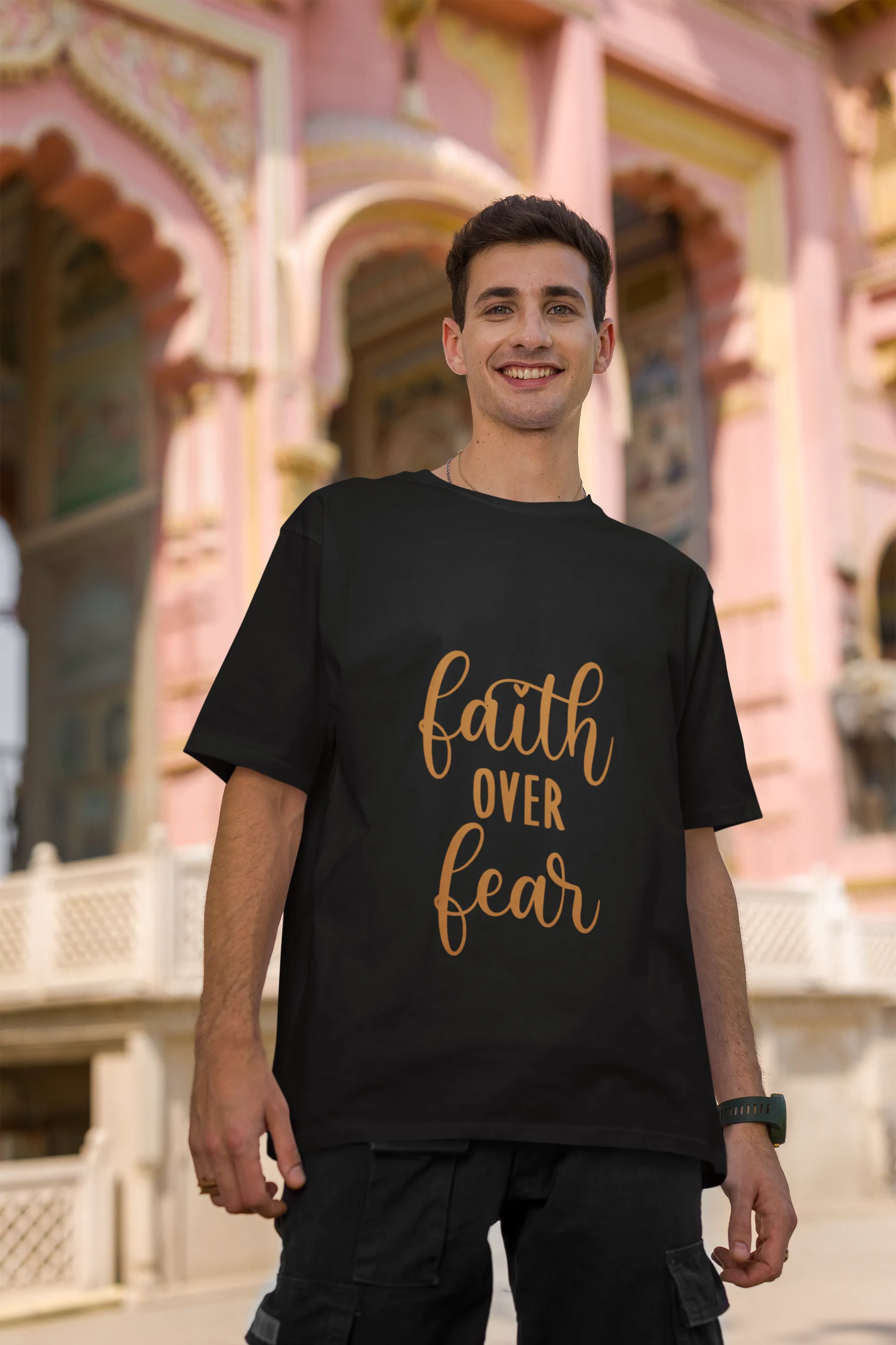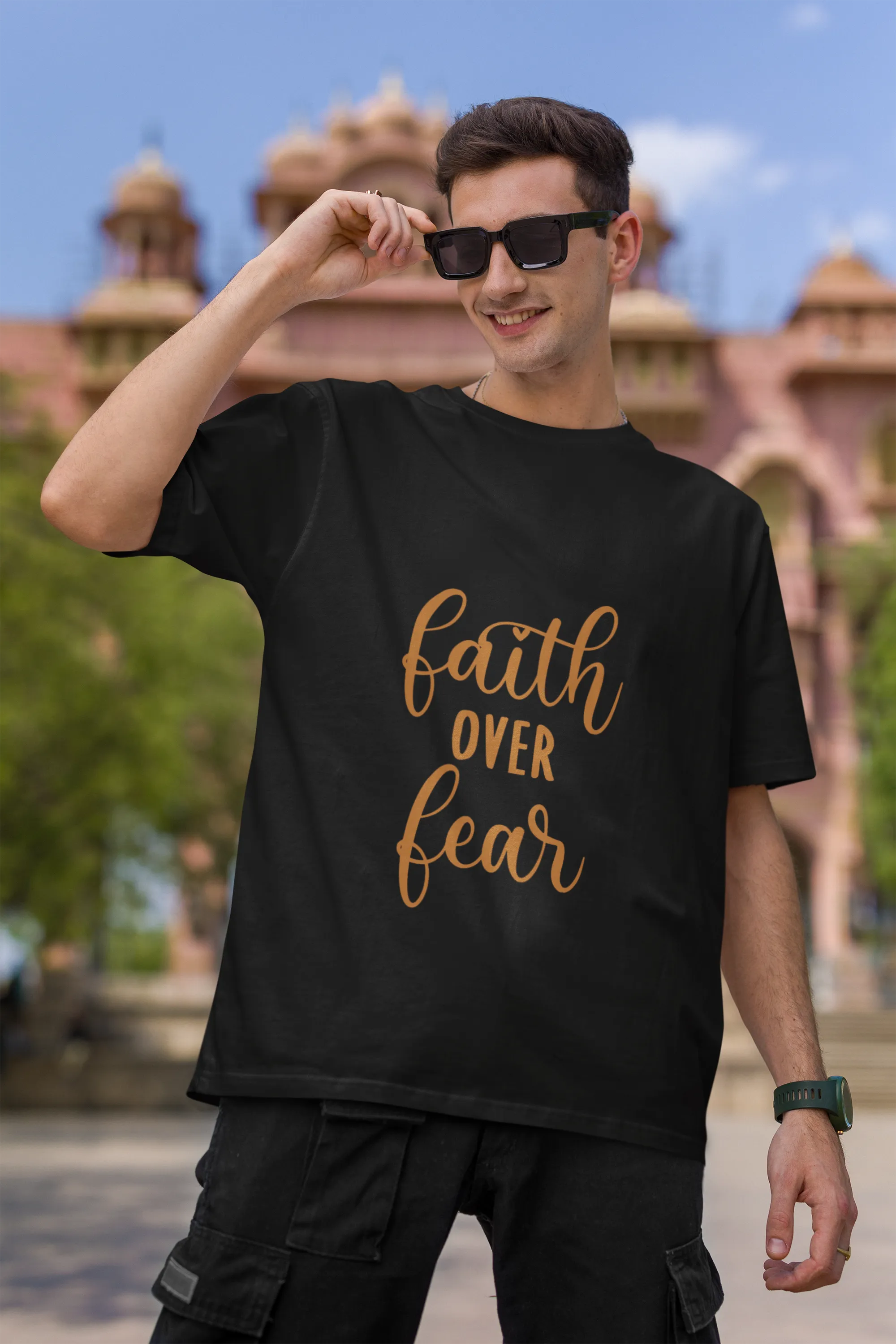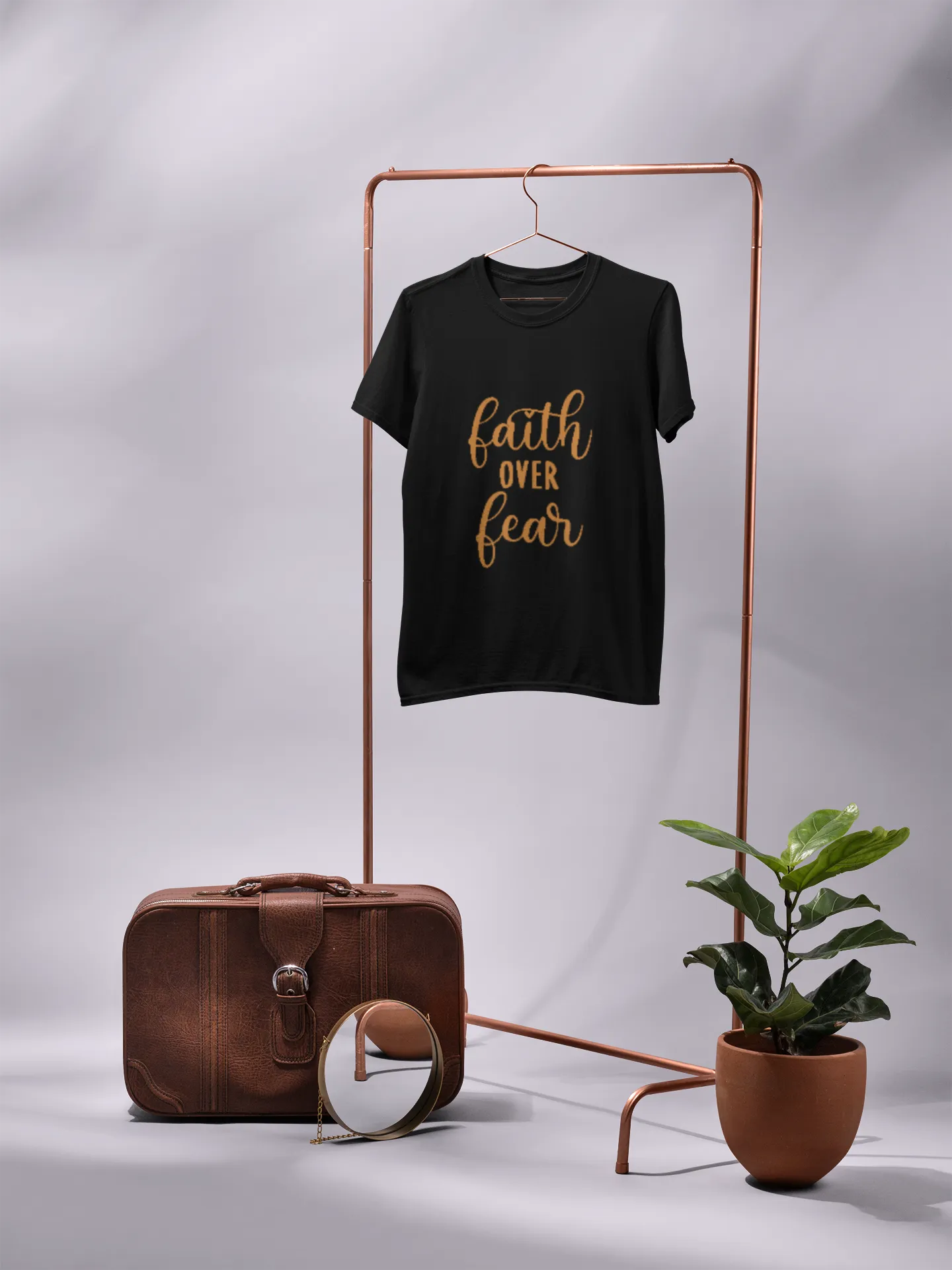 A minimal yet powerful T-shirt design featuring "Faith Over Fear" in bold typography. The words are elegantly arranged with a cross or heartbeat symbol, blending faith and resilience. A subtle, modern color palette ensures a stylish and inspiring look.