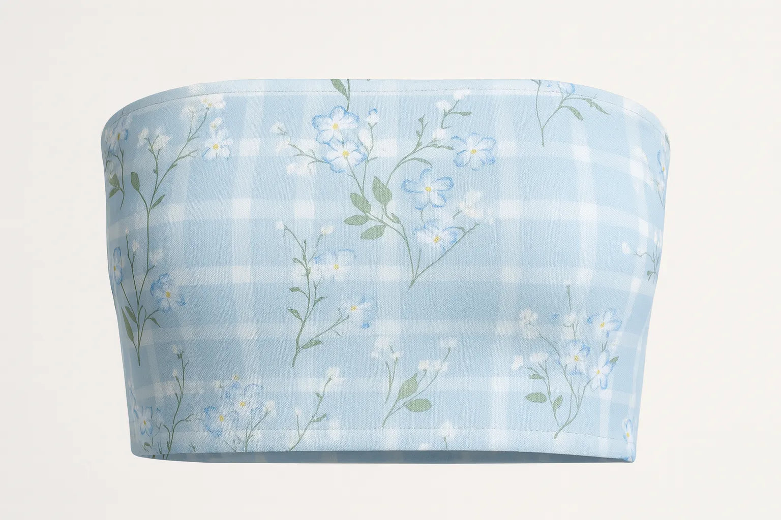 A stylish tube top featuring delicate flower motifs, designed for everyday chic. Its regular fit provides comfort, making it a versatile piece for pairing with skirts, jeans, or layering for fashionable summer looks.