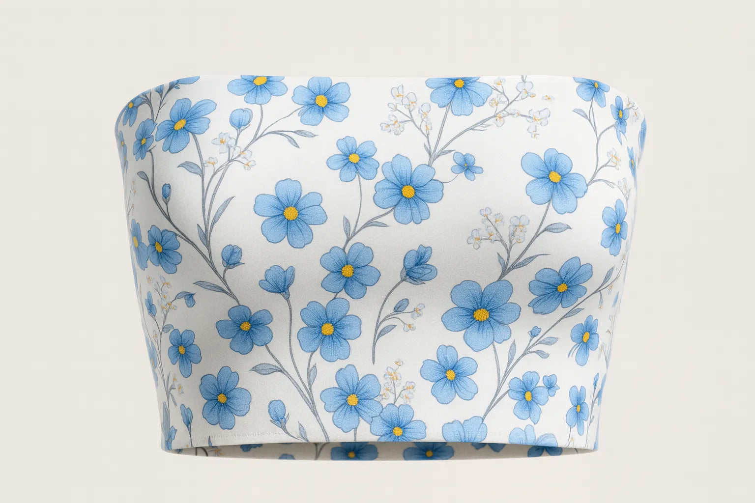 A stylish tube top featuring delicate flower motifs, designed for everyday chic. Its regular fit provides comfort, making it a versatile piece for pairing with skirts, jeans, or layering for fashionable summer looks.