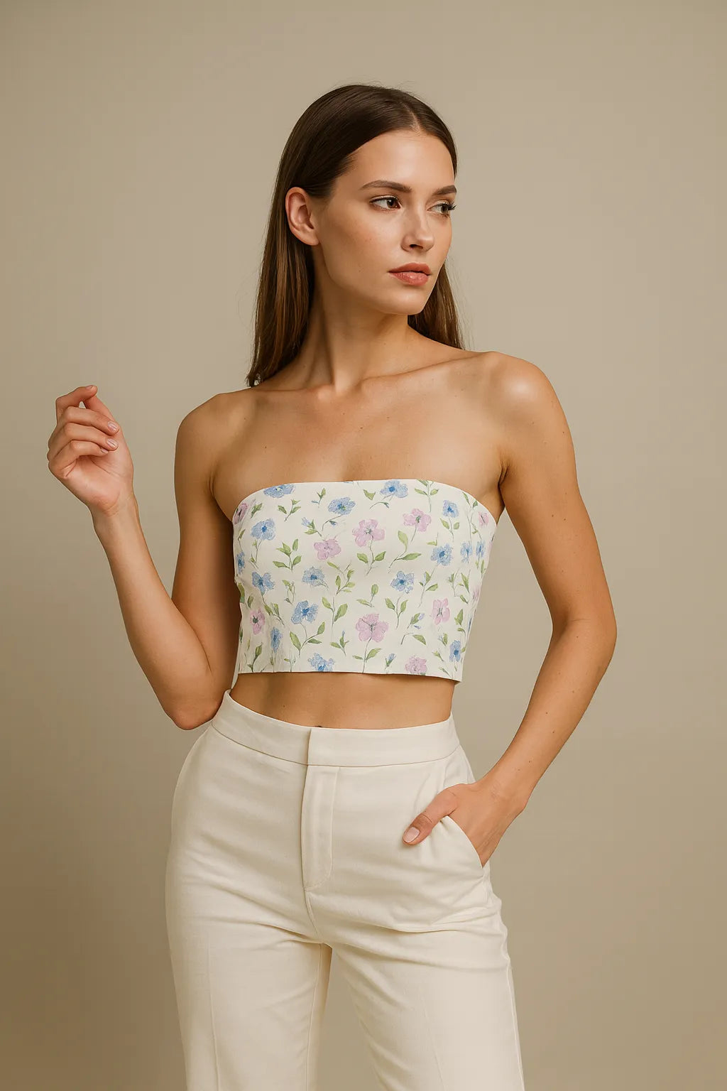 Floral-patterned tube top on a white background