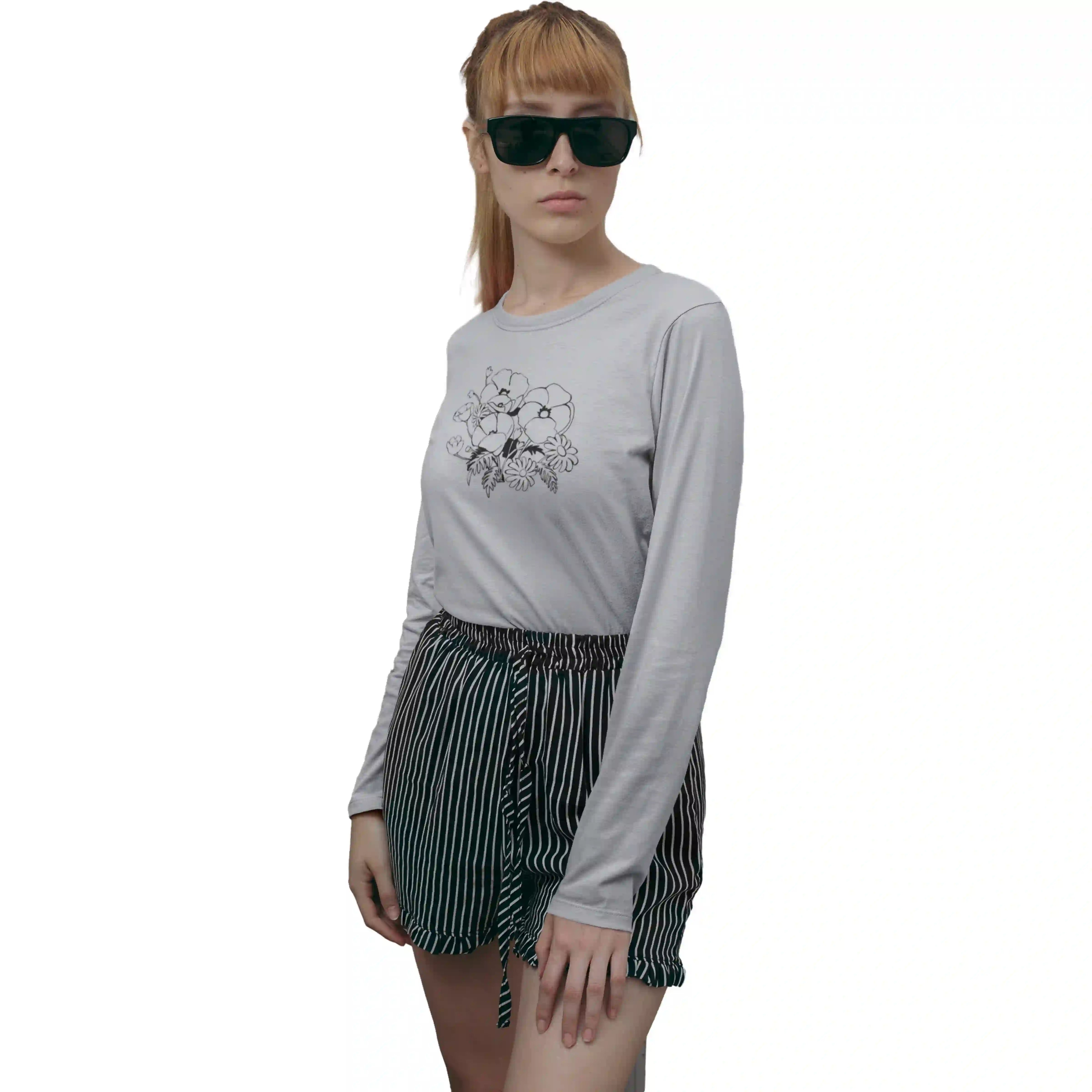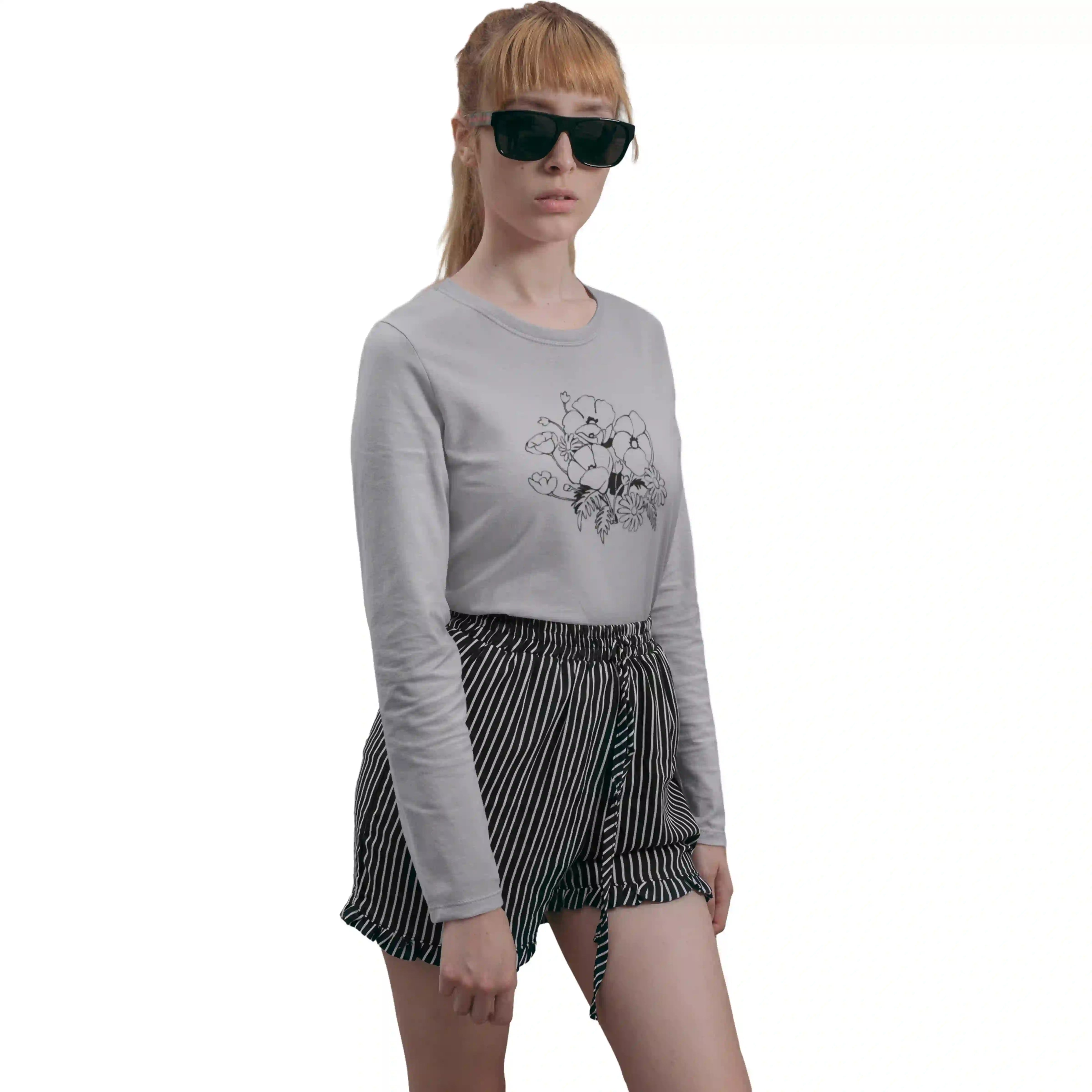 Embrace subtle beauty with this grey melange full-sleeve T-shirt featuring a classy floral-themed “Flower Level” design. Comfortable with a round neck and regular fit, it blends soft femininity with modern casual fashion.