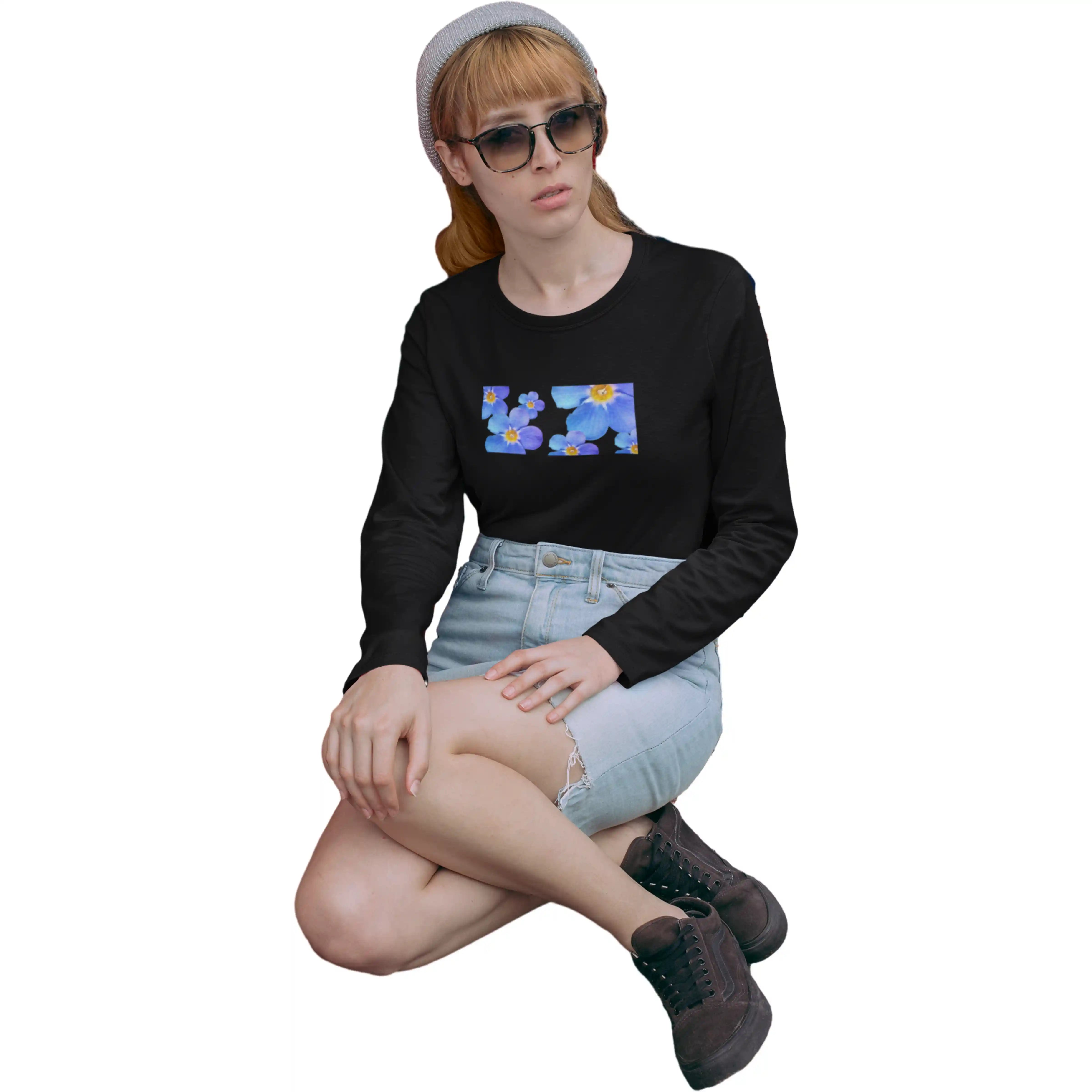 Add soft elegance to your style with this black full-sleeve T-shirt featuring a graceful floral print. Designed with a round neck and regular fit, it offers a balance of beauty and comfort for a chic daily look