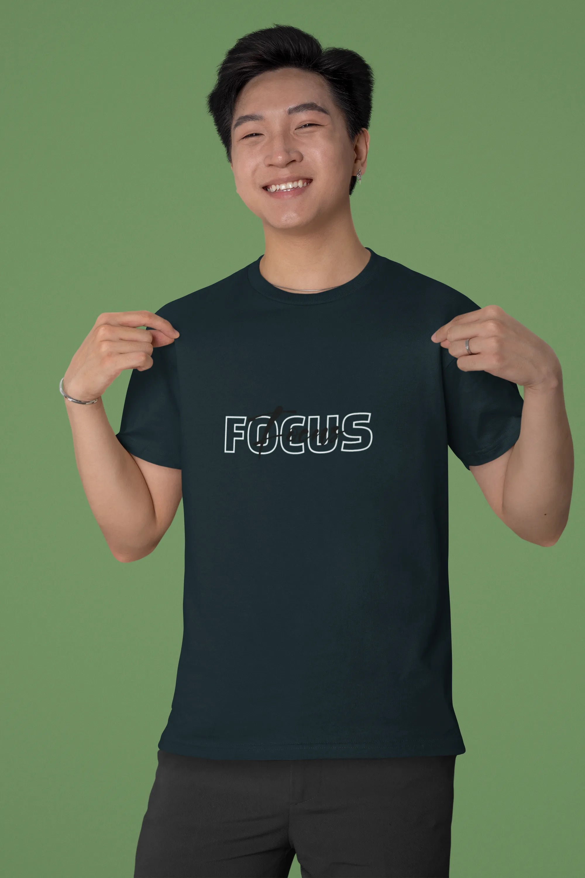 A sleek and motivational T-shirt design featuring the word “Focus” in sharp, minimalist typography. Accented with clean lines, target icons, or spotlight effects, it symbolizes clarity, determination, and purpose — perfect for go-getters who stay driven and locked on their goals.