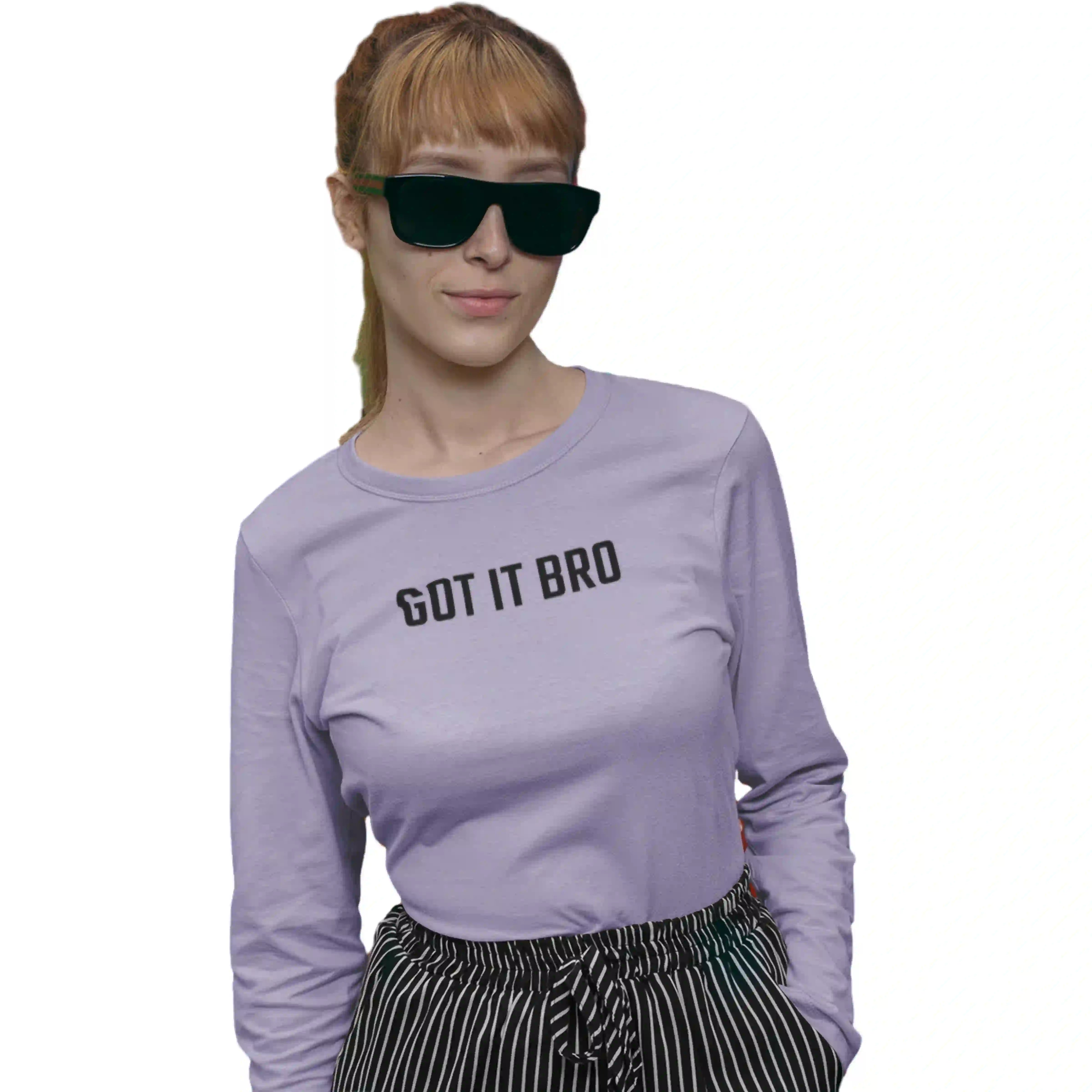 Fun and fearless — the 'Got It Bro' lavender T-shirt adds a playful twist to your everyday casual look.