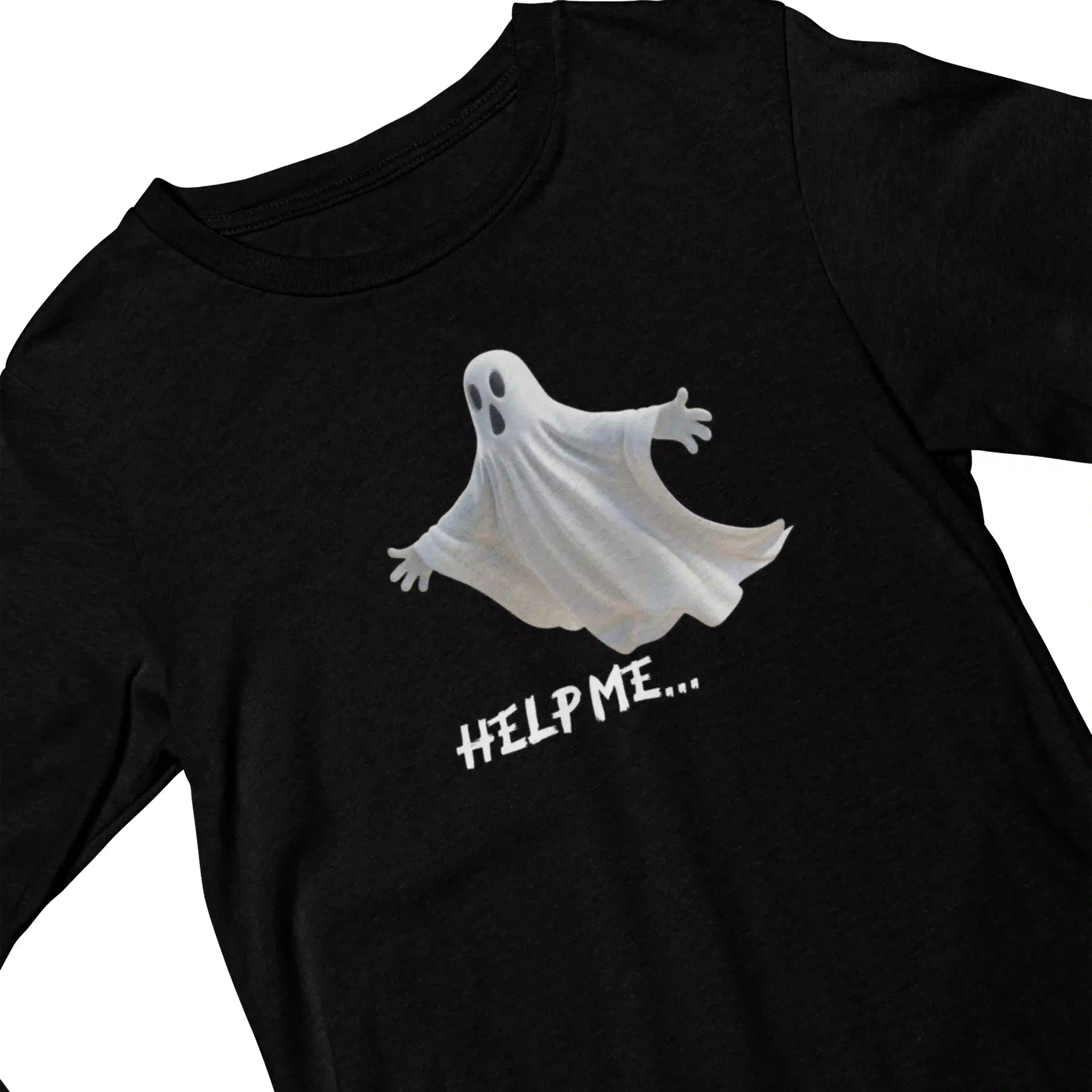 Dare to stand out with the 'Help Me' black T-shirt — a quirky, edgy design perfect for those who love bold statements.
