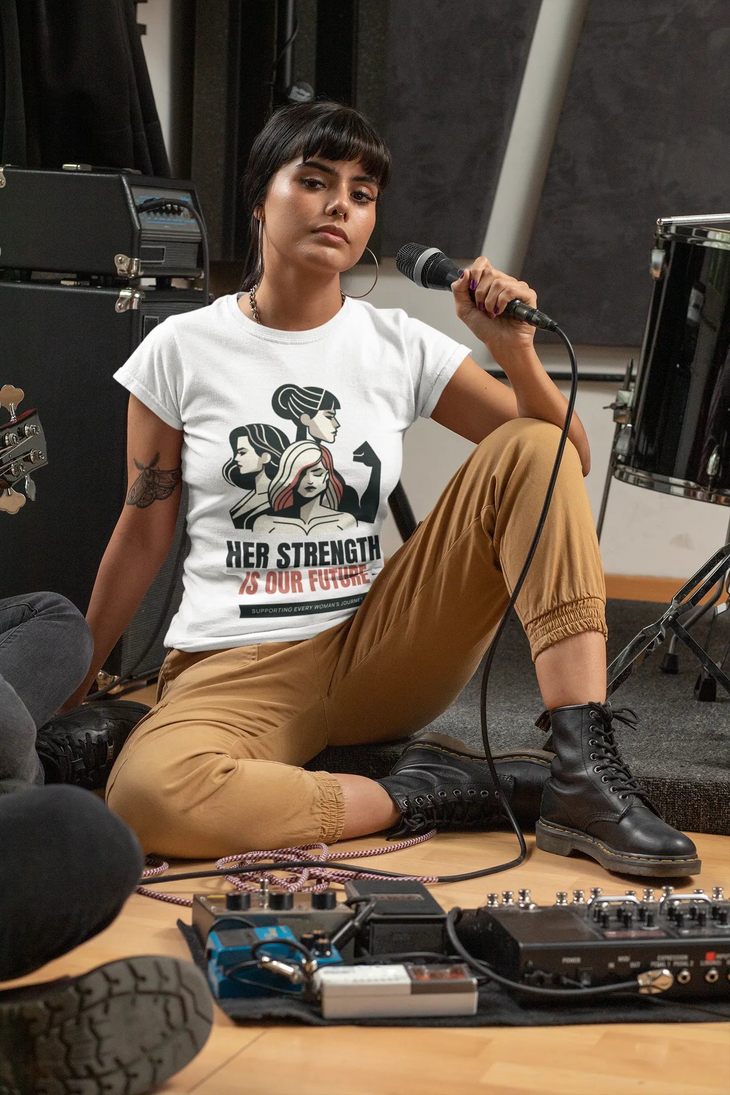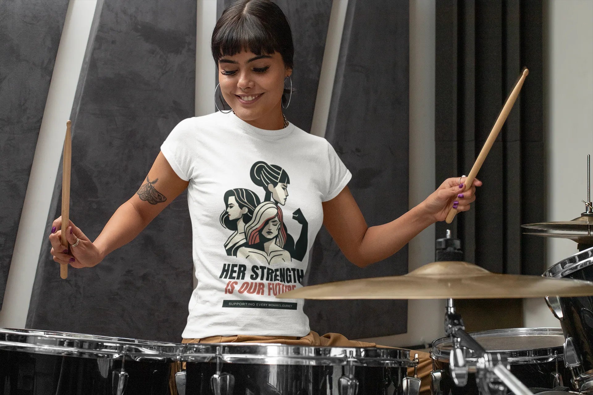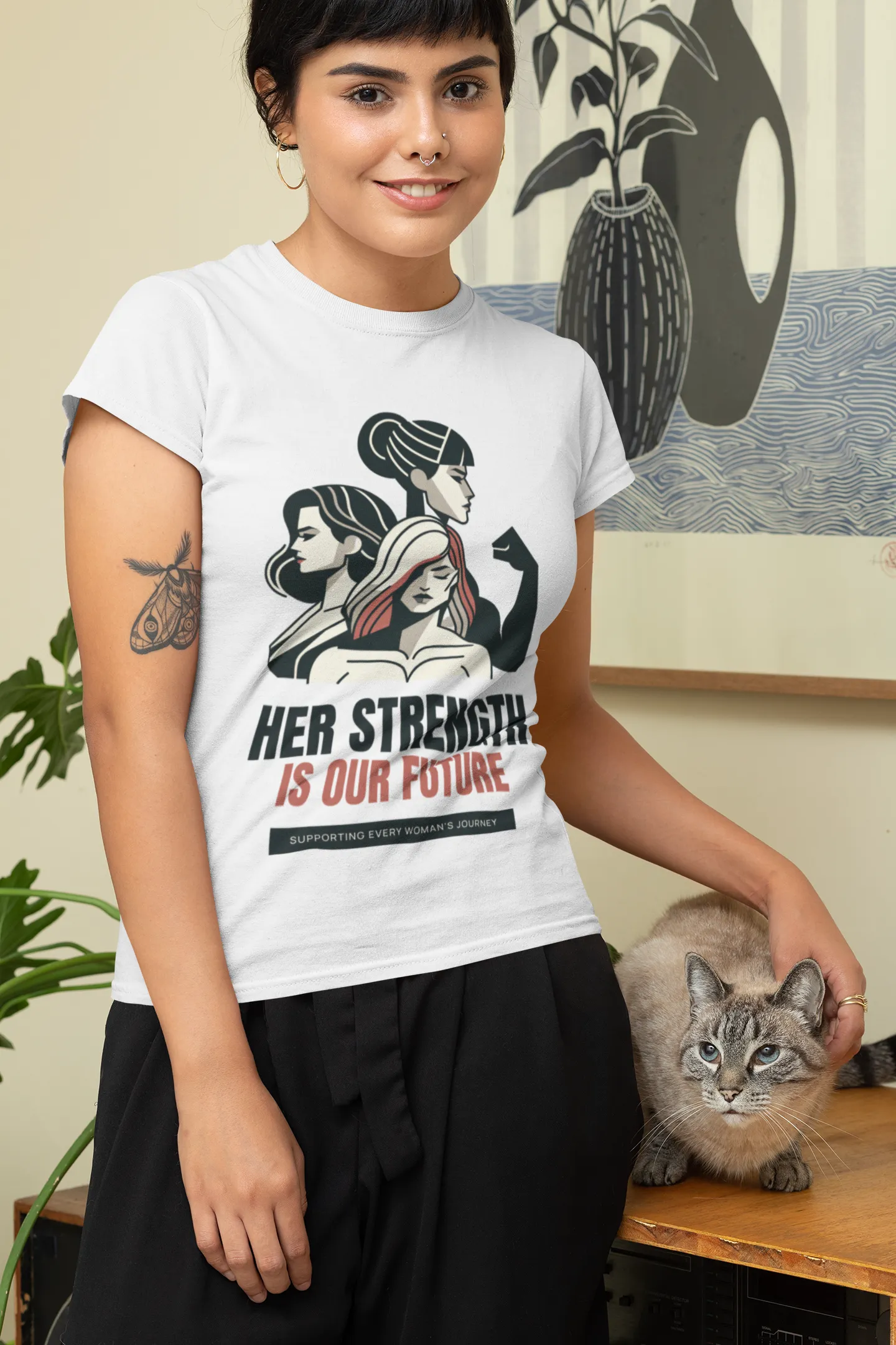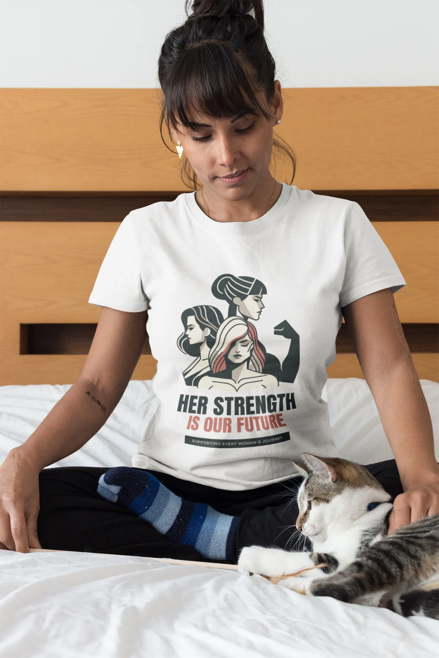 A powerful and inspiring T-shirt design featuring the phrase “Her Strength Is Our Future” in bold, impactful typography. Accented with empowering icons like raised fists, stars, or feminine silhouettes, it celebrates women’s resilience and leadership — perfect for spreading a message of hope, unity, and empowerment.