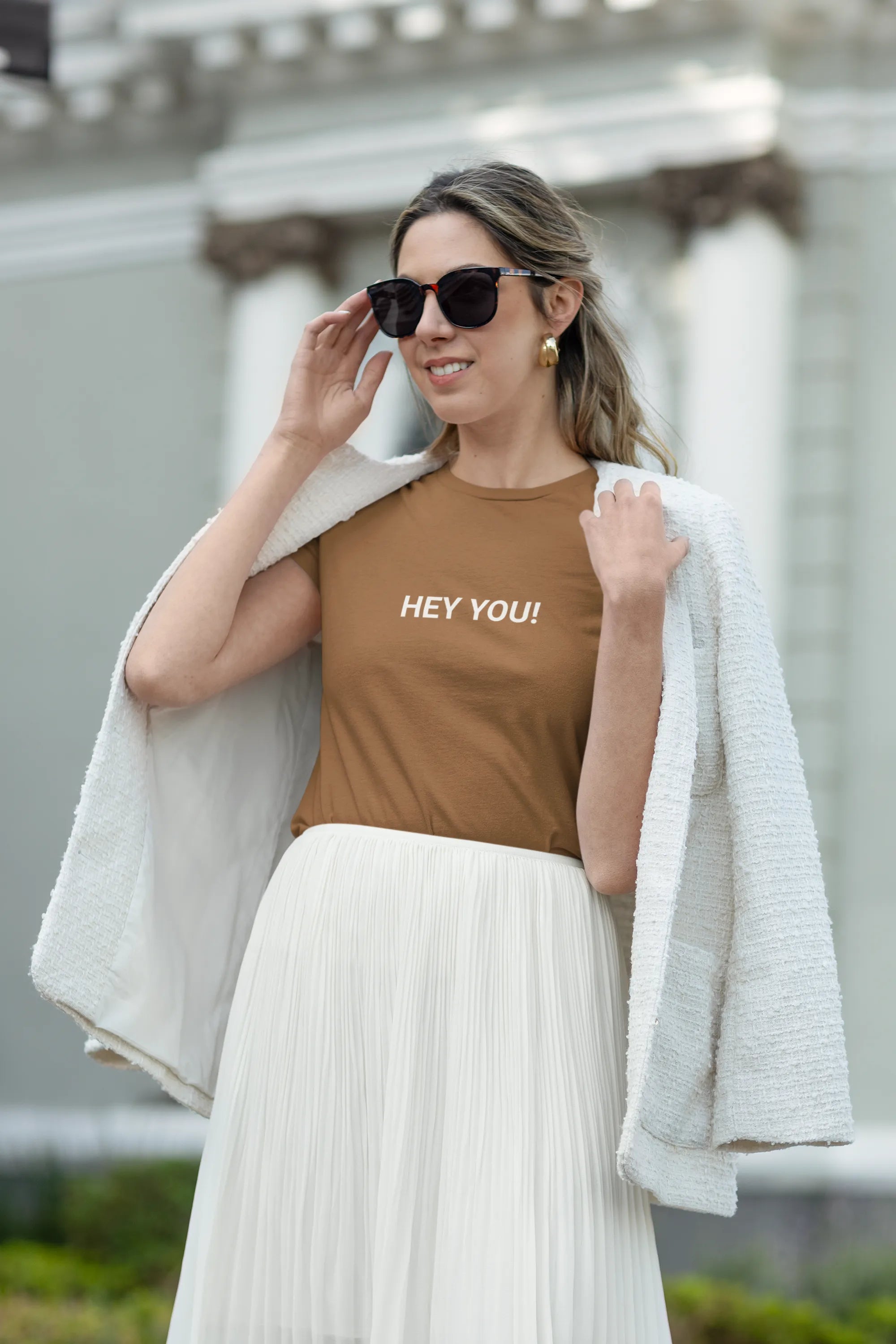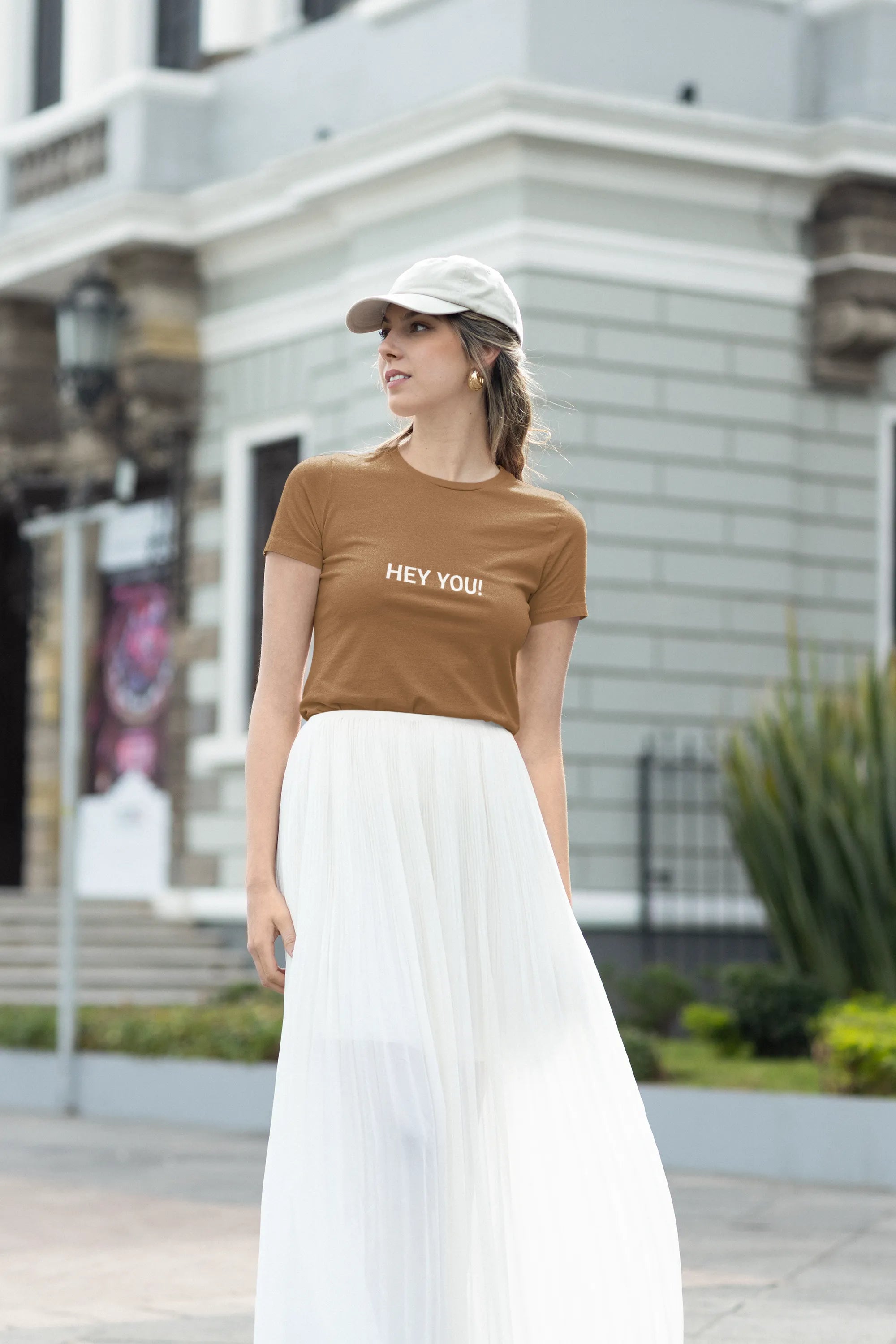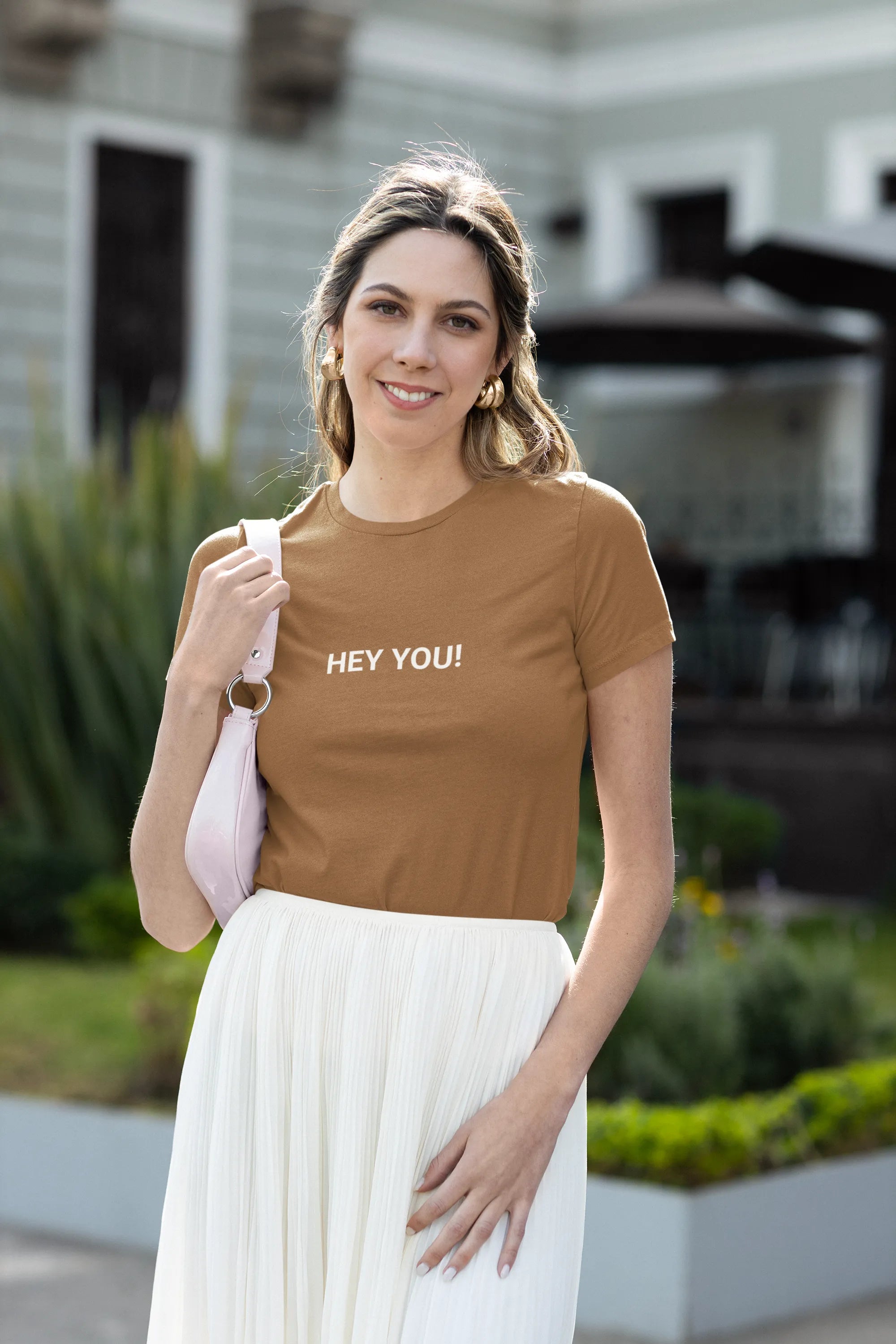 Turn heads with this bold "Hey You" t-shirt. Simple yet attention-grabbing, it sparks curiosity and connection. With its playful tone and stylish design, it’s perfect for making a fun, confident statement wherever you go. Let your tee do the talking!