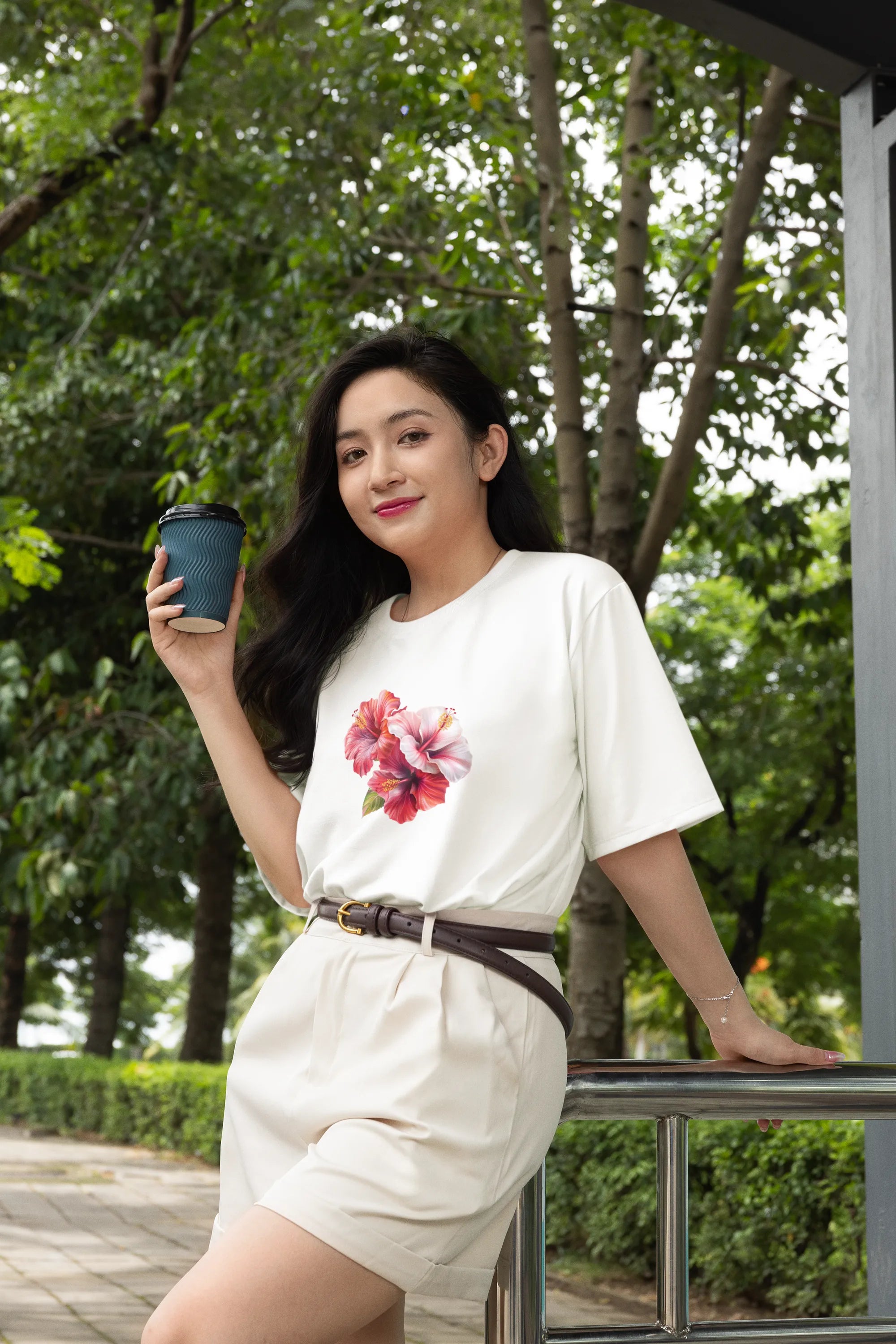 This vibrant t-shirt design features a bold hibiscus flower, symbolizing beauty and tropical vibes. With intricate petal details and a splash of color, it brings a refreshing, island-inspired aesthetic perfect for casual wear and sunny day outings.