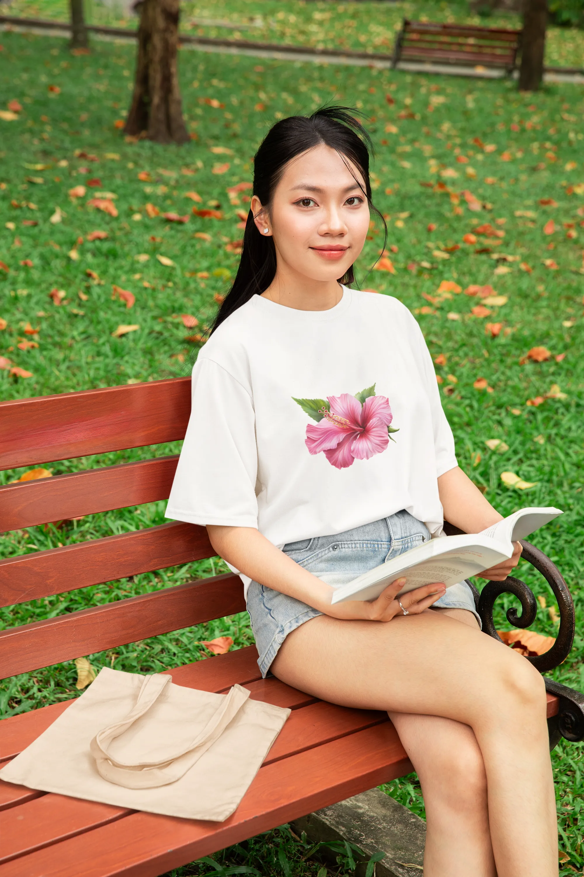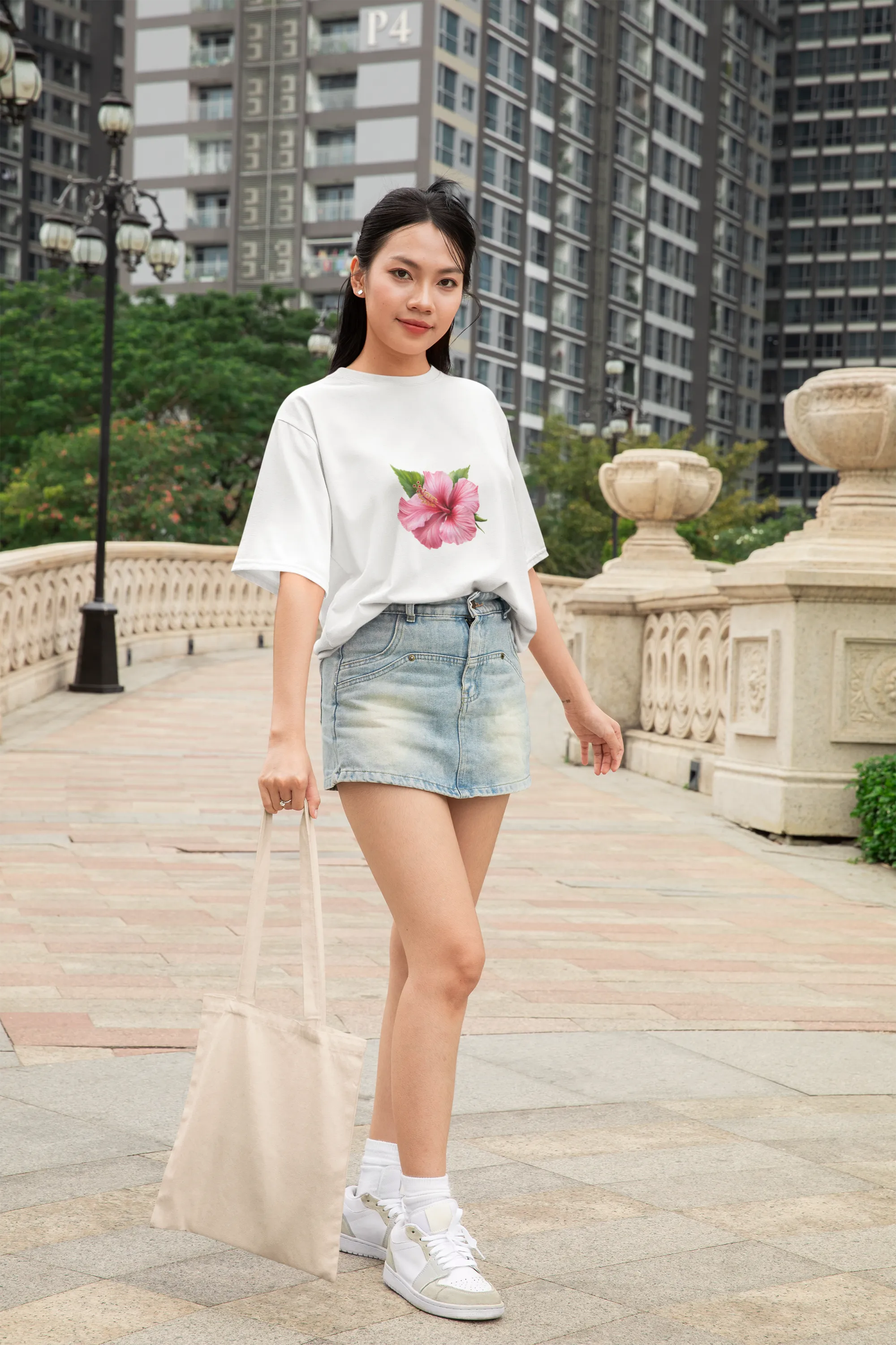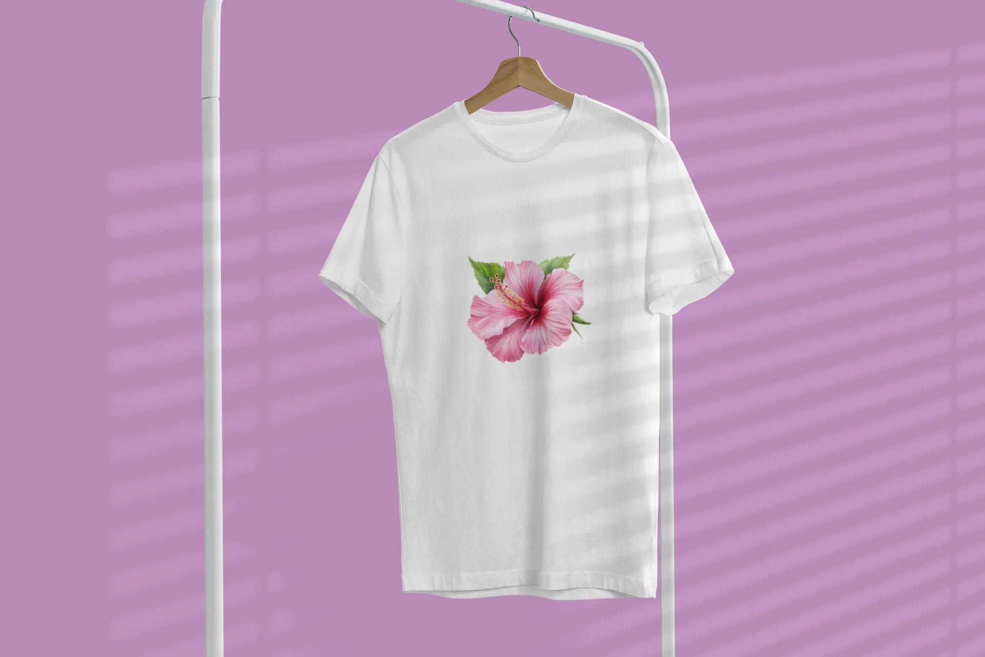 This vibrant t-shirt design features a bold hibiscus flower, symbolizing beauty and tropical vibes. With intricate petal details and a splash of color, it brings a refreshing, island-inspired aesthetic perfect for casual wear and sunny day outings.