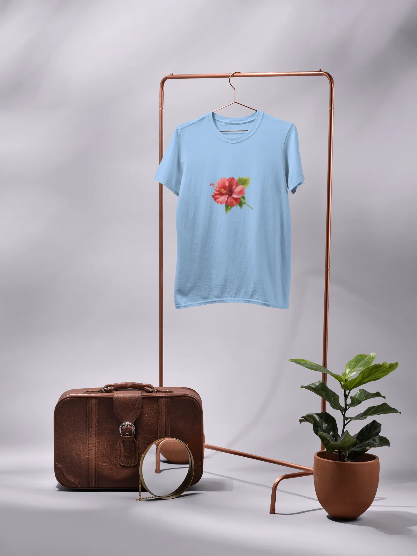 This vibrant t-shirt design features a bold hibiscus flower, symbolizing beauty and tropical vibes. With intricate petal details and a splash of color, it brings a refreshing, island-inspired aesthetic perfect for casual wear and sunny day outings.