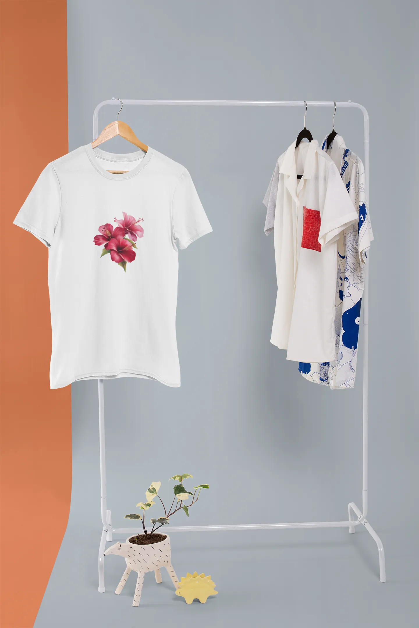 This vibrant t-shirt design features a bold hibiscus flower, symbolizing beauty and tropical vibes. With intricate petal details and a splash of color, it brings a refreshing, island-inspired aesthetic perfect for casual wear and sunny day outings.