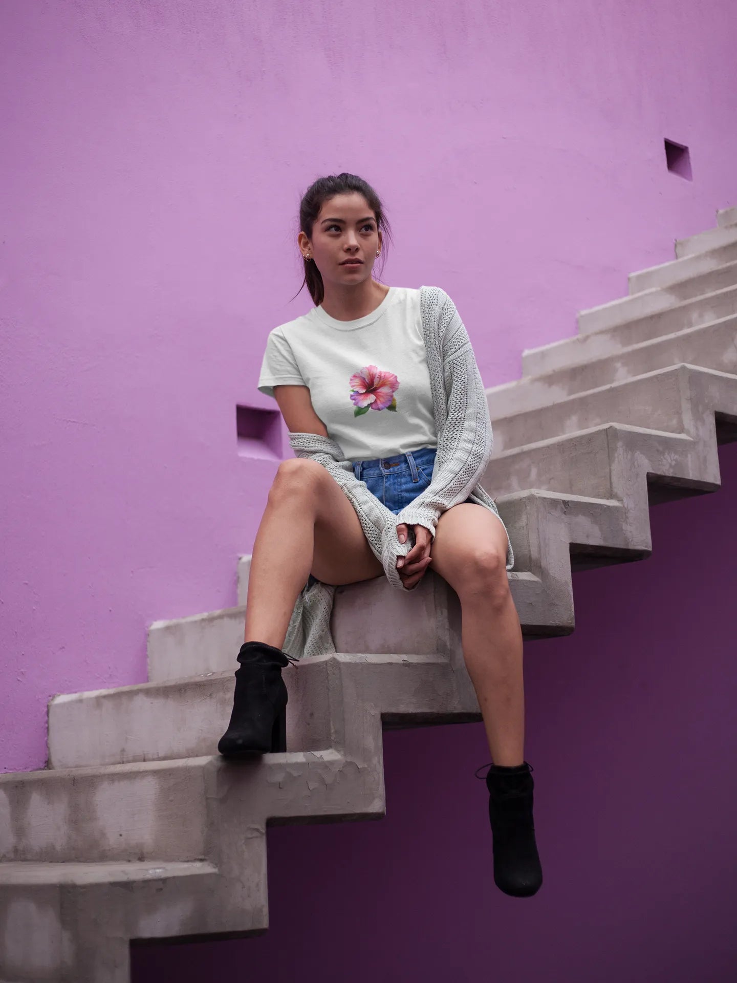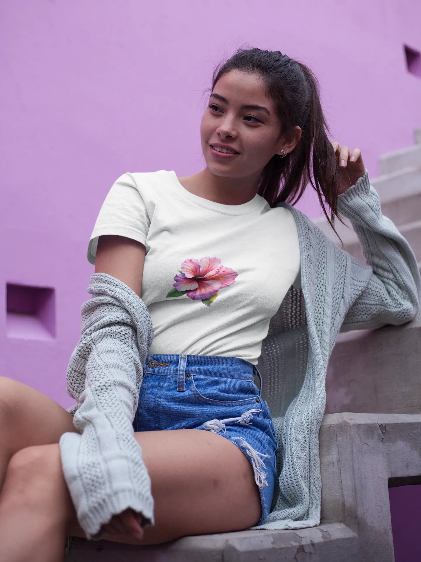 This vibrant t-shirt design features a bold hibiscus flower, symbolizing beauty and tropical vibes. With intricate petal details and a splash of color, it brings a refreshing, island-inspired aesthetic perfect for casual wear and sunny day outings.