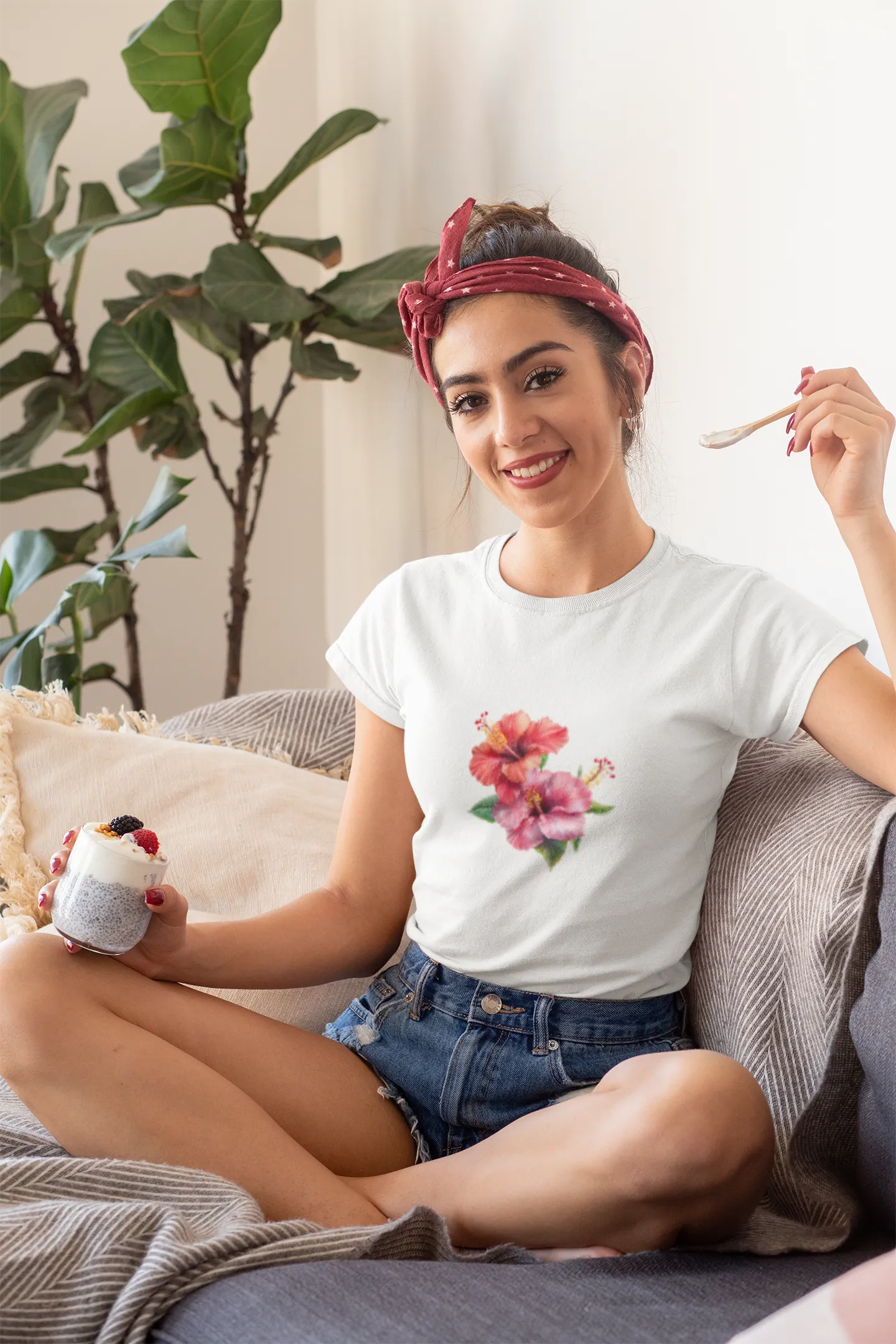 This vibrant t-shirt design features a bold hibiscus flower, symbolizing beauty and tropical vibes. With intricate petal details and a splash of color, it brings a refreshing, island-inspired aesthetic perfect for casual wear and sunny day outings.