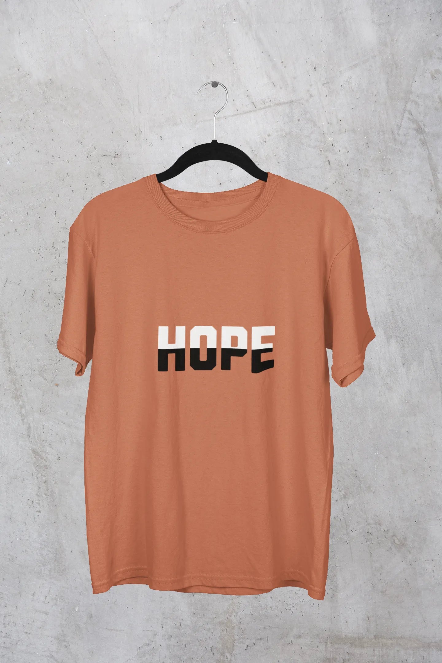 A stylish t-shirt design featuring the word “Hope” in elegant script or bold typography, accented with subtle elements like a rising sun, blooming flower, or heartbeat line. Soft, uplifting colors enhance the positive vibe, making it inspiring and comforting.