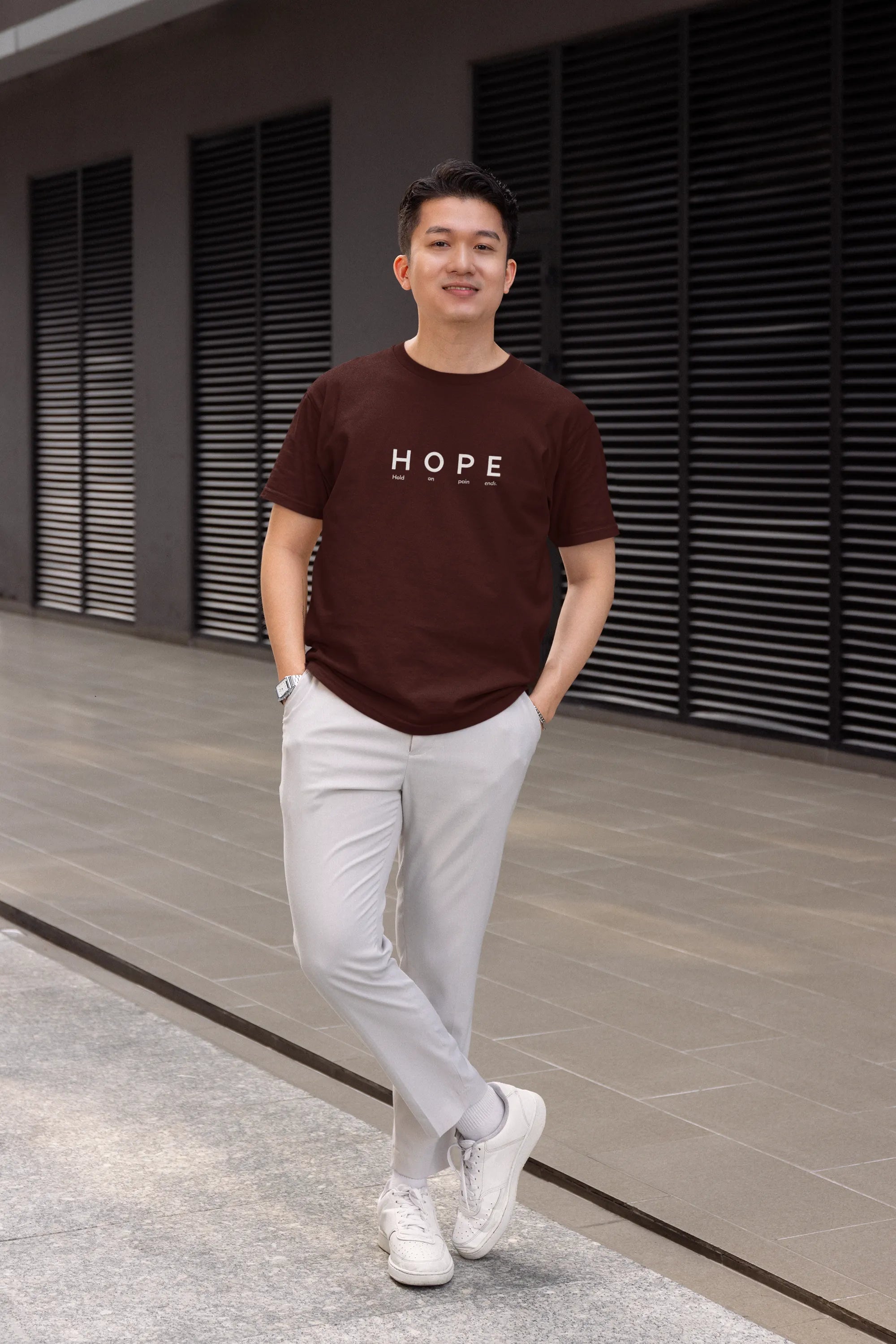 Wear optimism with this simple yet powerful “Hope” tee. A symbol of light in darkness, strength in struggle, and belief in better days. Perfect for hearts that never give up and souls that always find a way forward.