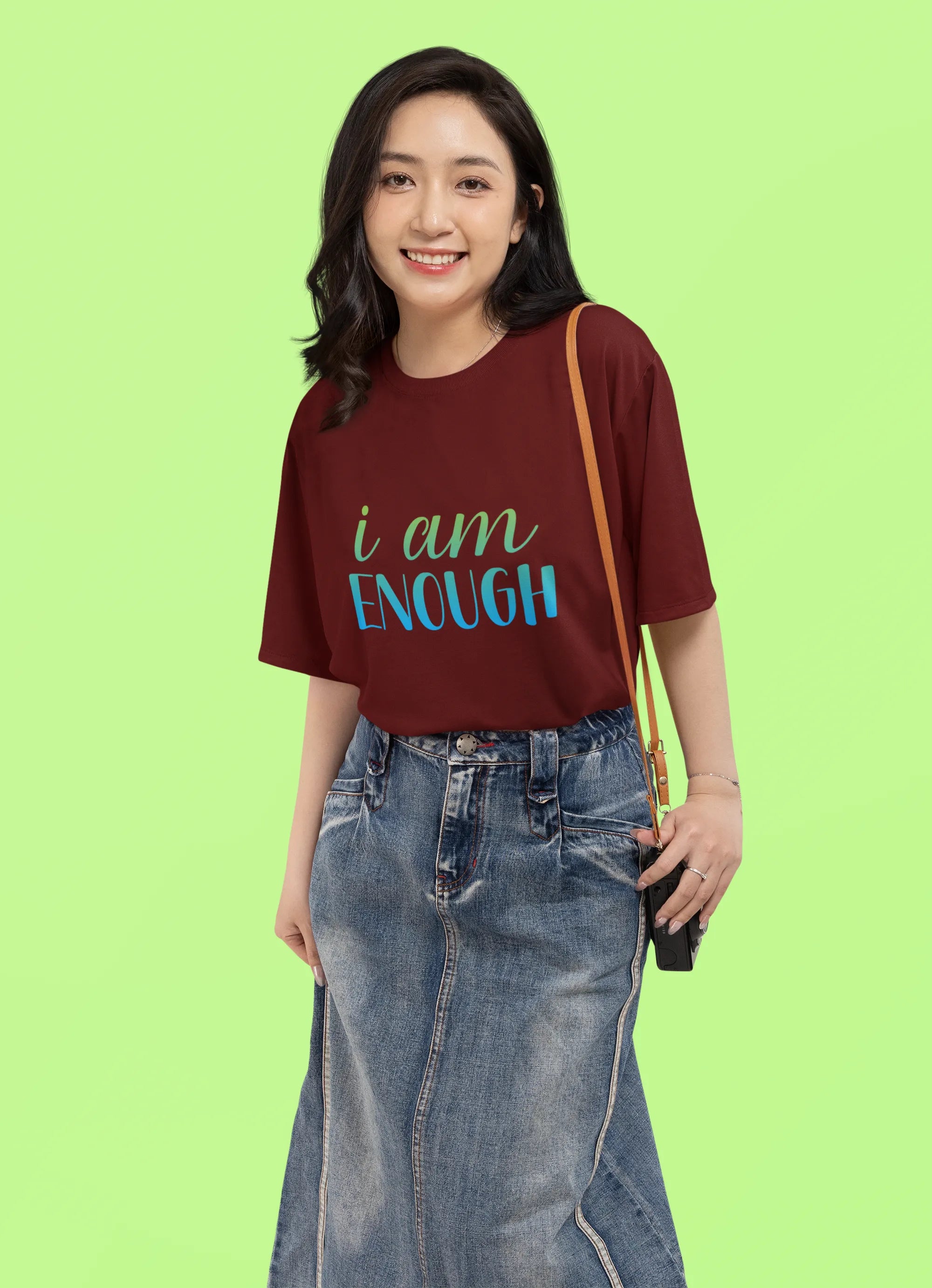 A minimal yet powerful T-shirt design with "I Am Enough" in bold, elegant typography. Enhanced with subtle textures, calming colors, or a modern gradient, it exudes self-love and confidence—perfect for daily wear as a reminder of inner strength and worth.