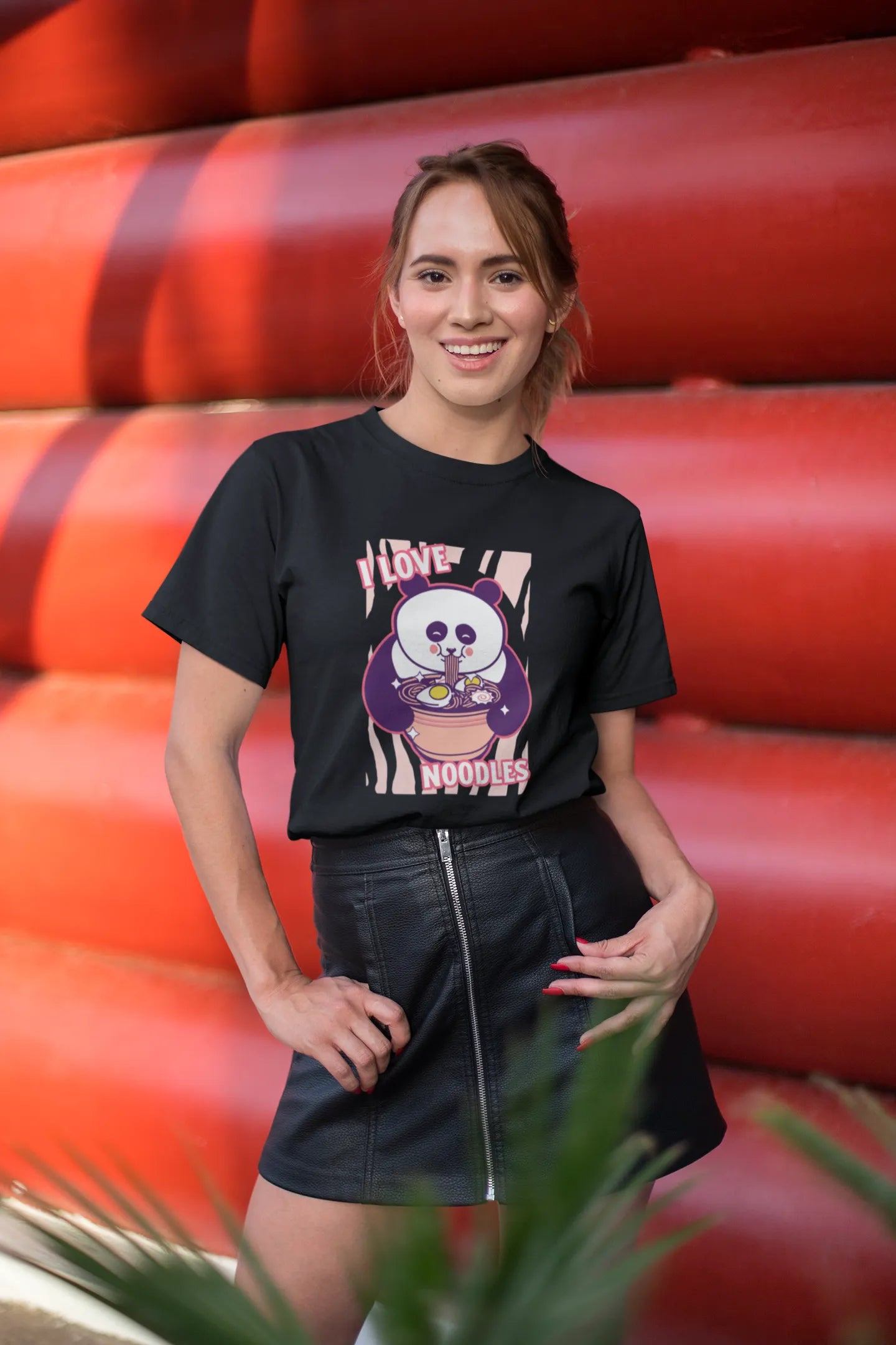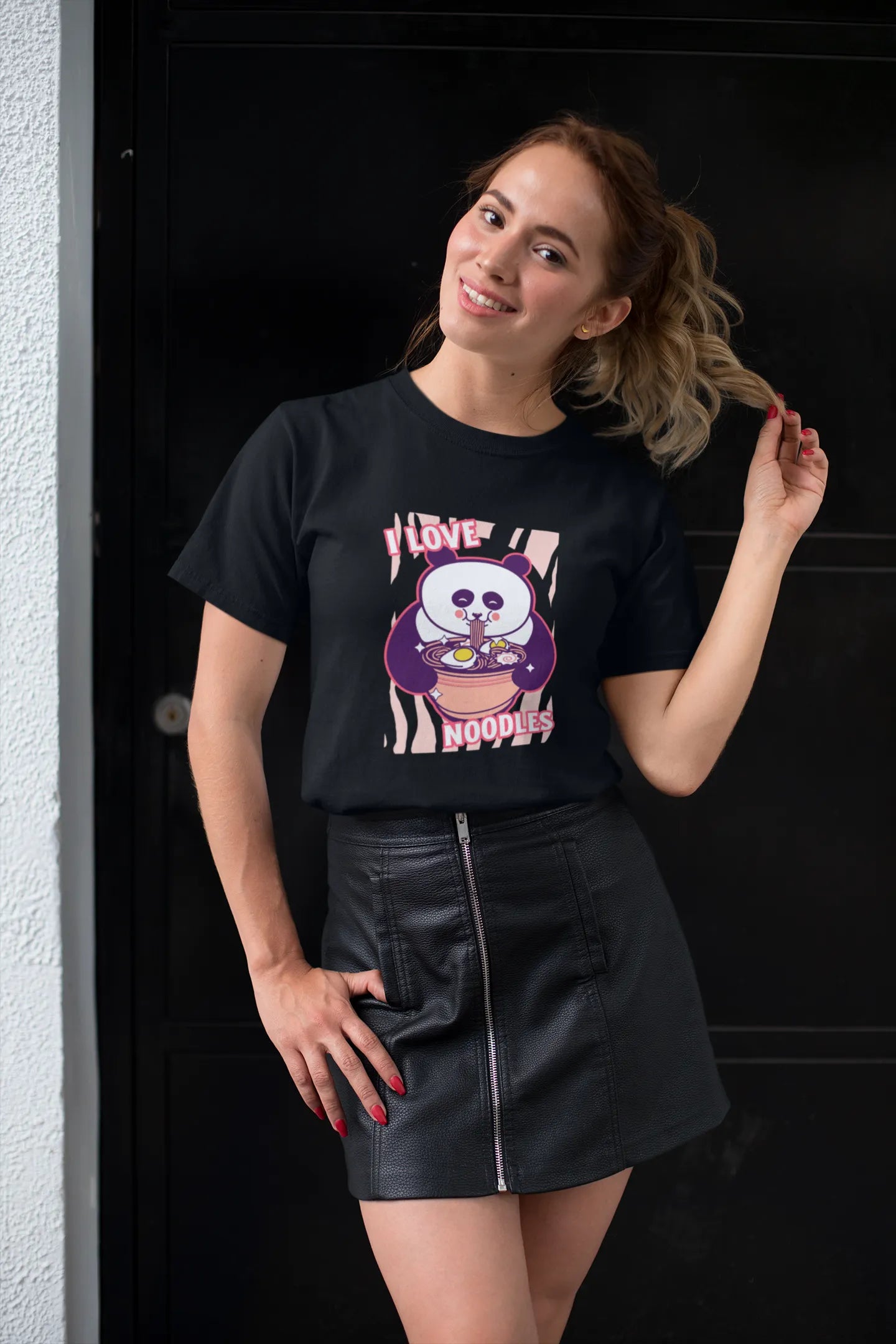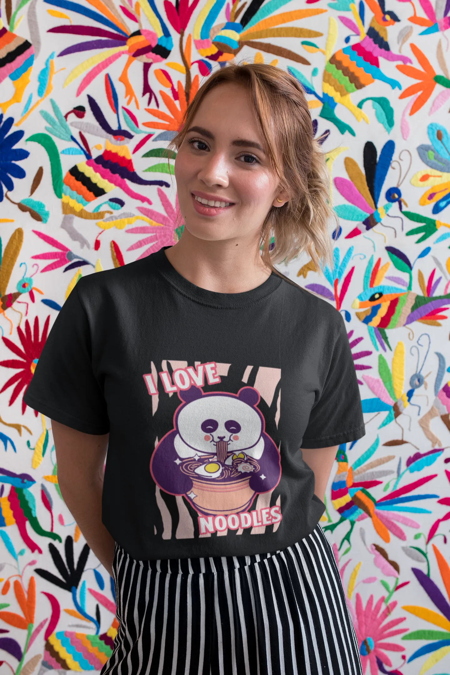 A quirky and fun T-shirt design featuring the phrase “I Love Noodles” in bold, playful typography. Accented with a steaming bowl of noodles, chopsticks, or cute noodle characters, it’s perfect for foodies and ramen lovers who wear their cravings with pride and humor.