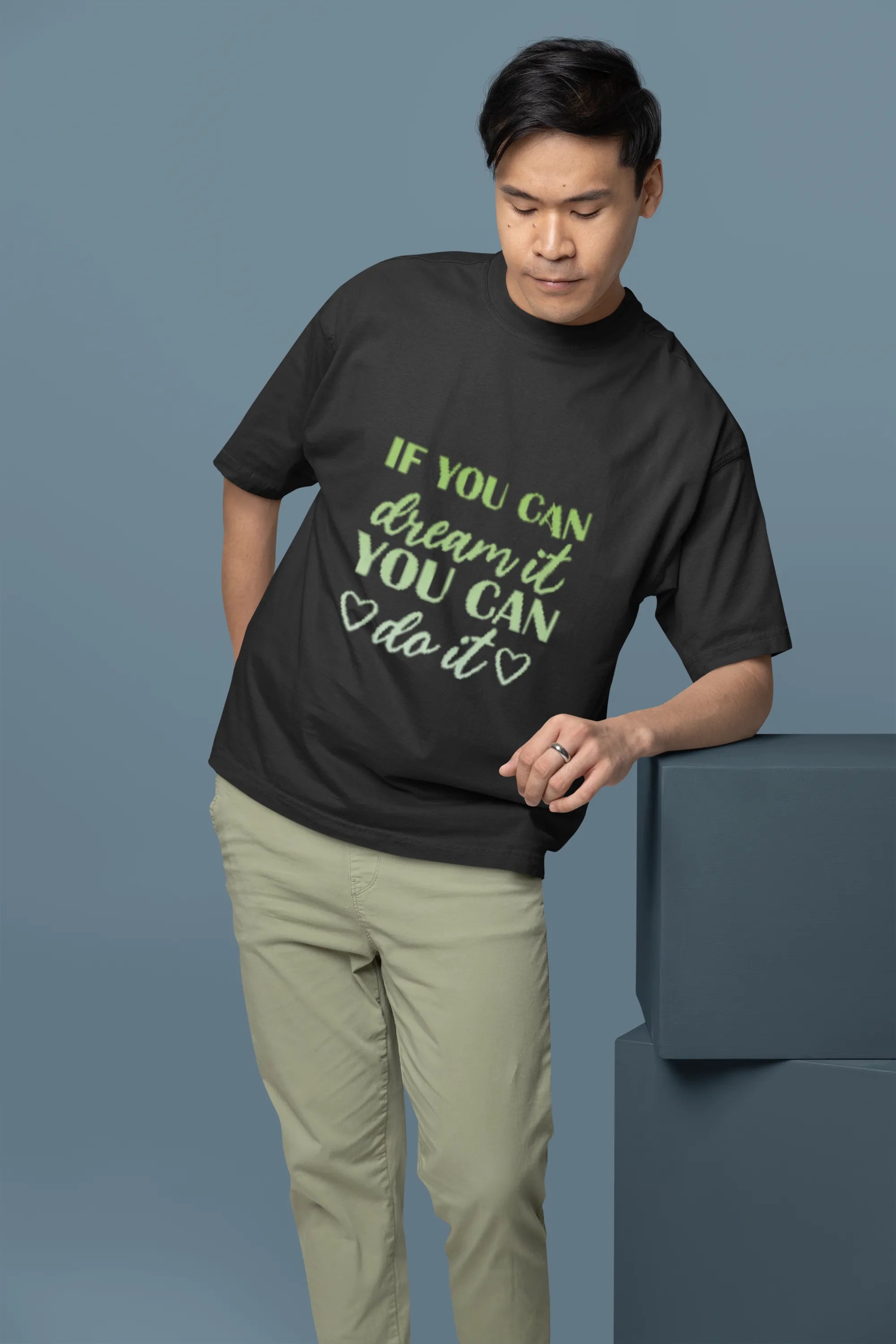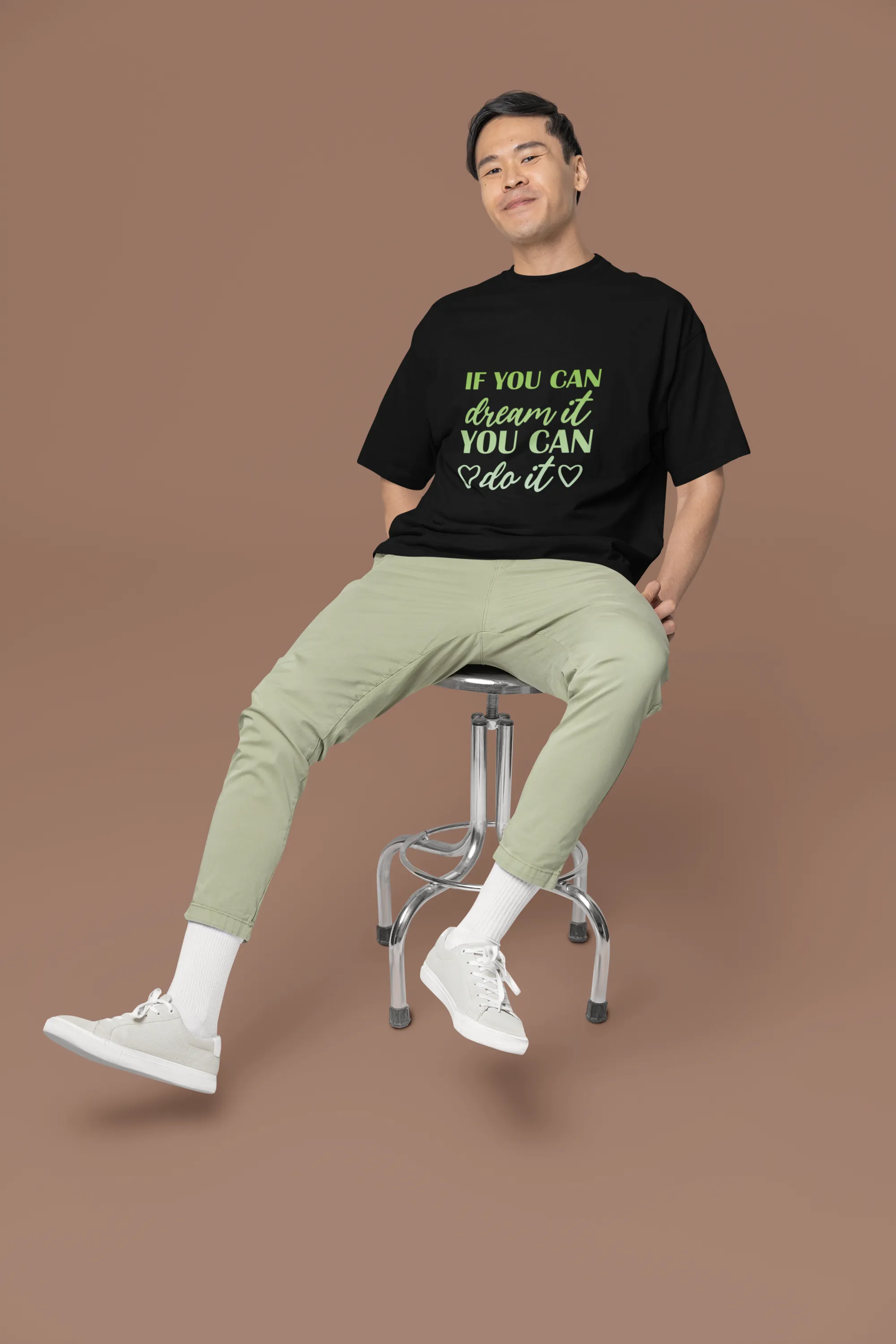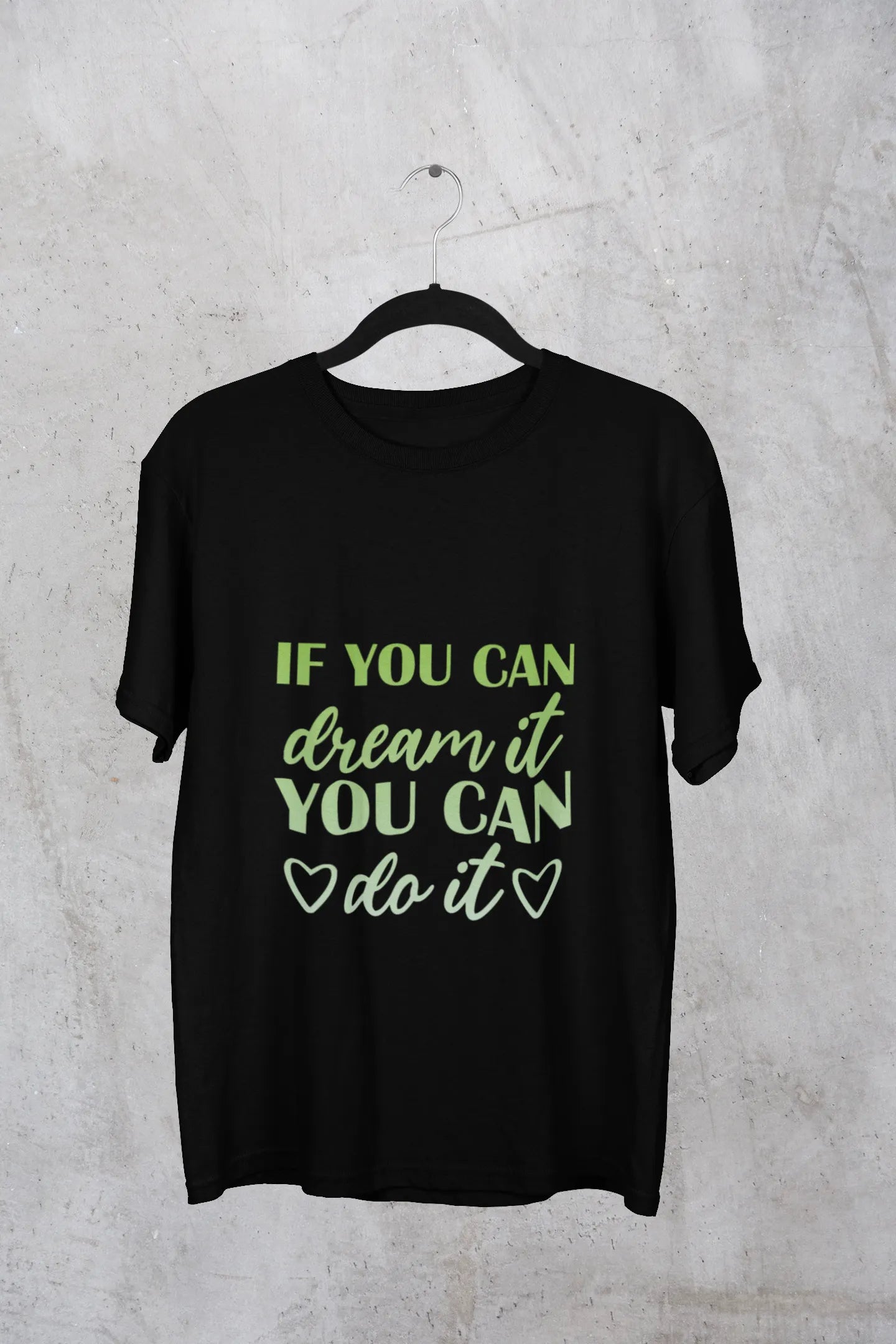 This t-shirt design features the inspiring quote "If you can dream it, you can do it" in bold, artistic typography. Accented with dreamy clouds and stars, it’s a motivational piece perfect for dreamers and go-getters chasing their goals.