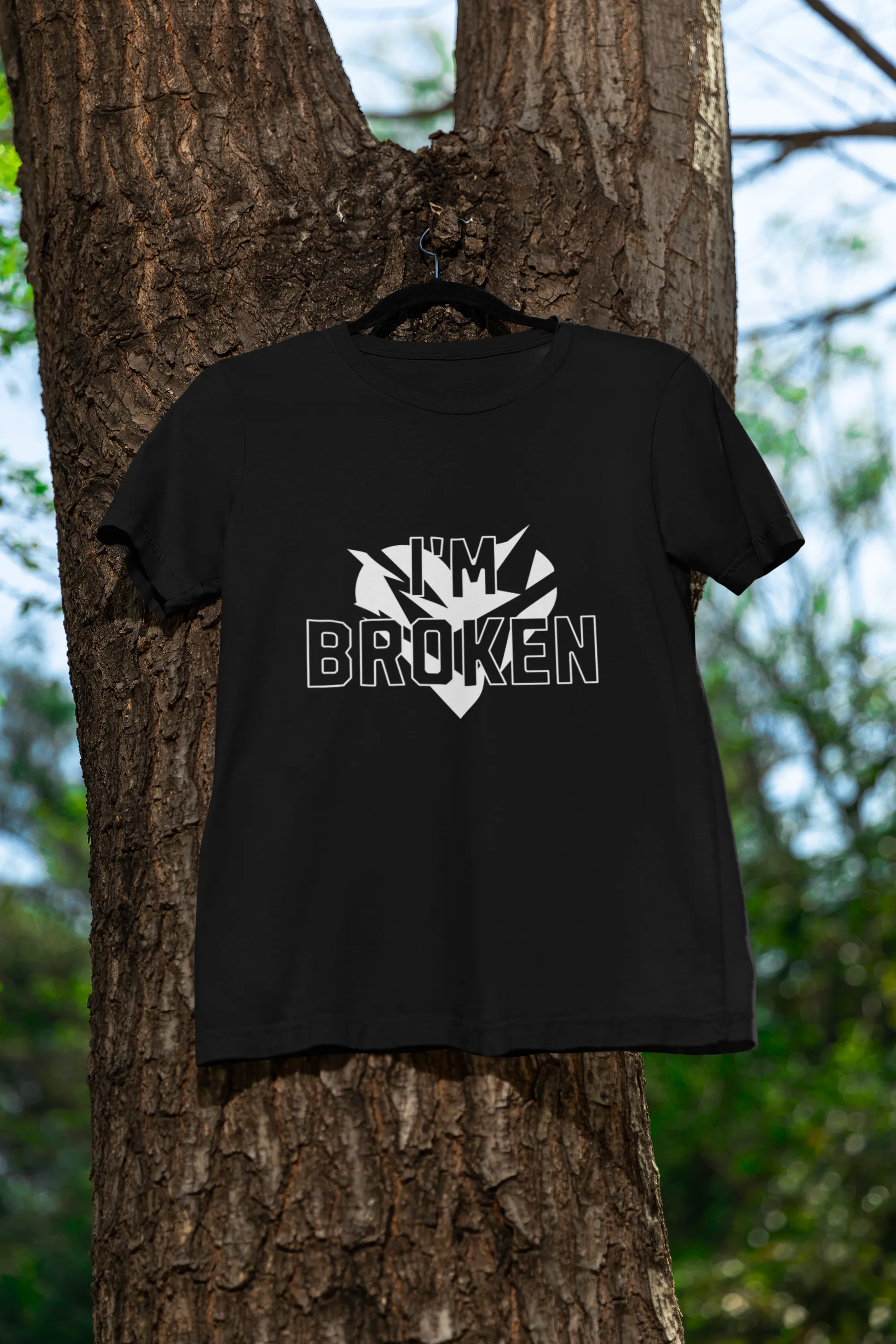 A raw and emotional T-shirt design with the phrase “I’M Broken” in distressed, fragmented typography. The design speaks to vulnerability and healing, capturing the depth of human emotion. Ideal for expressing inner struggles and the strength it takes to endure.