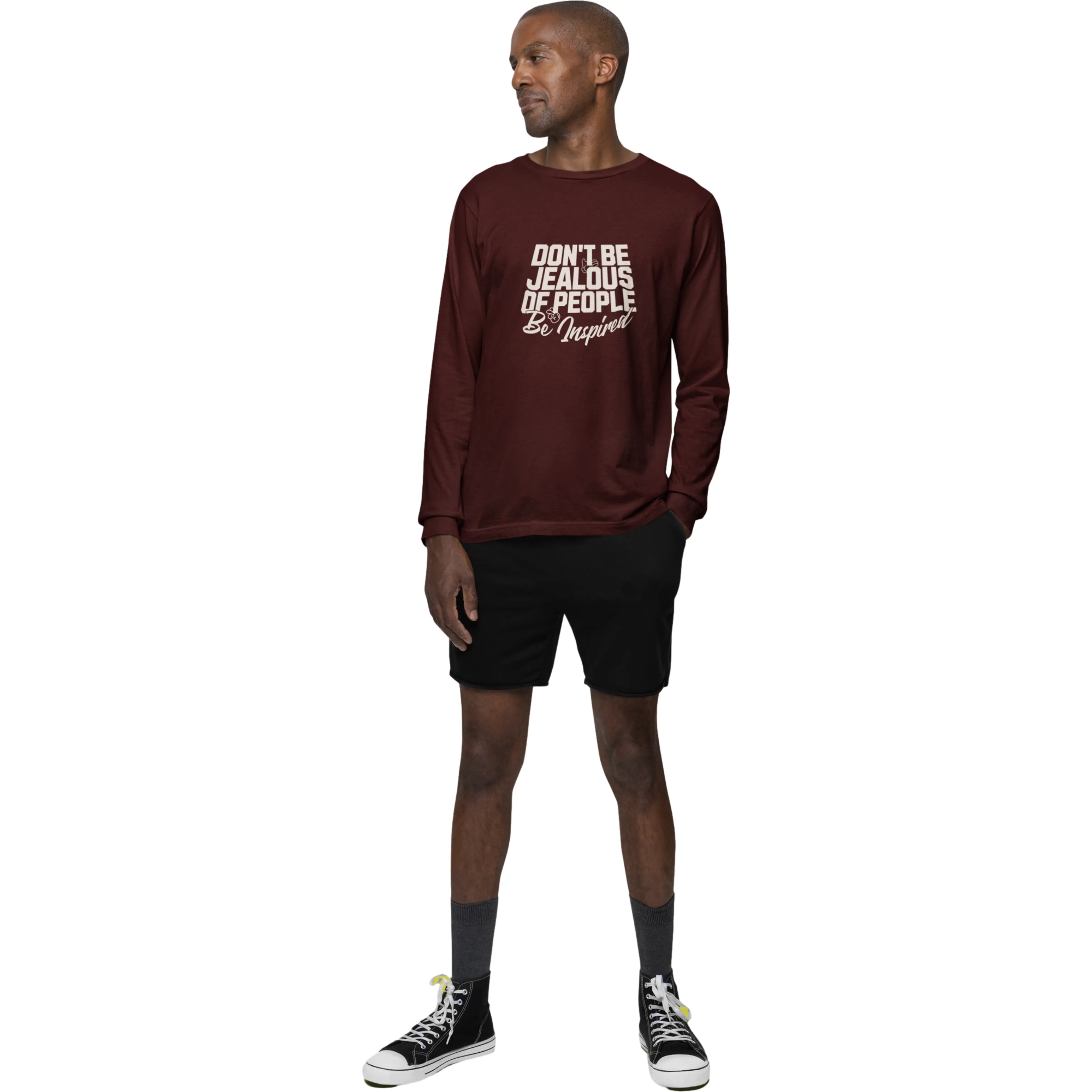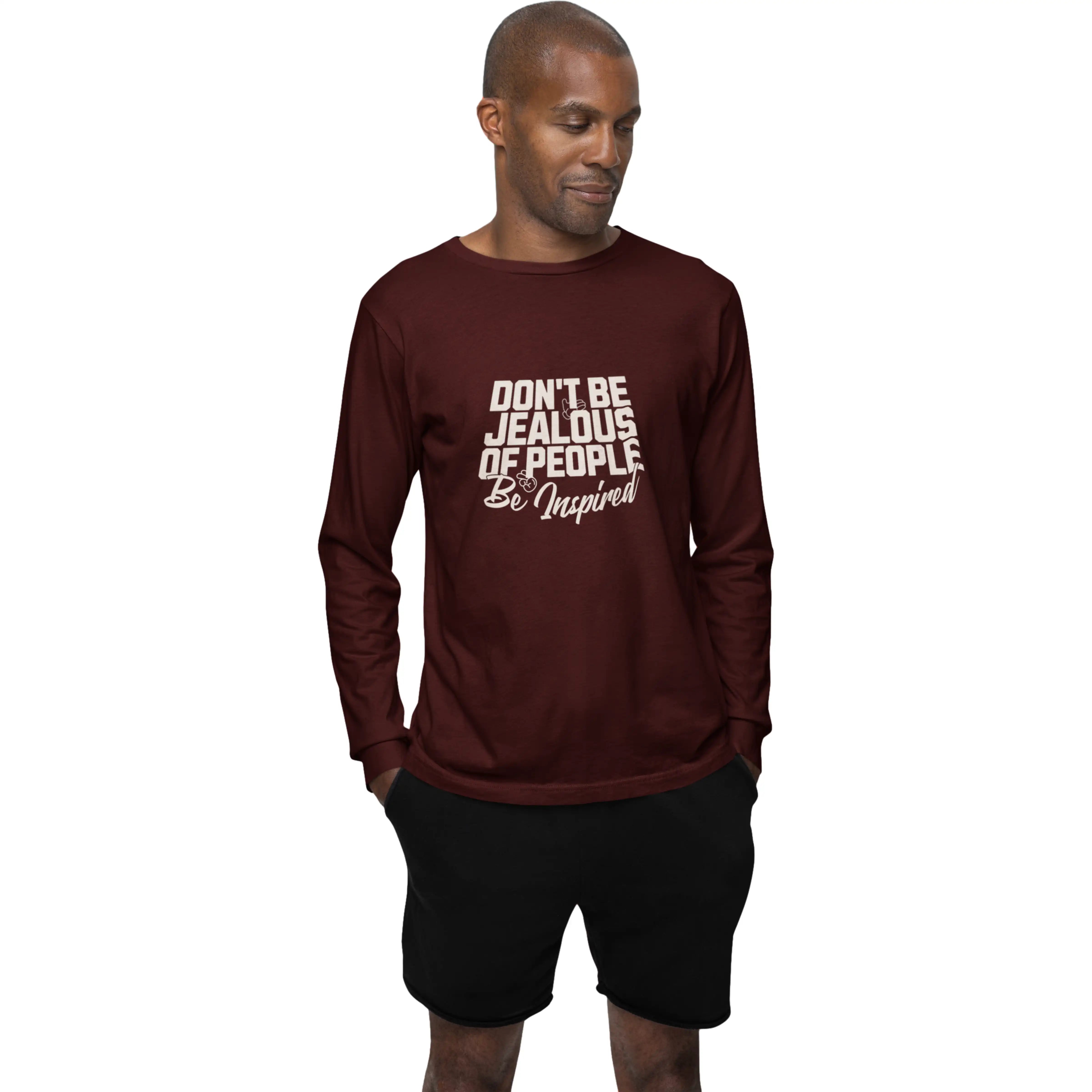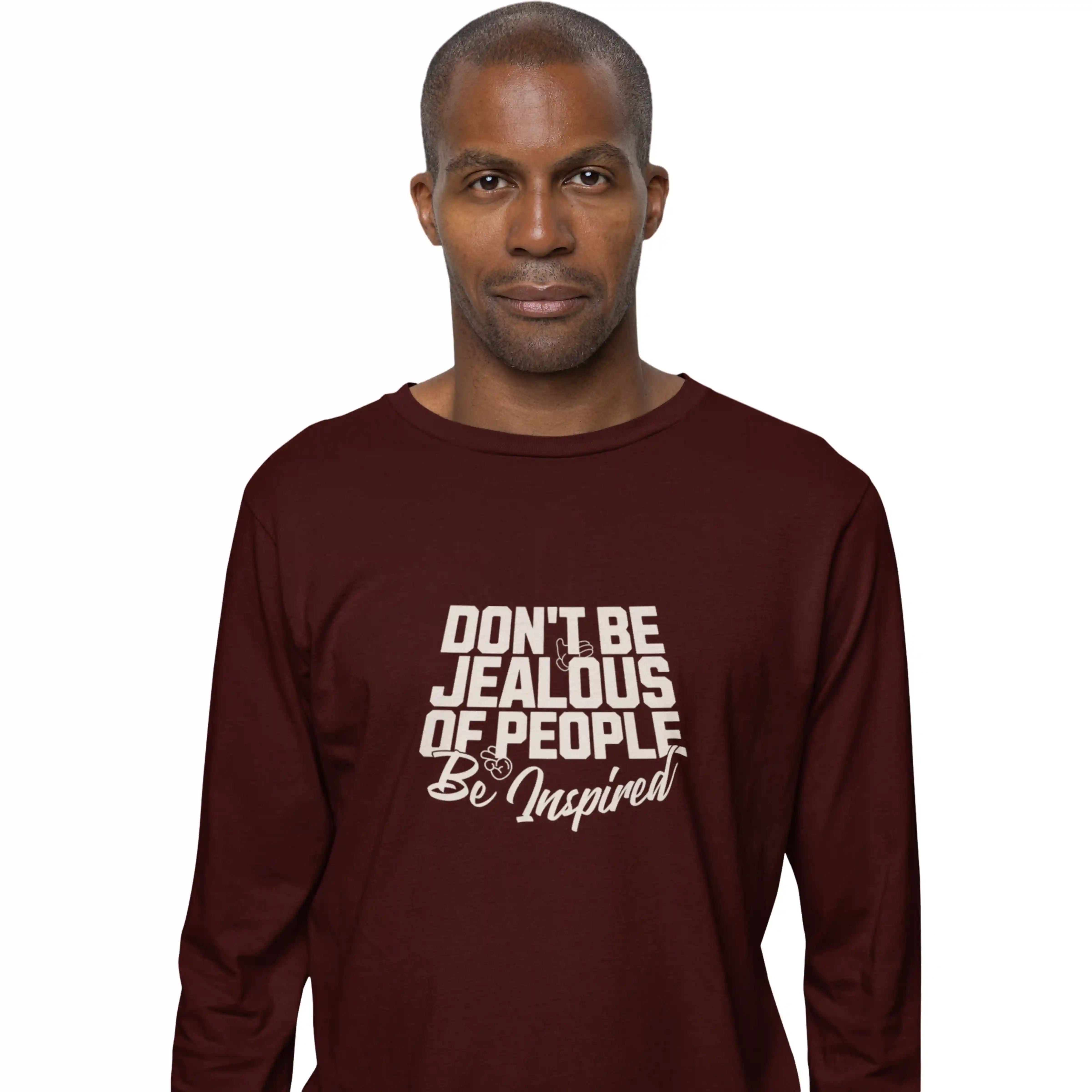 Maroon long-sleeve shirt with motivational text on a white background