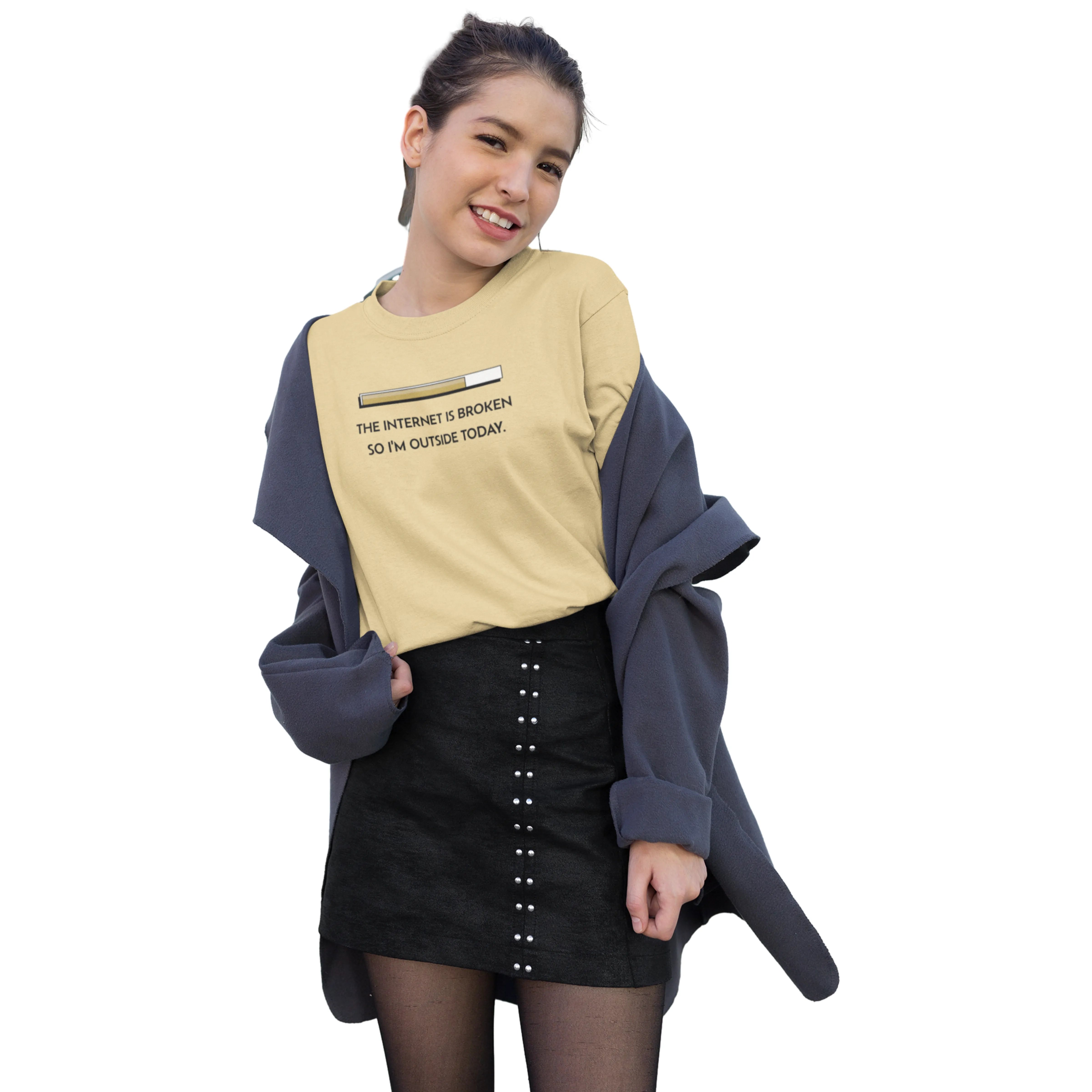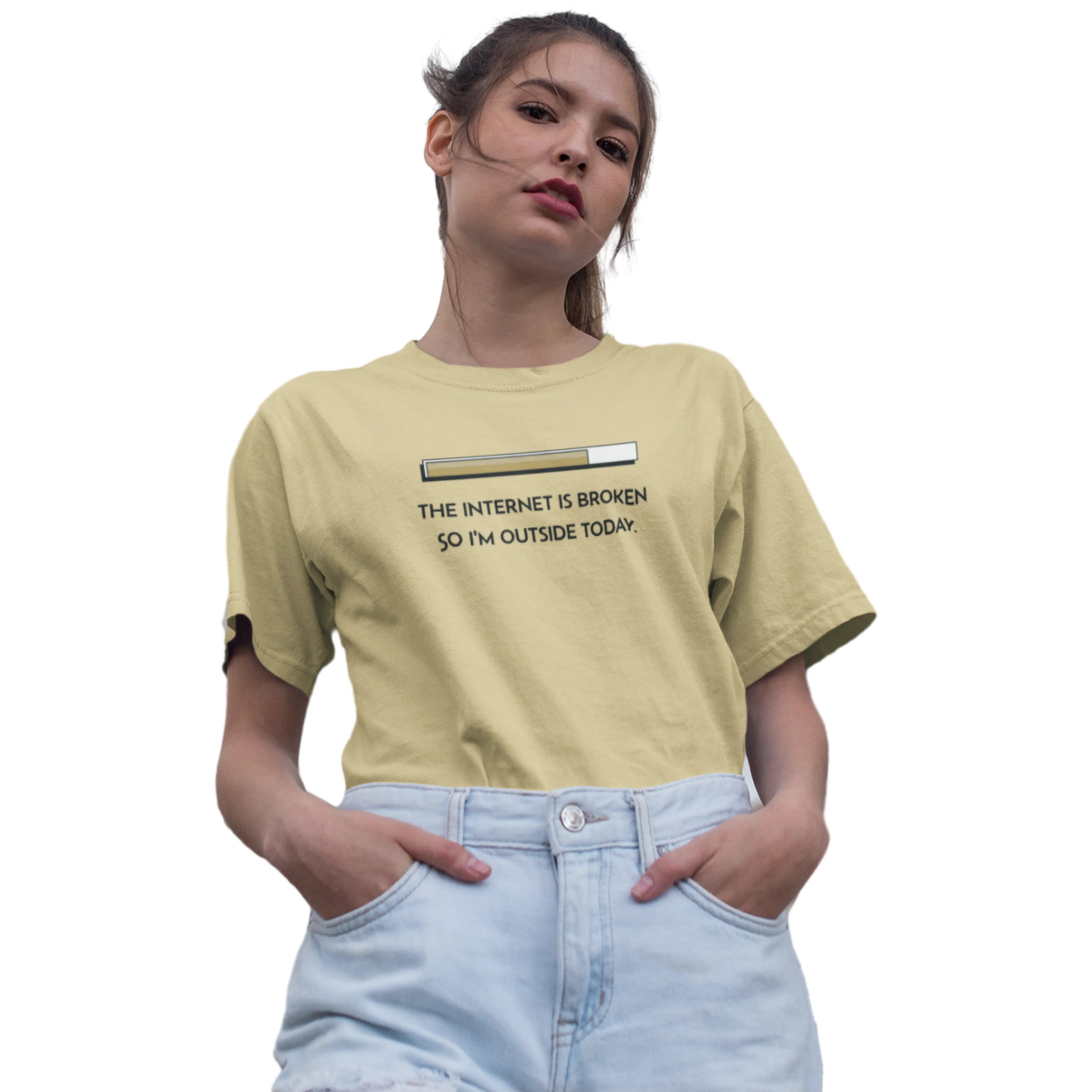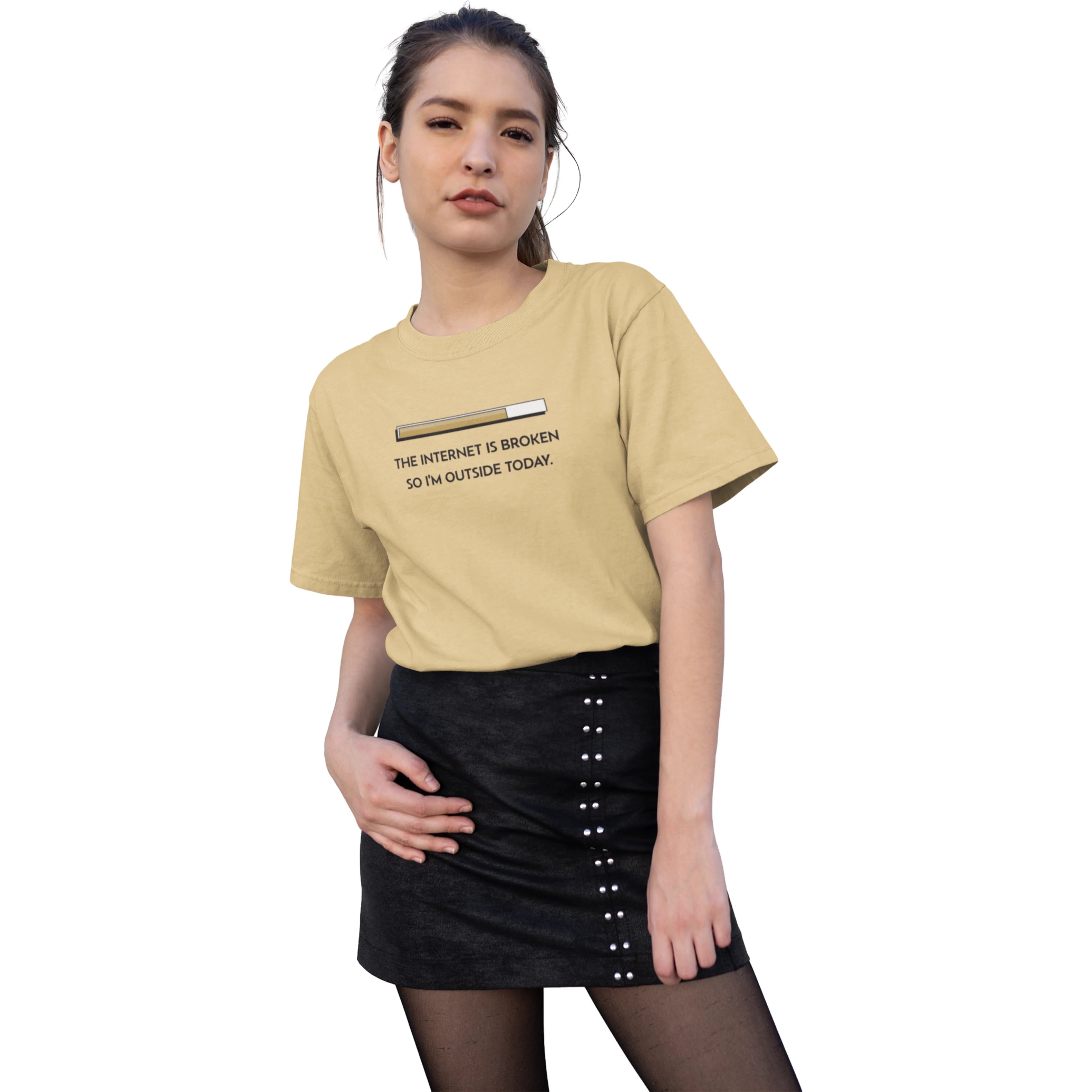 Stay connected to what matters with the “Internet” tee. Calm tones meet digital vibes in this design, ideal for soft-core tech lovers, meme queens, and anyone who lives just a bit too online.